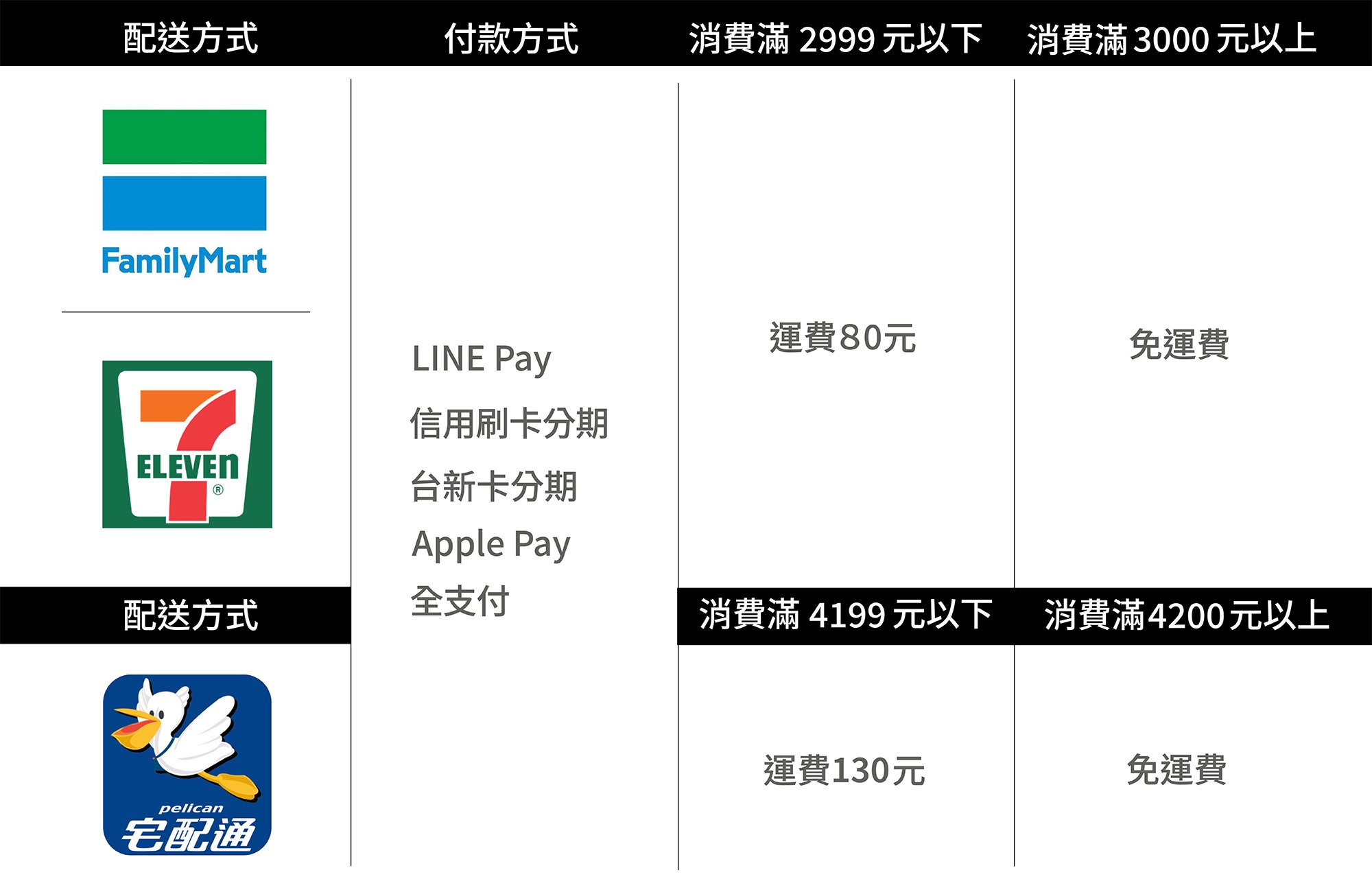 單筆訂單超商取貨未達3000元(2999元以下)、宅配取貨未達4200元(4199元以下)則酌收物流運送費用。