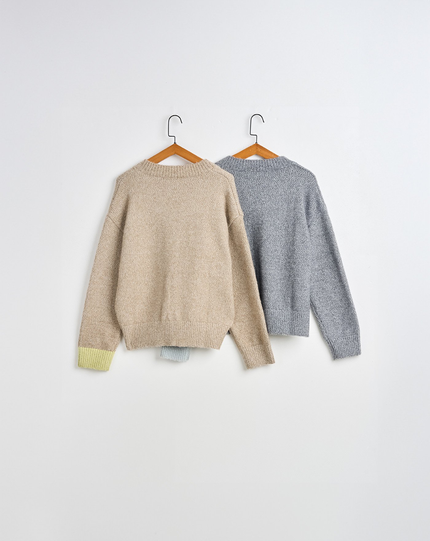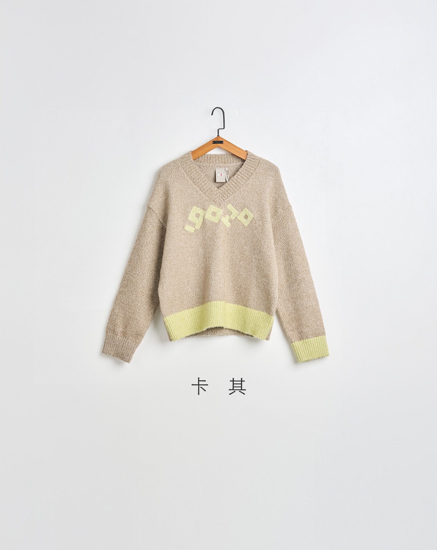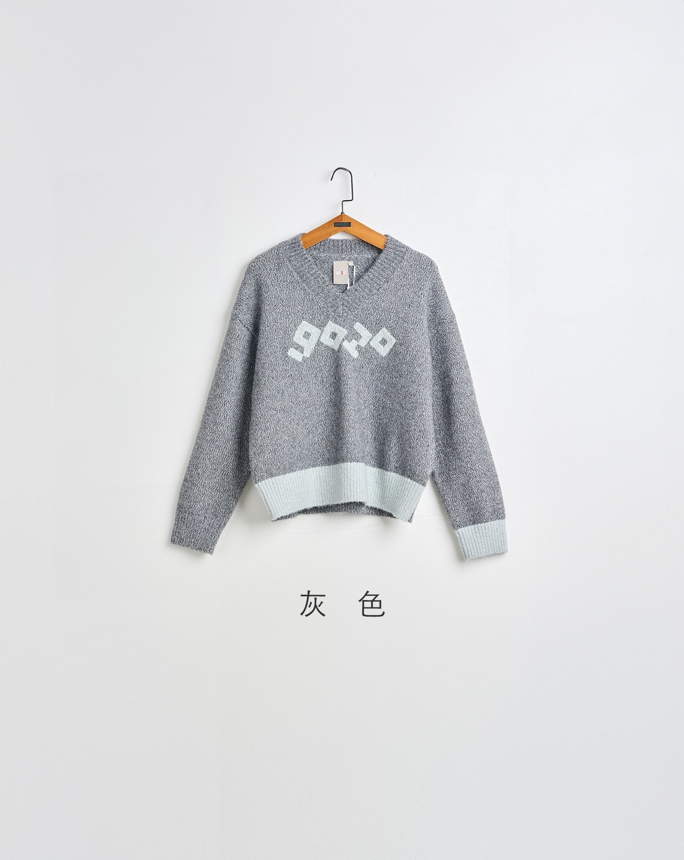 仿浣熊毛翻領字母配色毛衣外套(兩色)