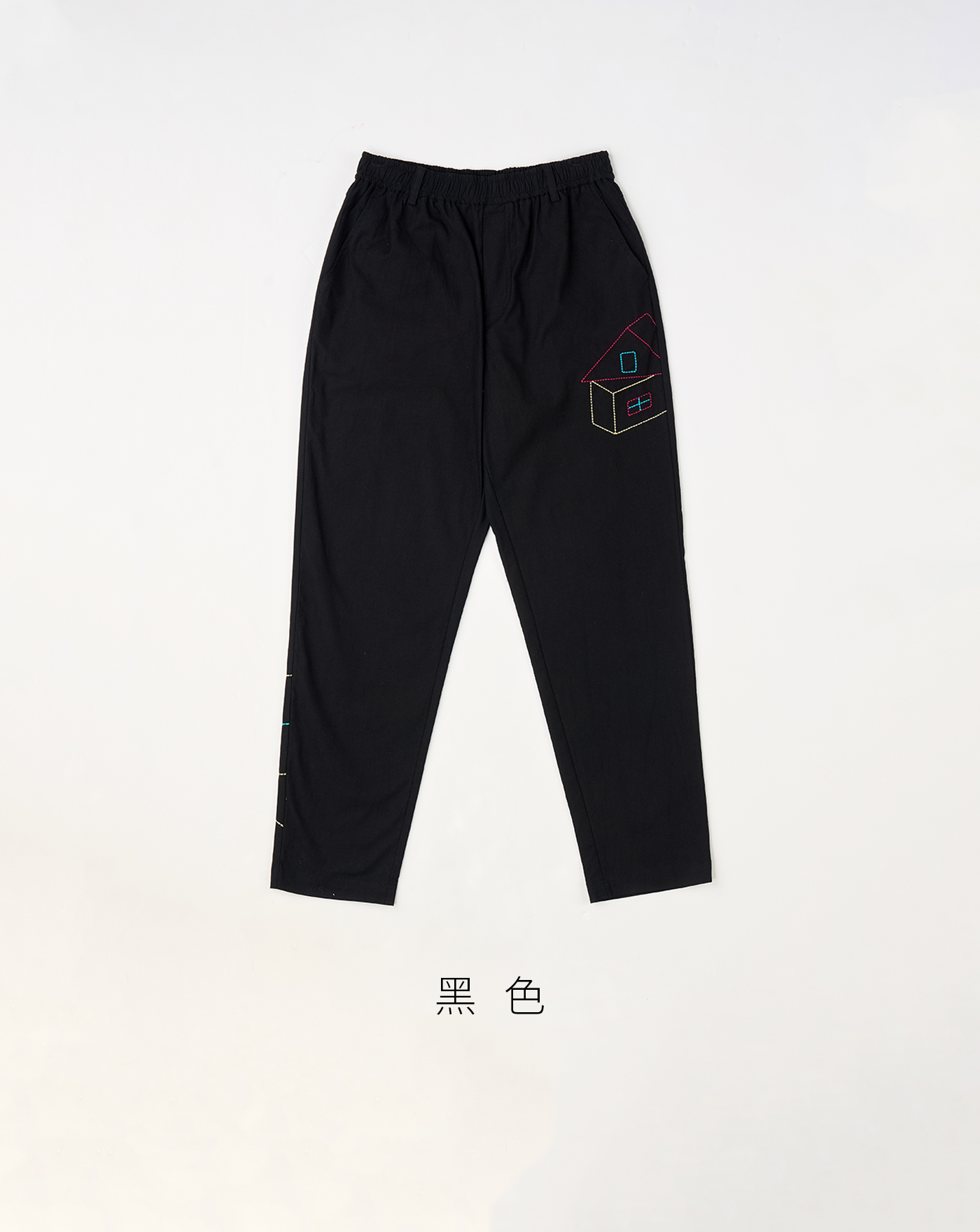 gozo幾何繡花後鬆緊窄管褲(兩色)