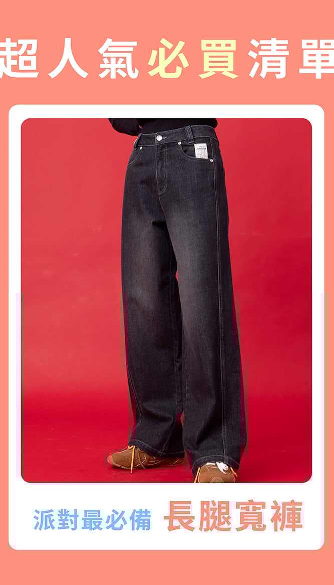 A|好比例異材質拼接水洗牛仔寬褲(兩色)