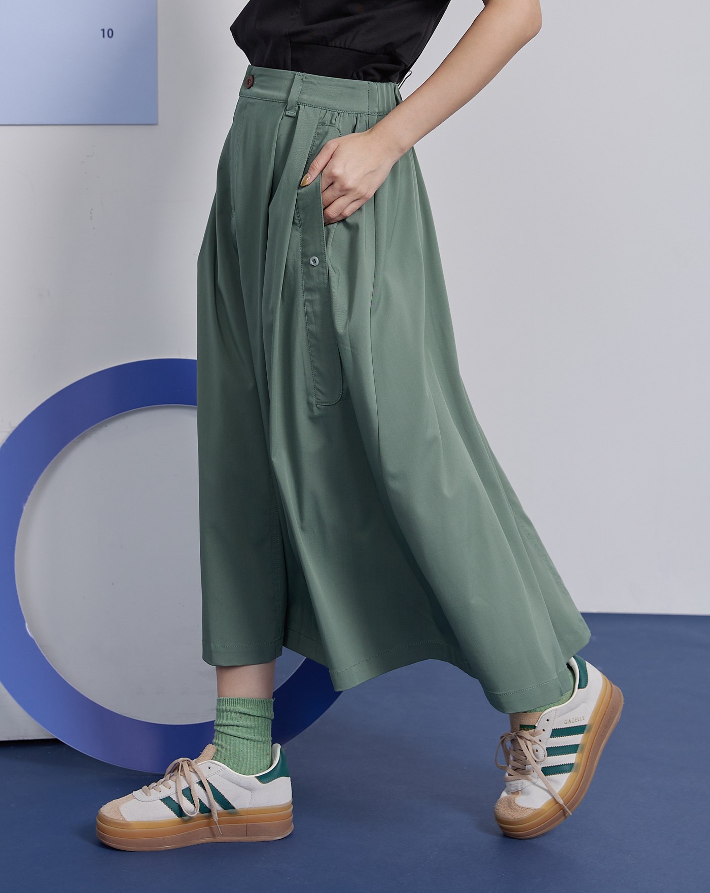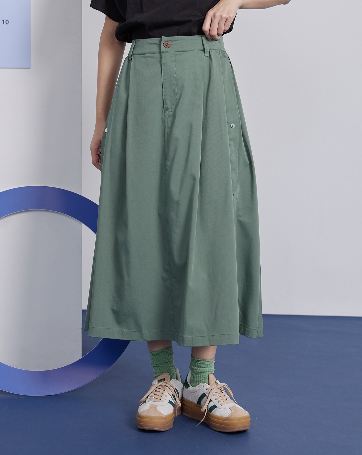 ➤打褶後鬆緊修身中長裙(兩色)