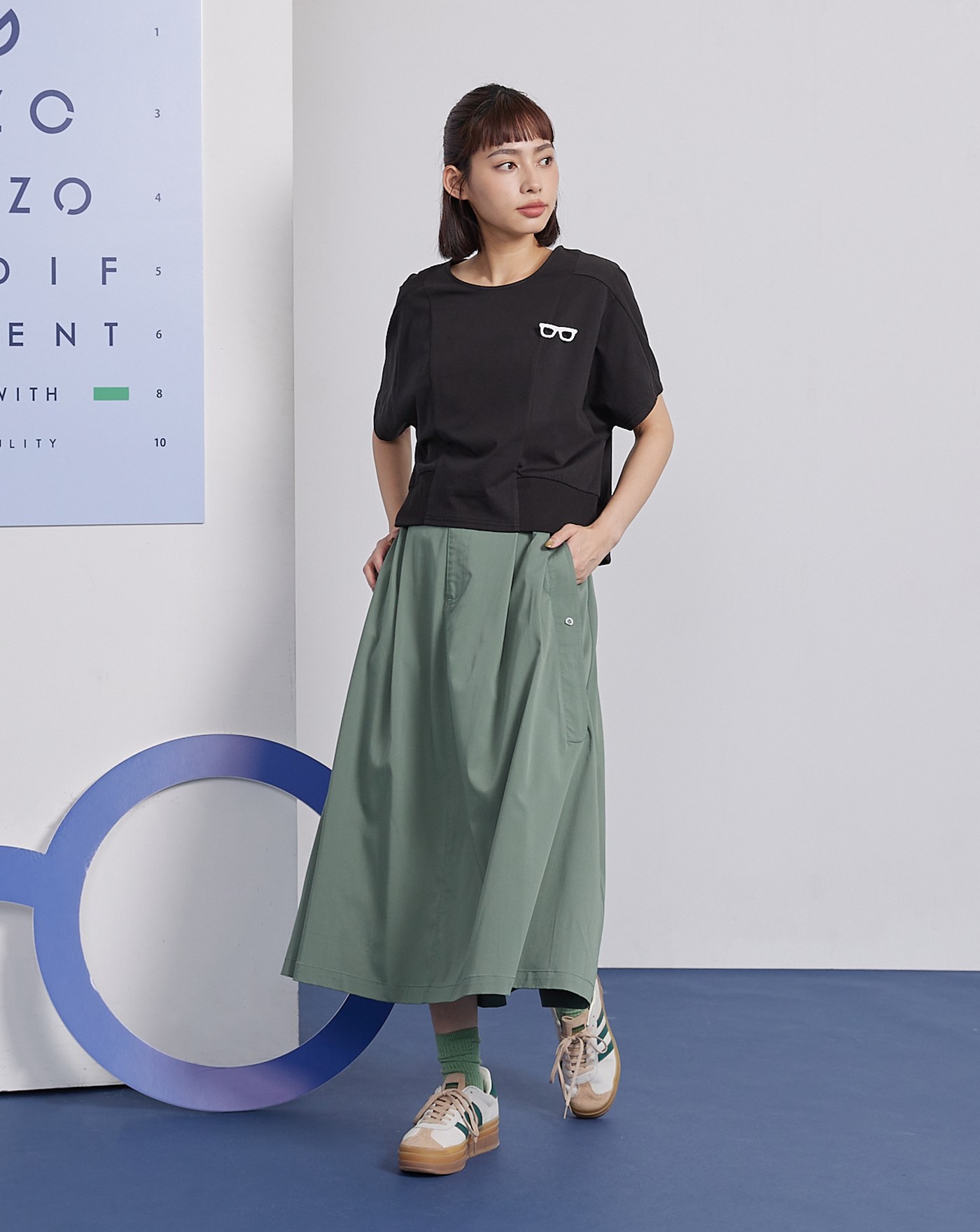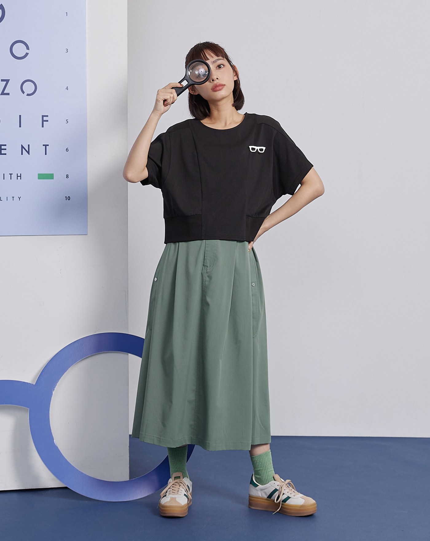 眼鏡別針剪接造型涼感T恤(兩色)