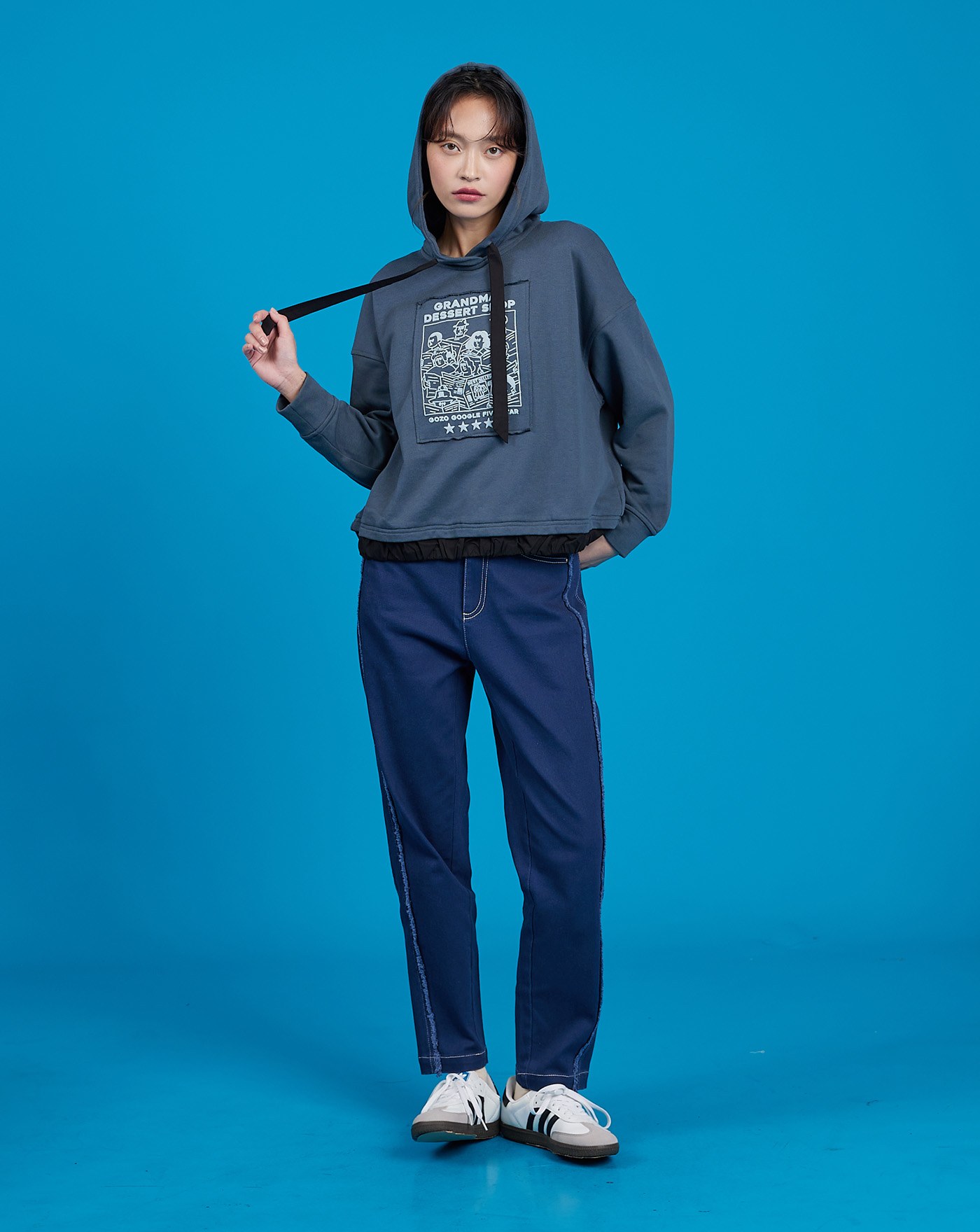 五星好評皺皺下襬貼布帽T(兩色)