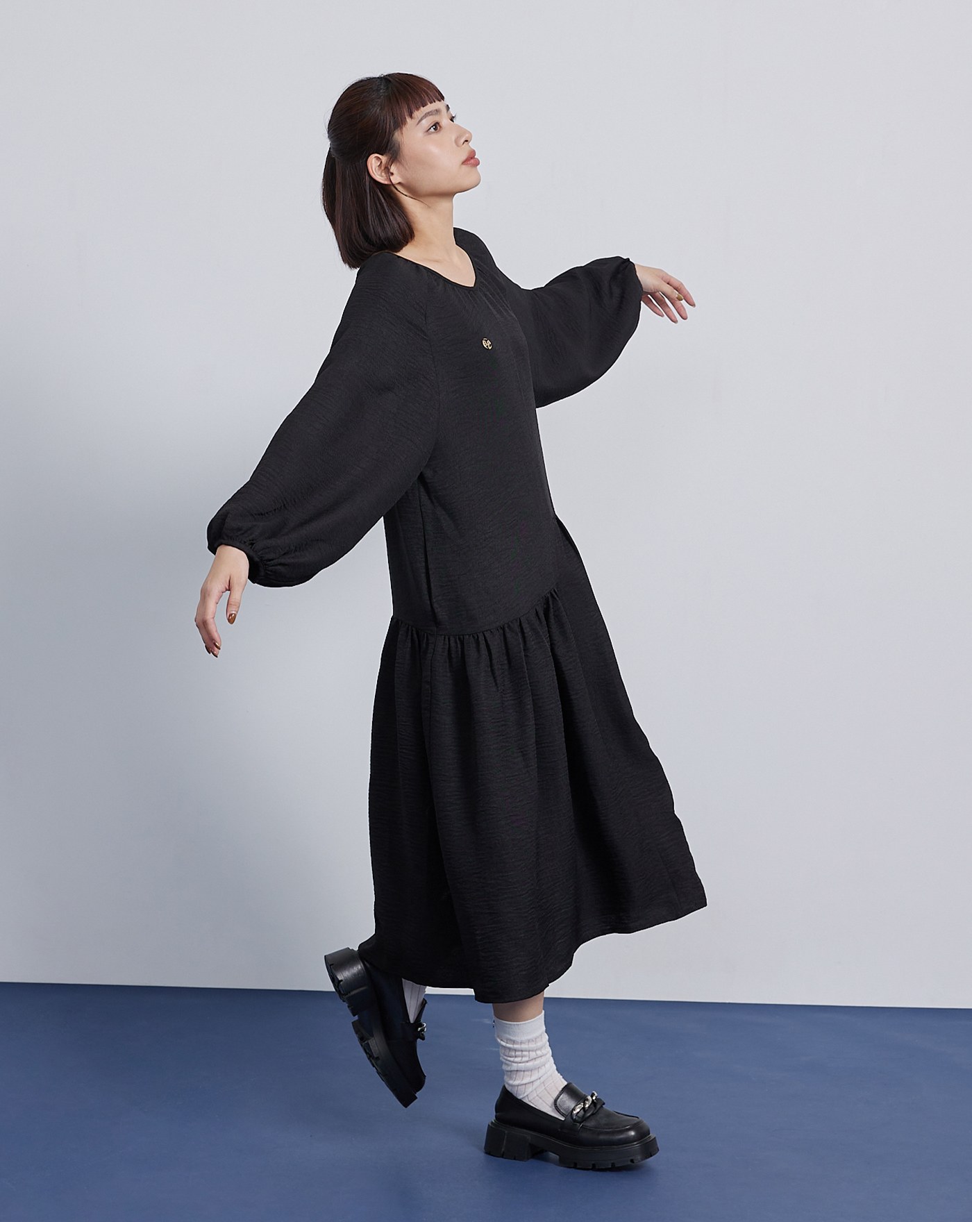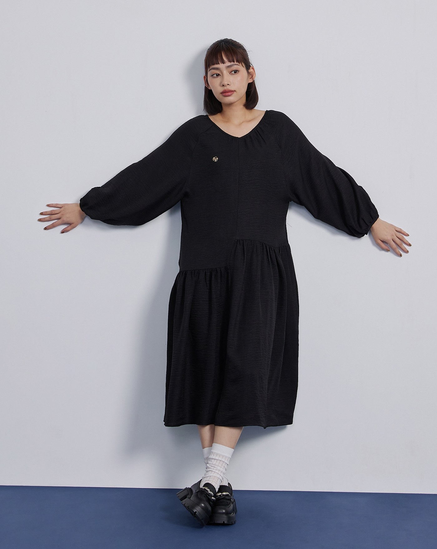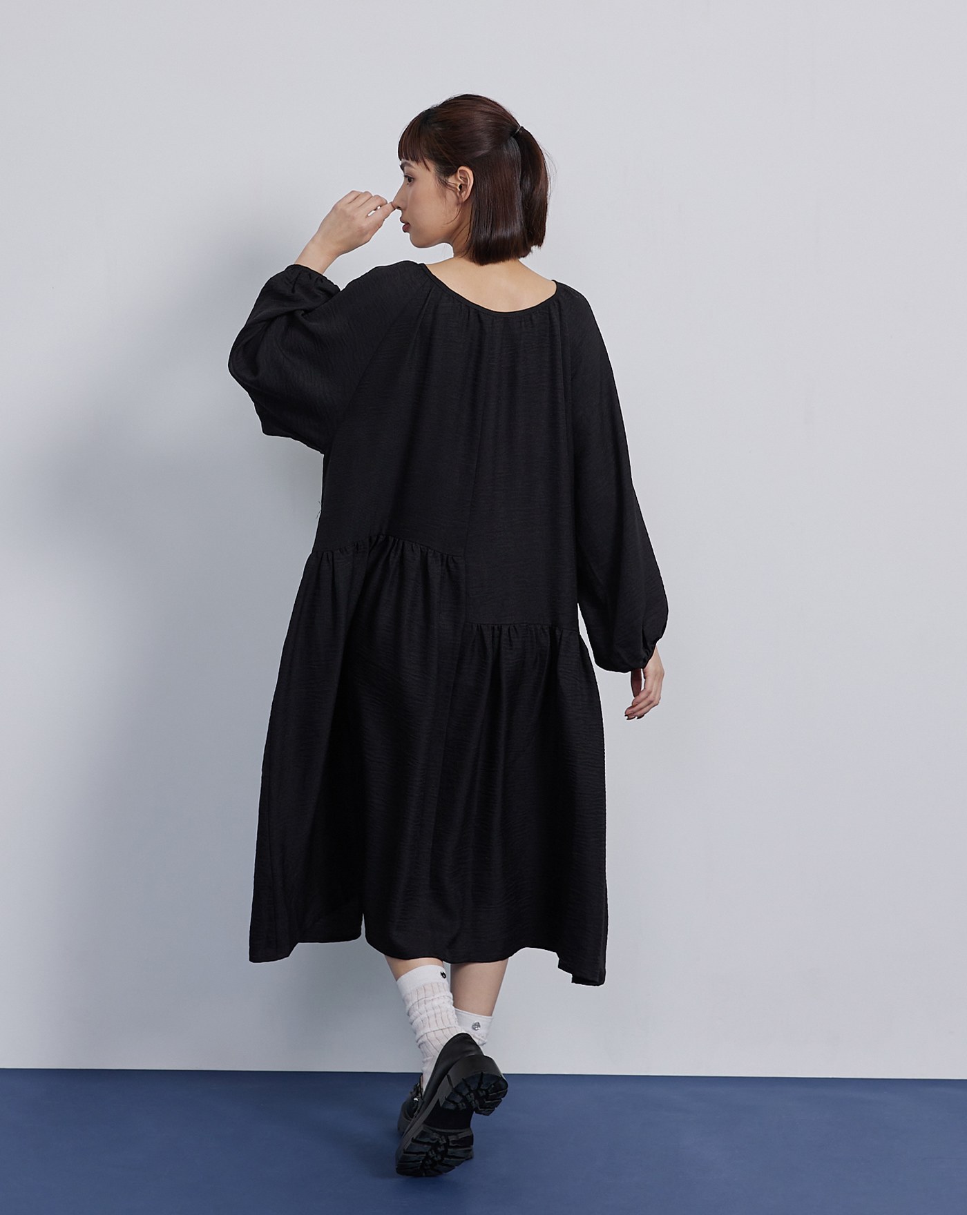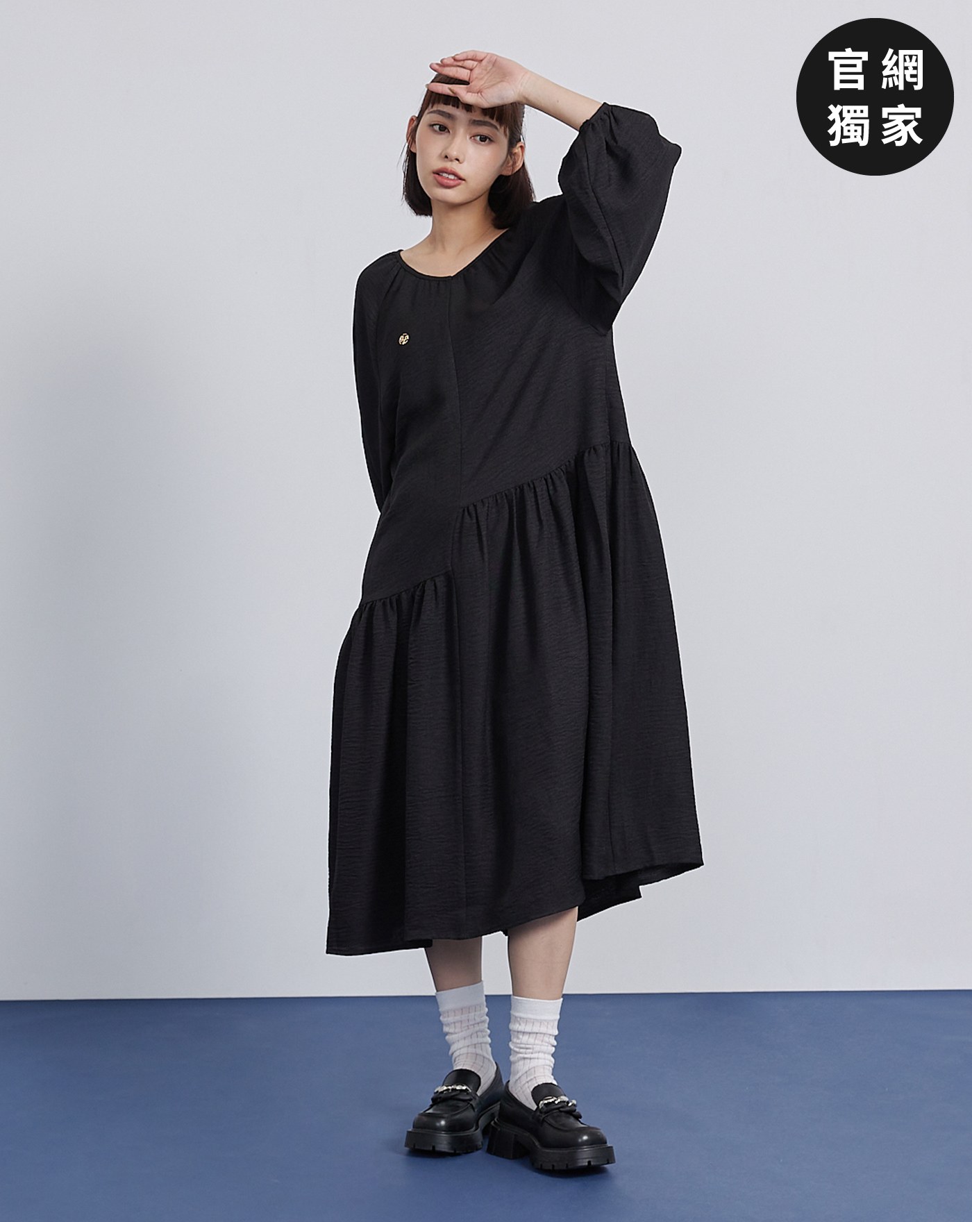 ➤壓線雙口袋打褶造型洋裝(兩色)