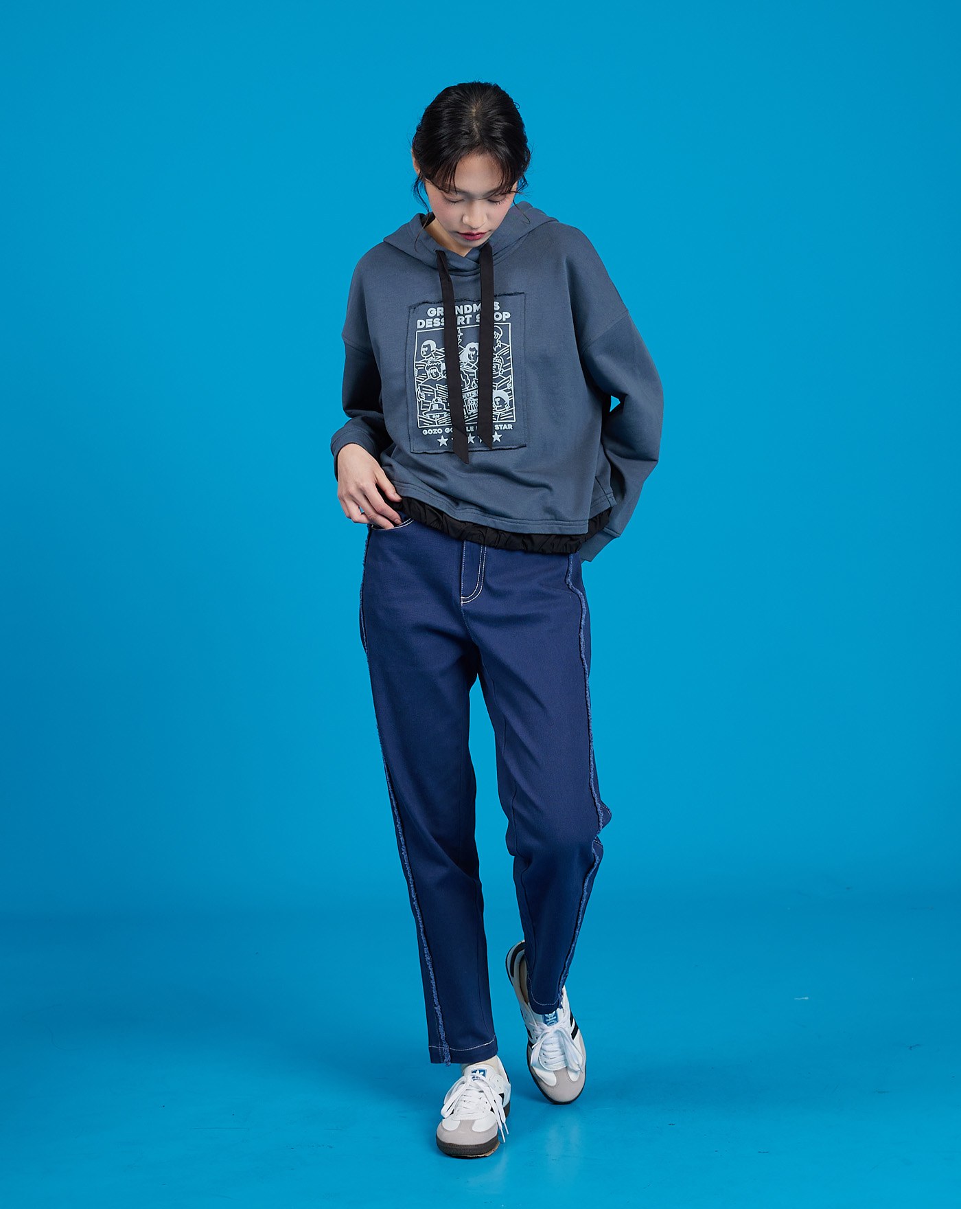 神奇糕點繡花後開岔擴型帽T(兩色)
