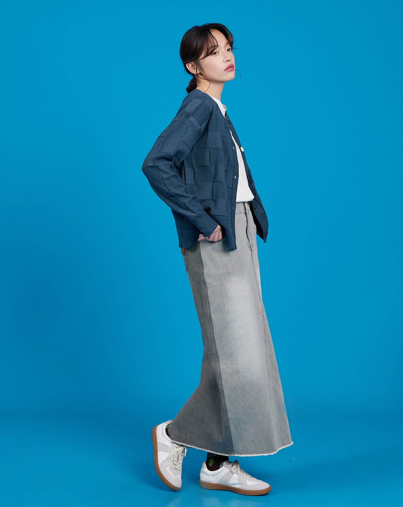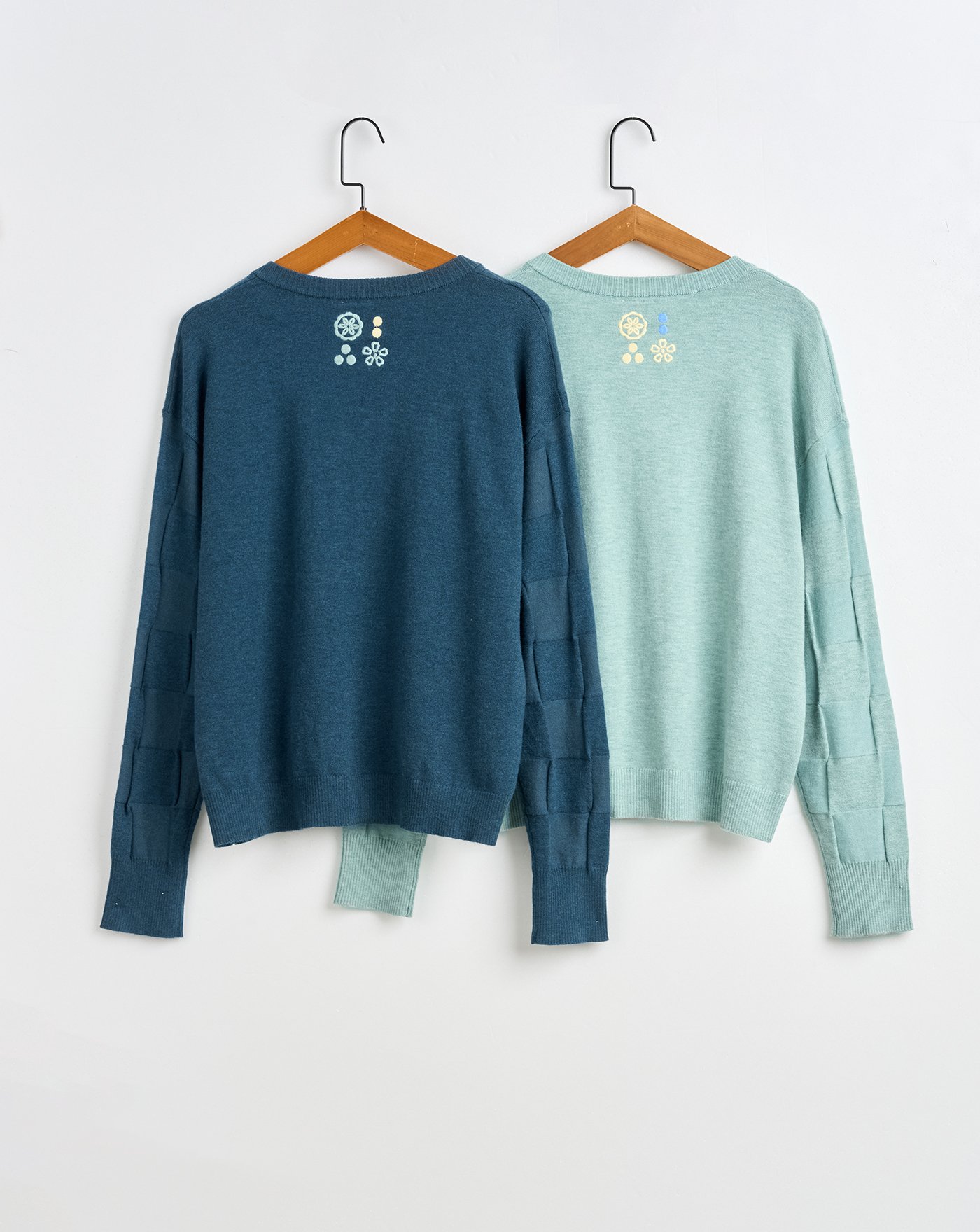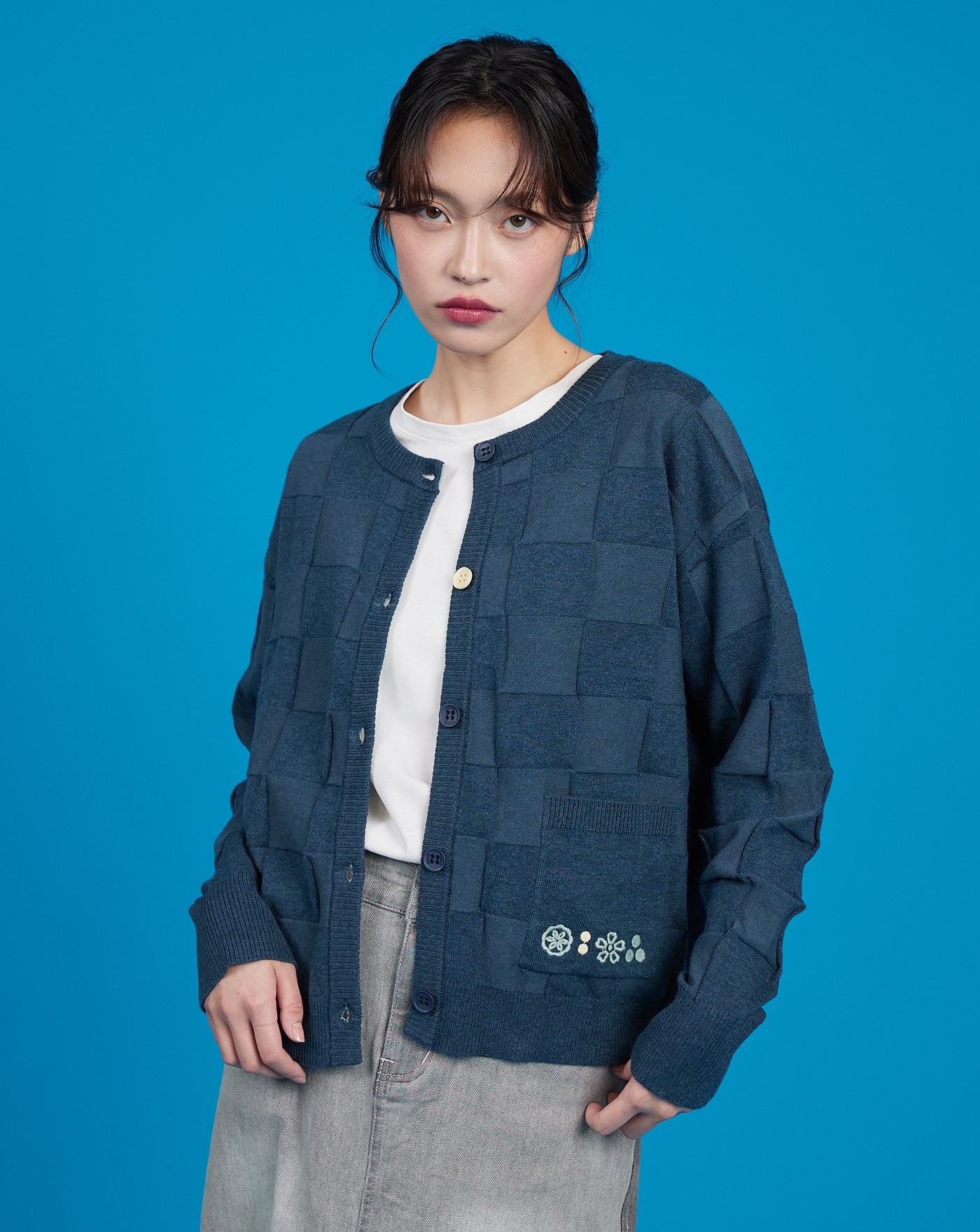 棋盤格毛衣外套微落肩修身小版型領口/扣子配色口袋圖案:糕餅阿嬤的摩斯密碼(綠豆椪的小紅點點)親膚澳絨毛/柔軟親膚面感,細紗薄款不厚重