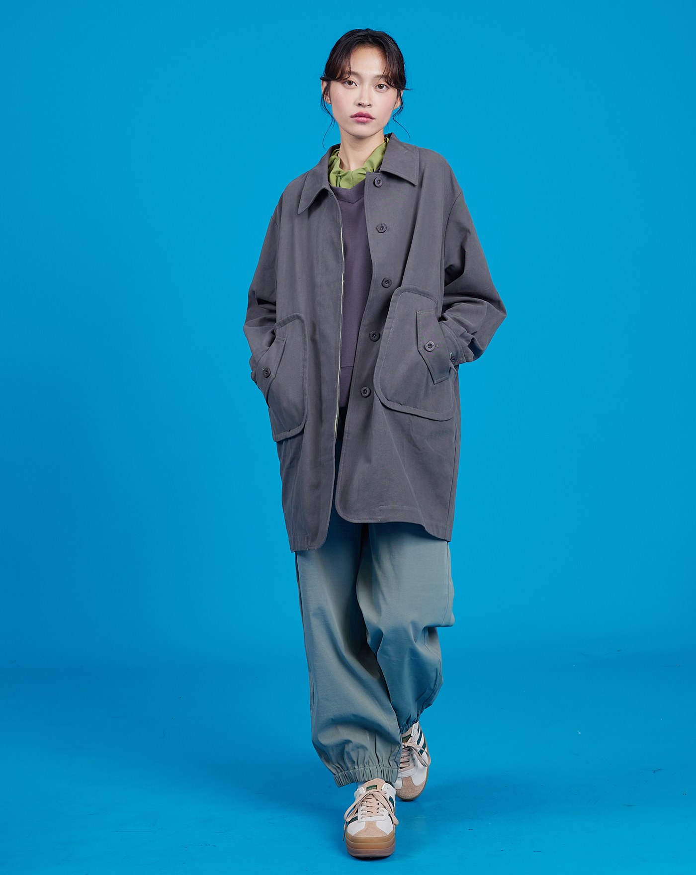 配色線條大口袋純棉風衣外套(兩色) 不可超取 NT$3,580 NT$ 1,432 顏色 深灰淺綠 尺寸 F 數量 加入購物車 立即購買 加入LINE 願望清單 加入購物車 熱銷商品 RELATED 相關商品 防盜口袋鬆緊縮口長褲(兩色) NT$2,280 NT$912