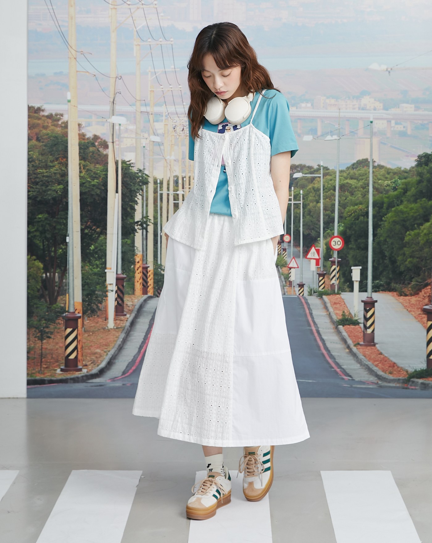 拼接素面蕾絲裙有裡布不走光 蕾絲棉拼接素面棉