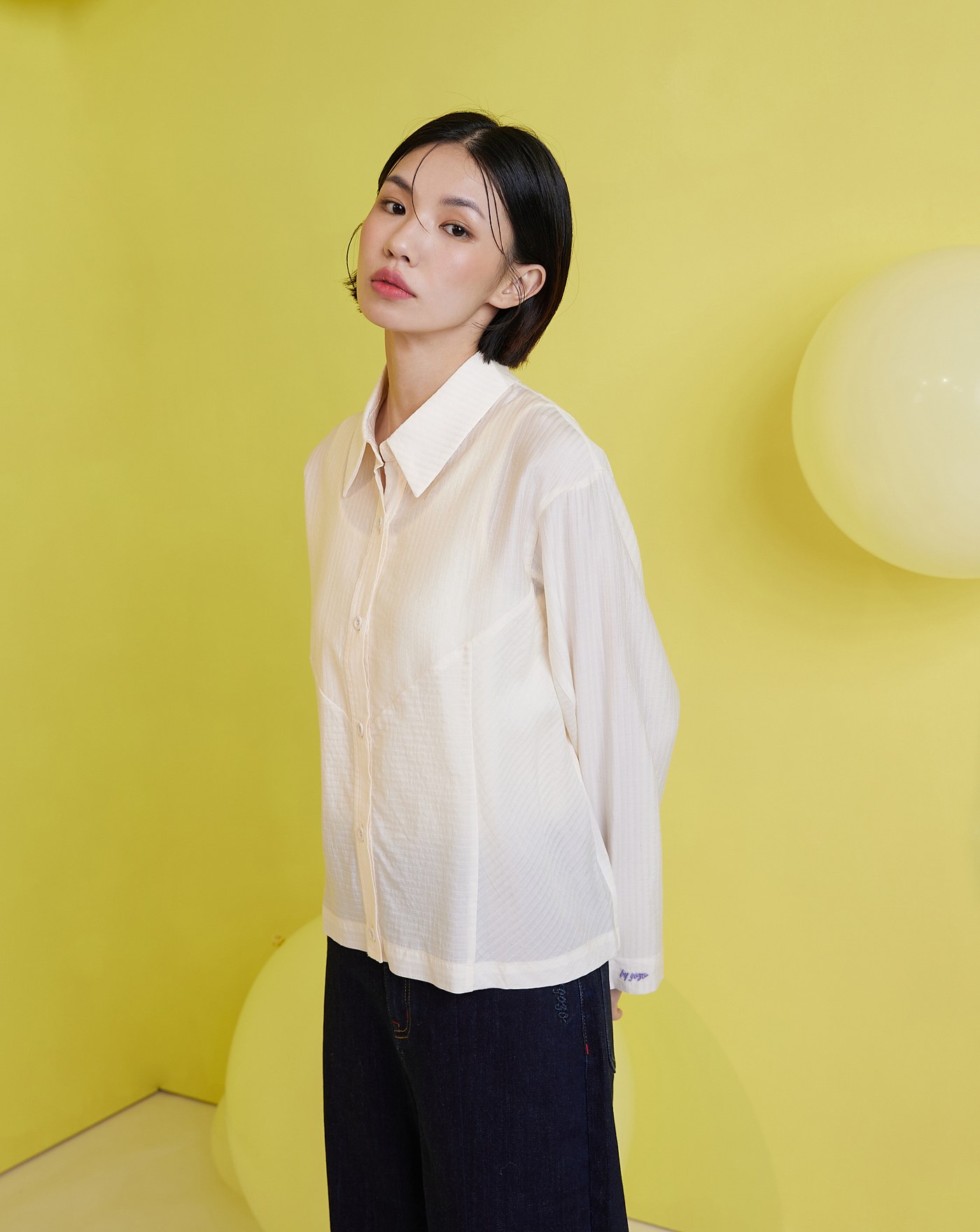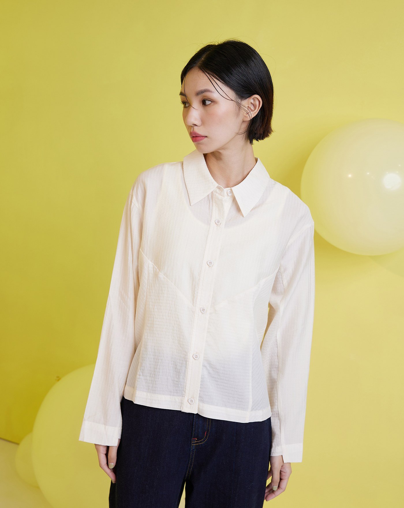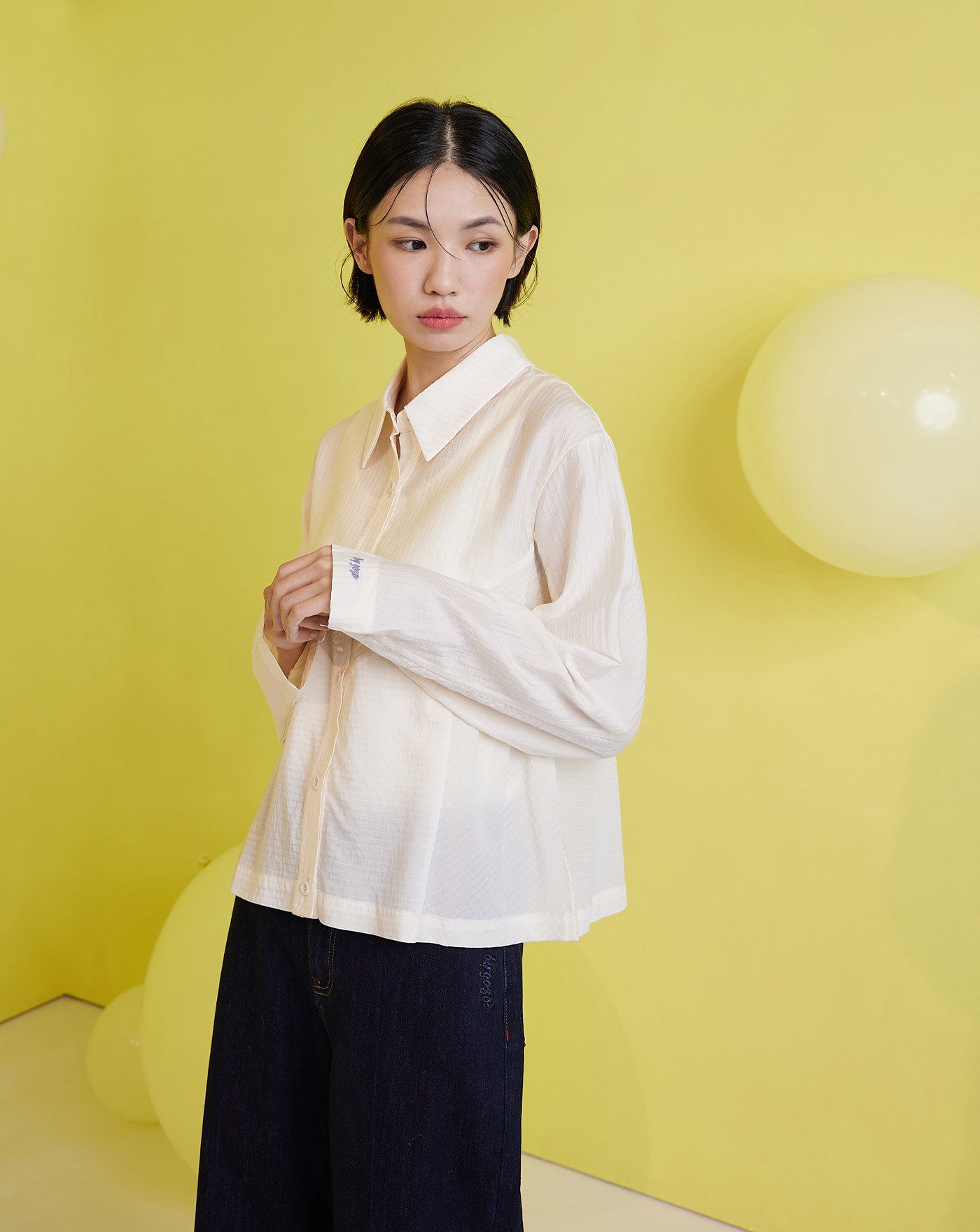 天絲滾邊泡芙造型長袖襯衫(兩色)