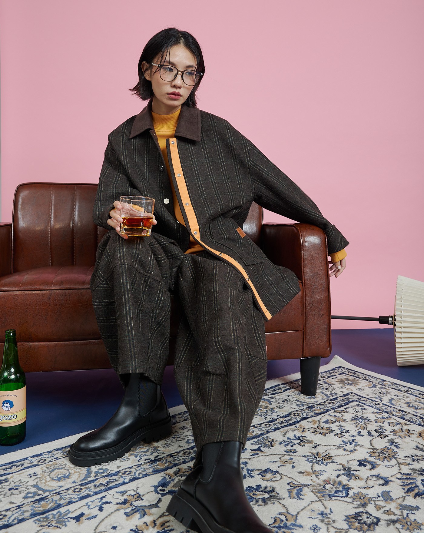 太空行星軌跡剪接打褶直筒褲(兩色)