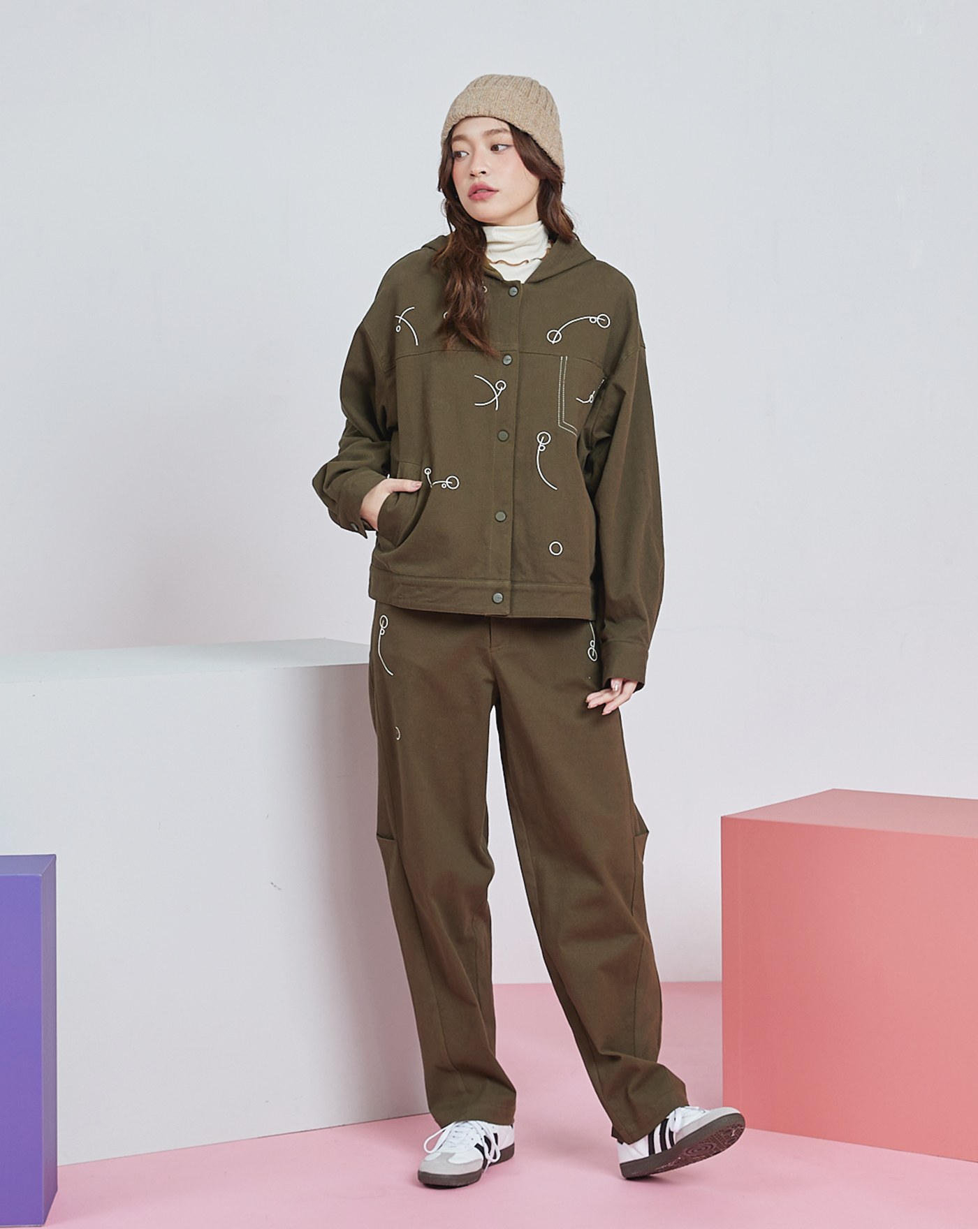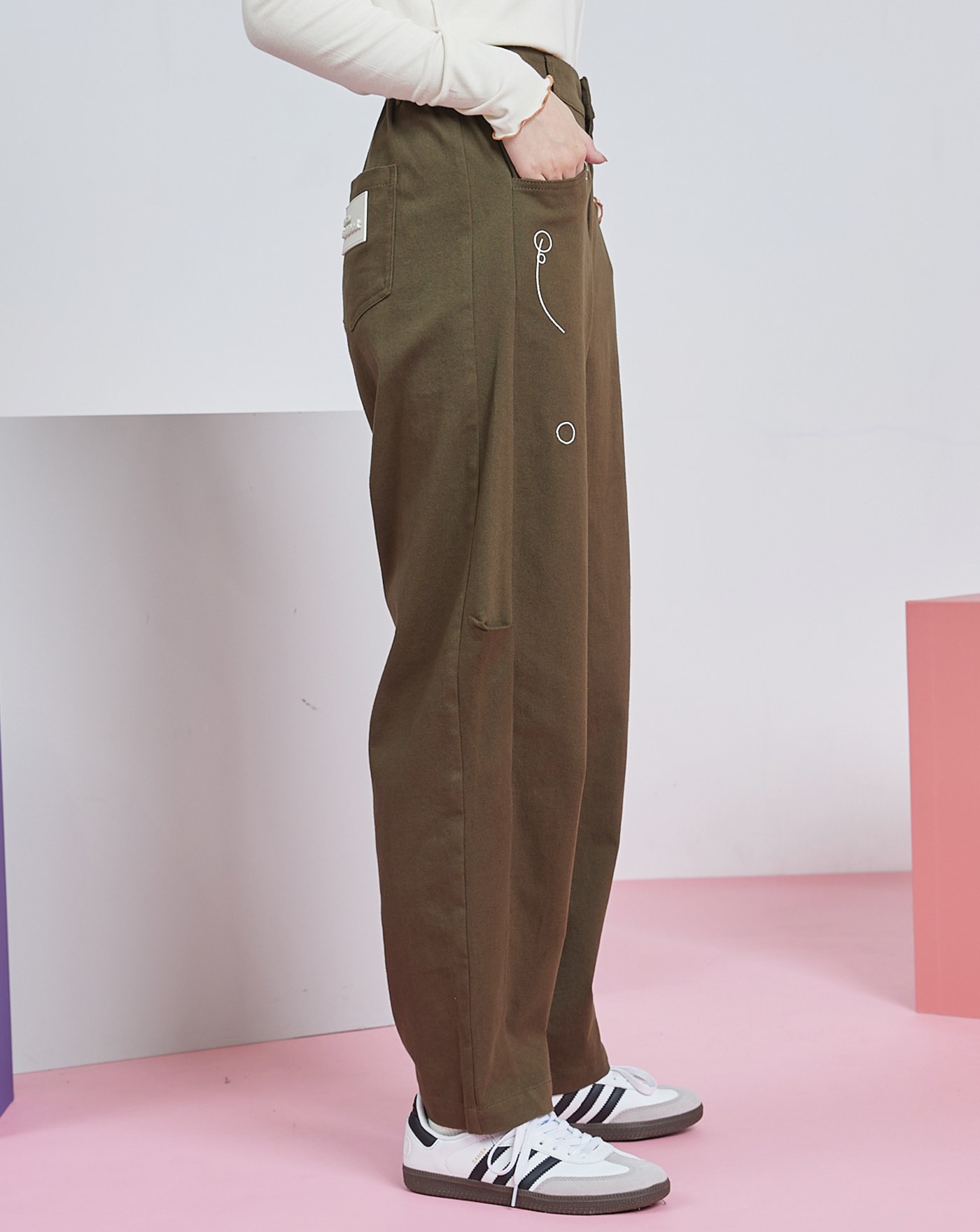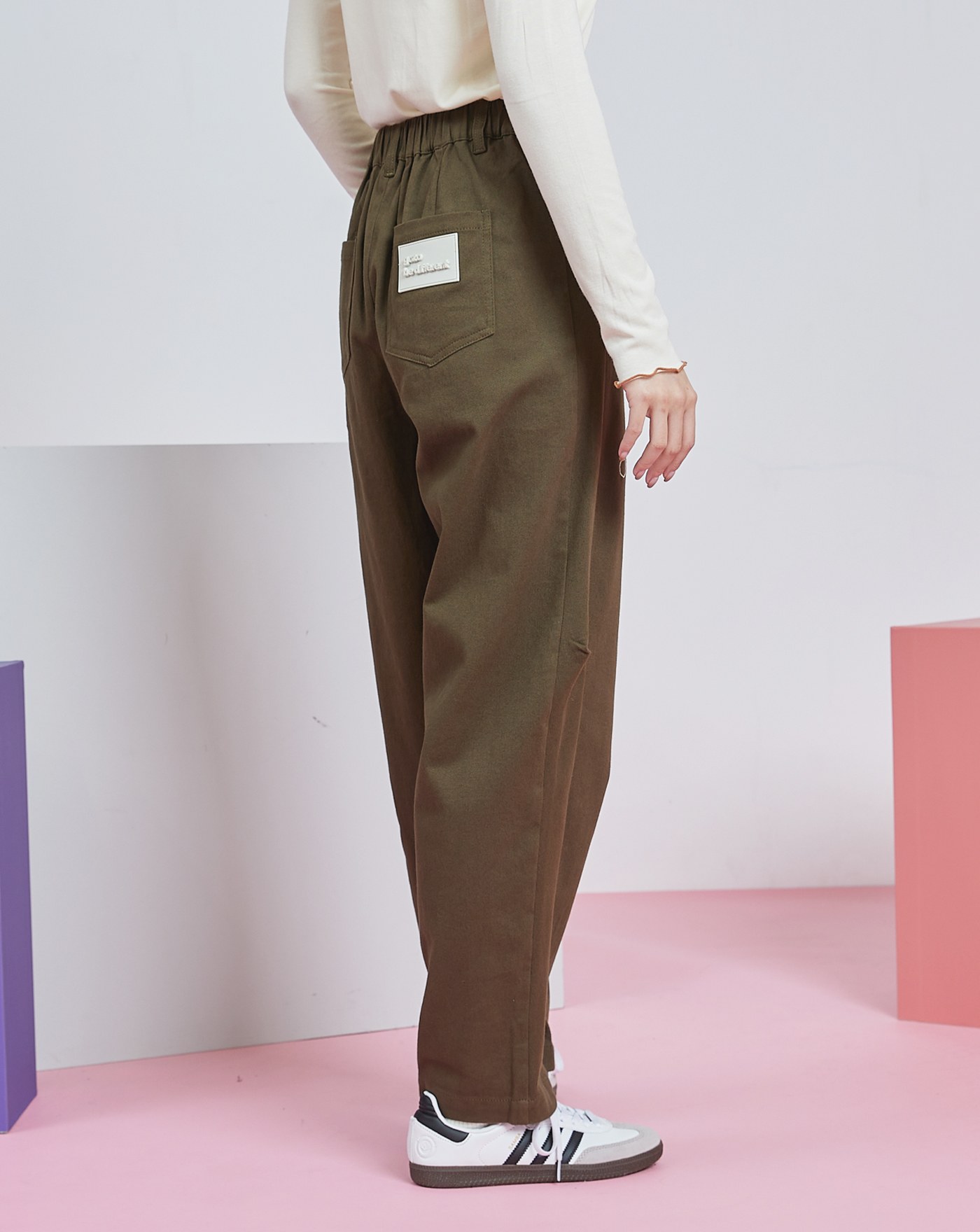 Ada造型釦彈性針織男友褲(兩色)