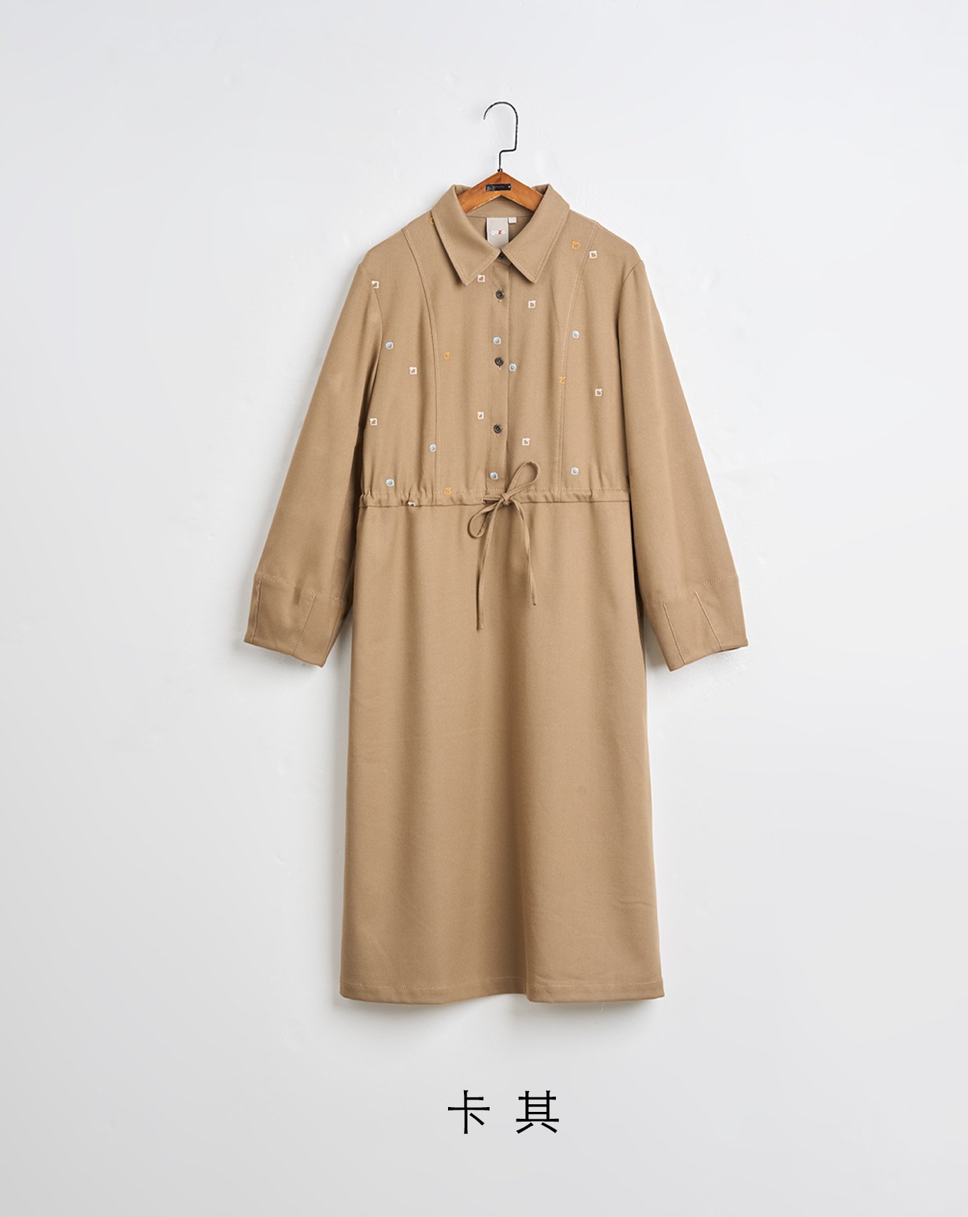 天絲暗條紋抽繩袖開襟洋裝(兩色)