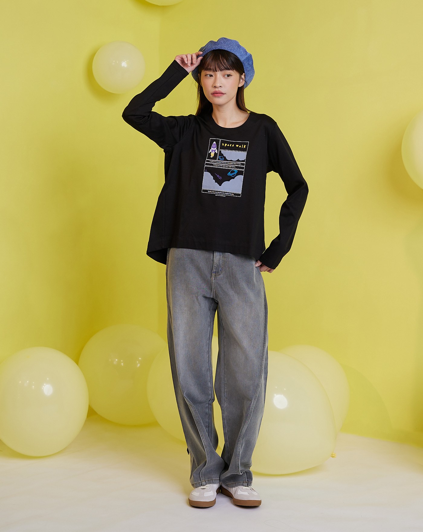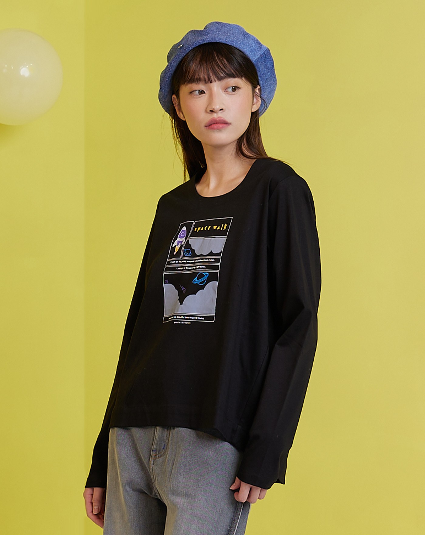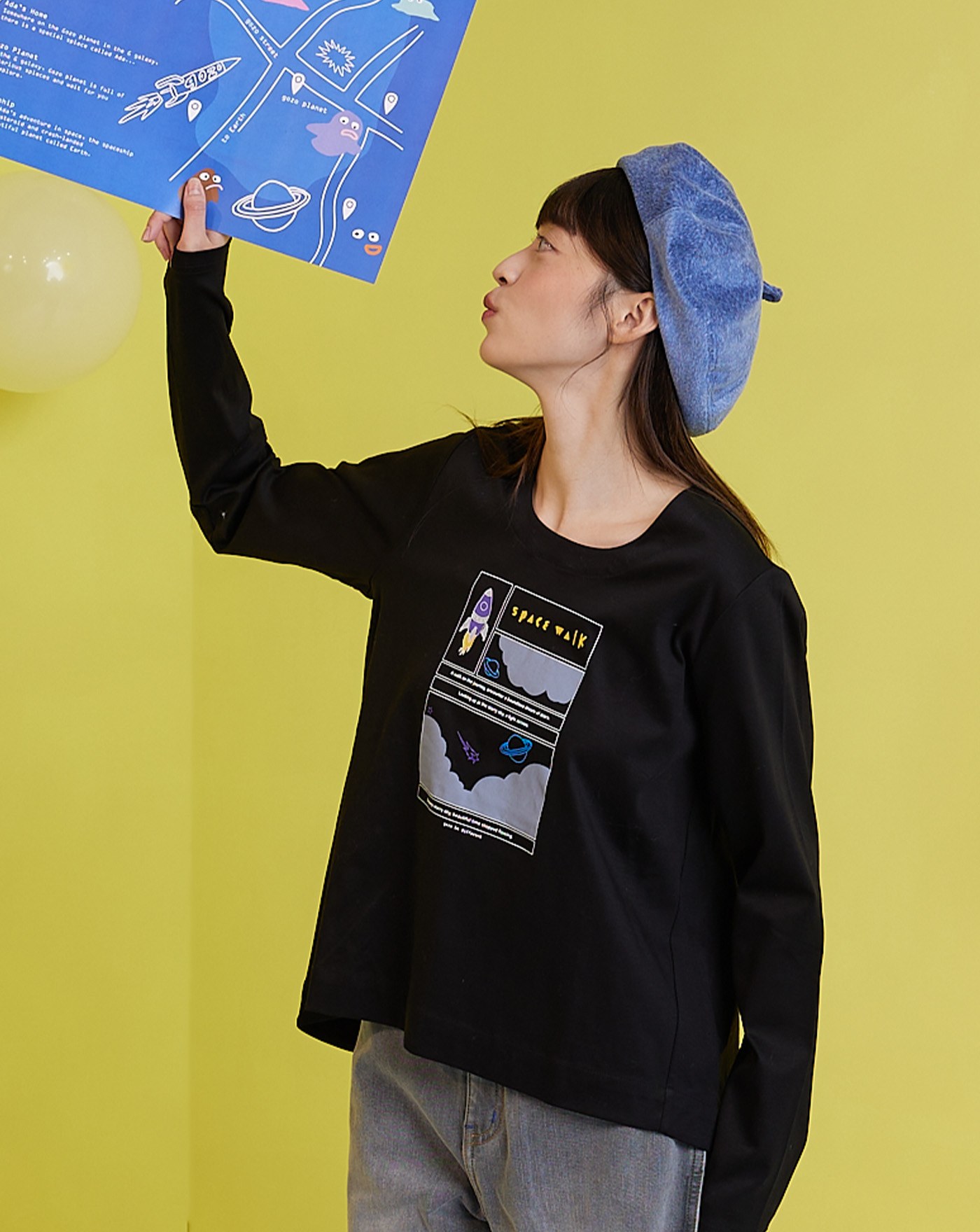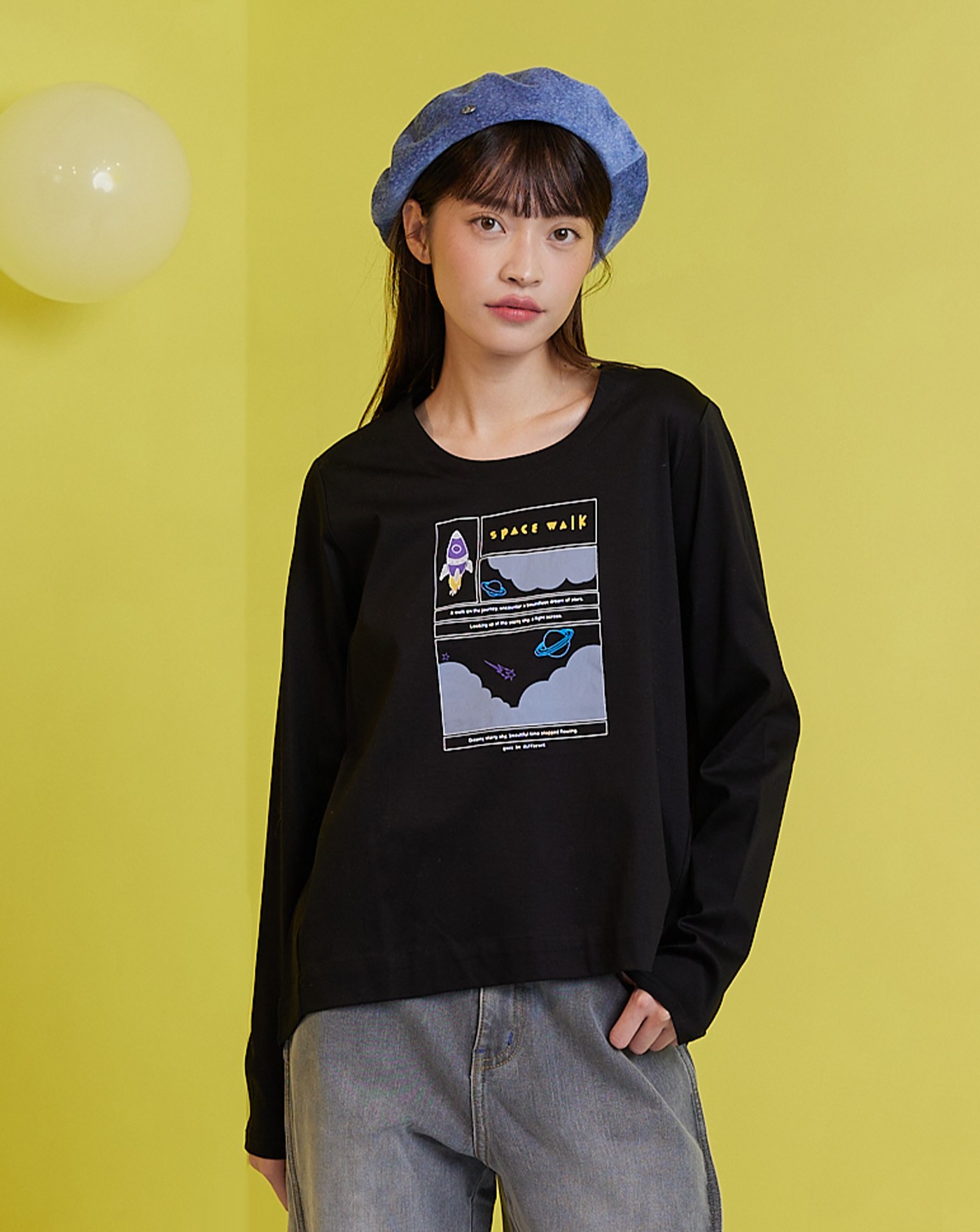 手繪星球植絨長袖T恤(兩色)