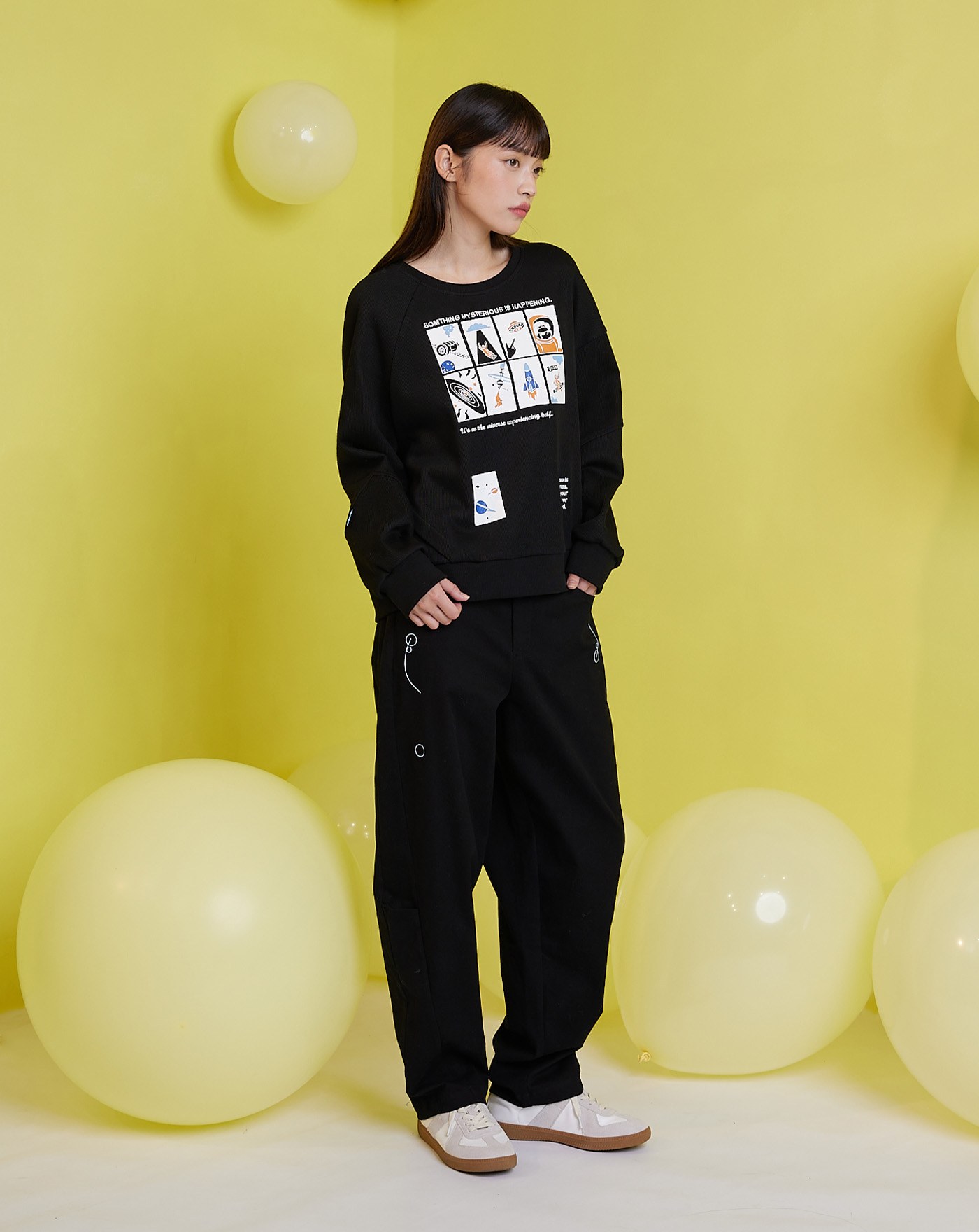 太空行星軌跡剪接打褶直筒褲(兩色)