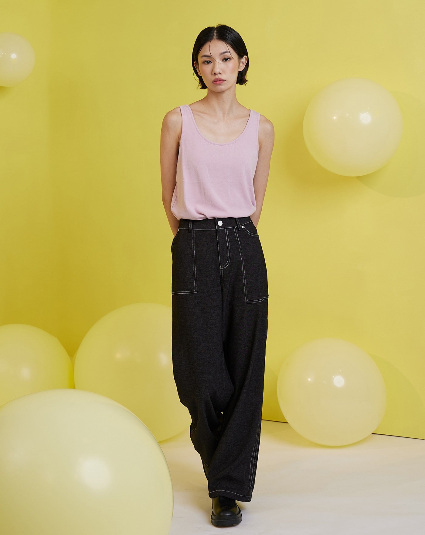 立體車線水洗廓型牛仔褲(灰色)