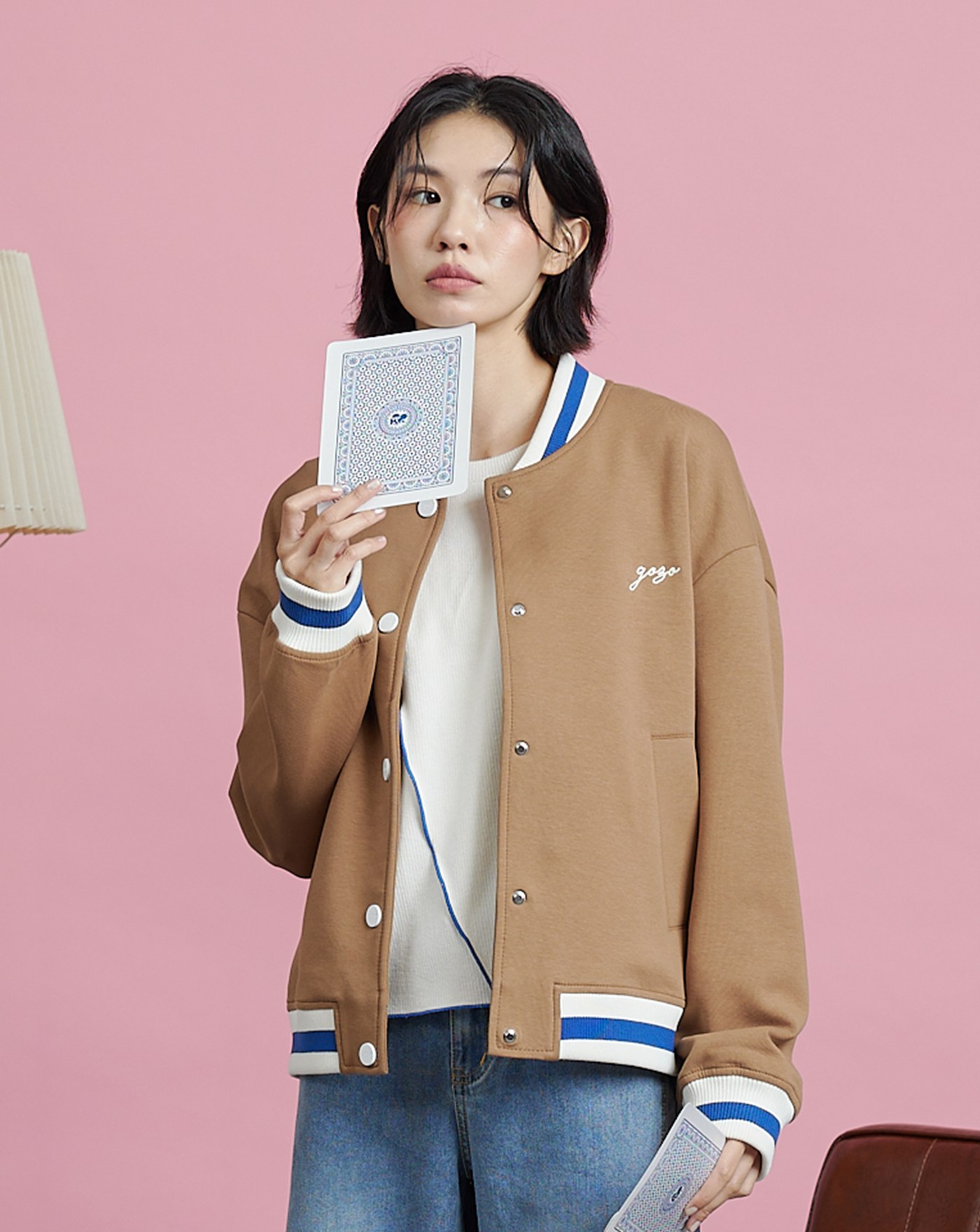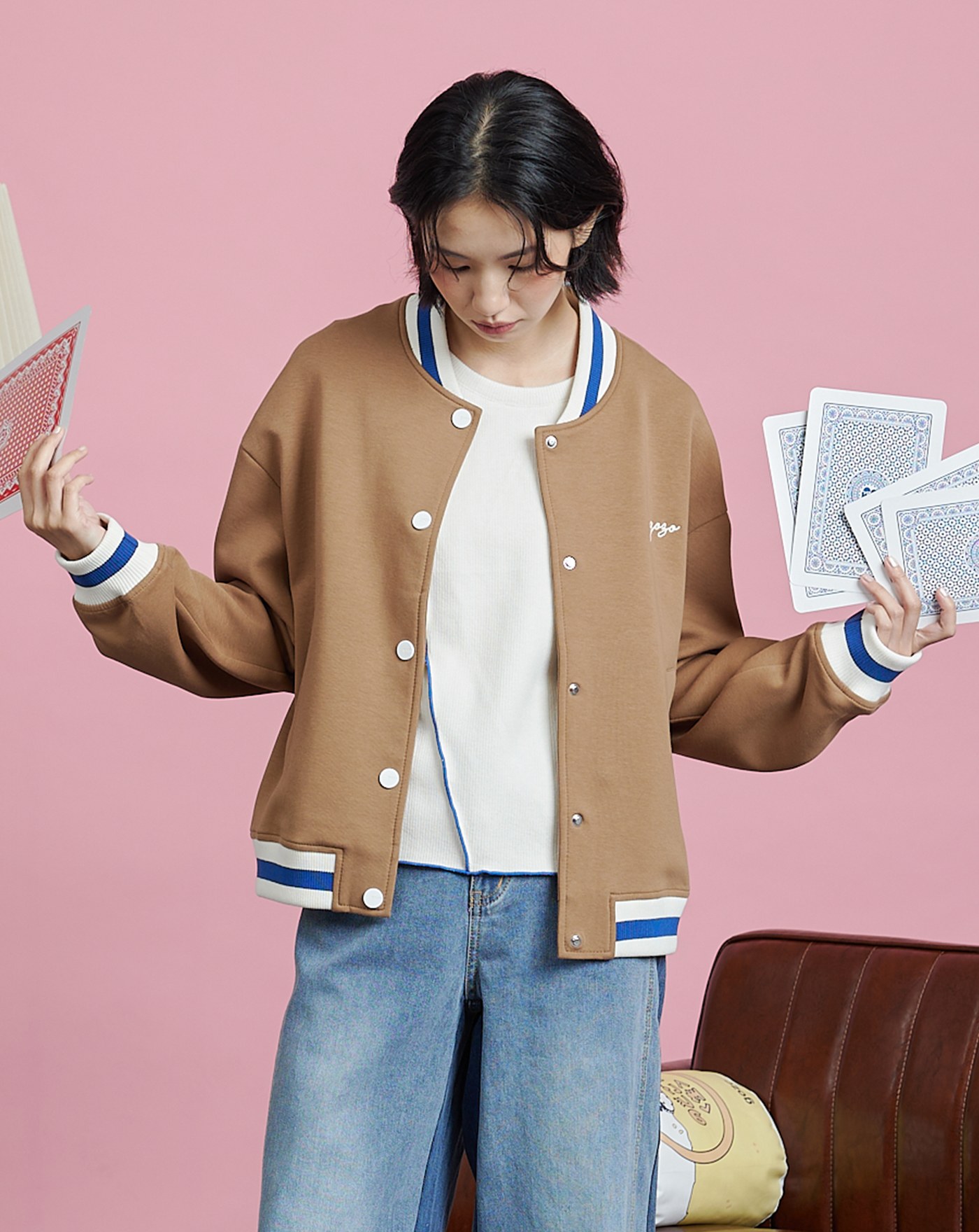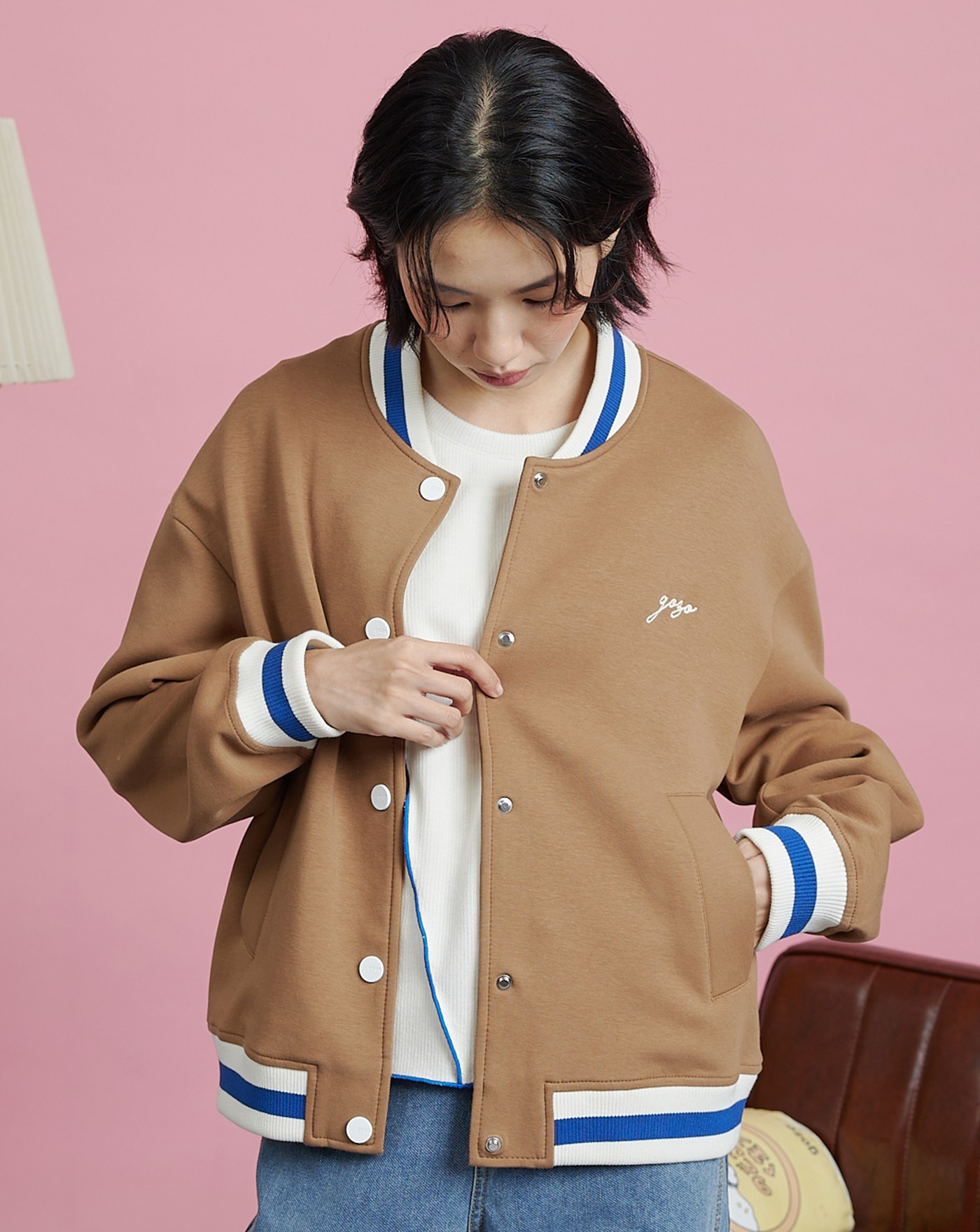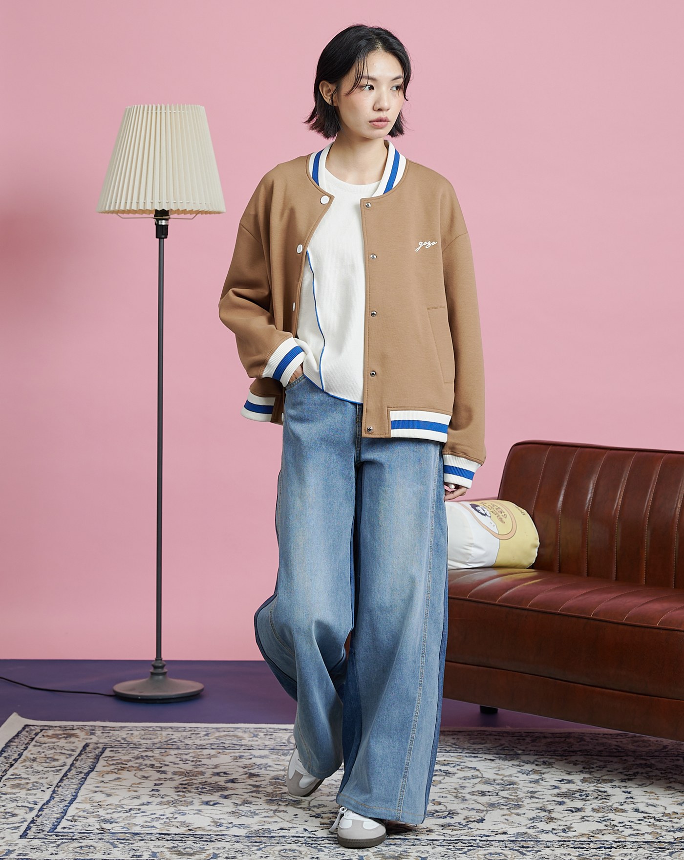 異材質拼接牛仔棒球外套(兩色)