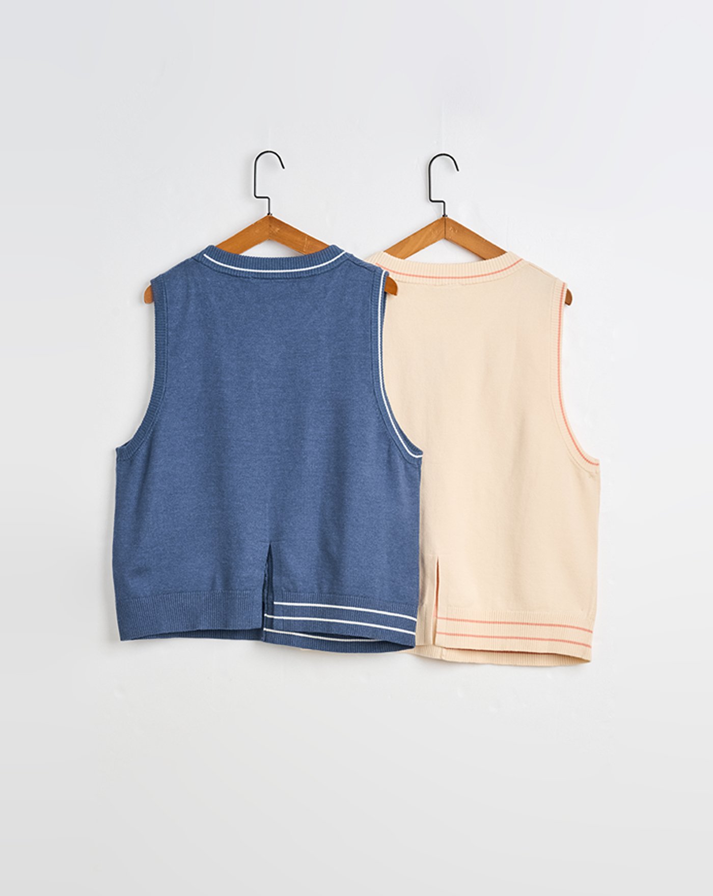 ➤古人漫步毛線繡V領毛衣背心(兩色)