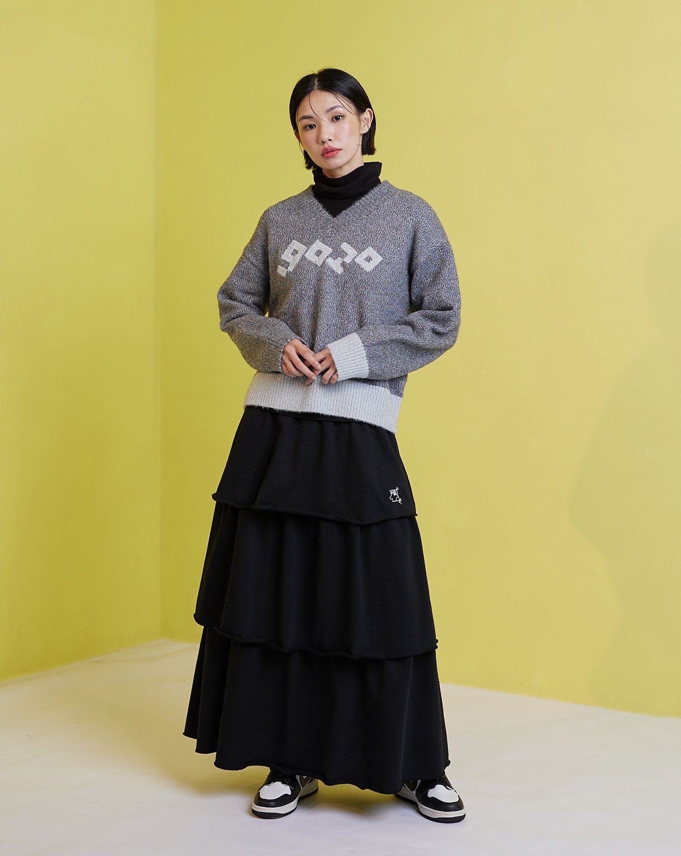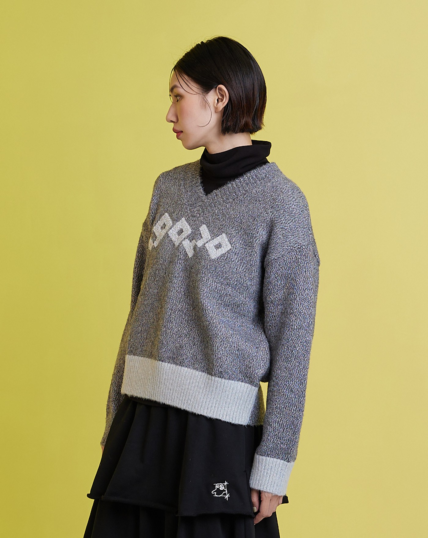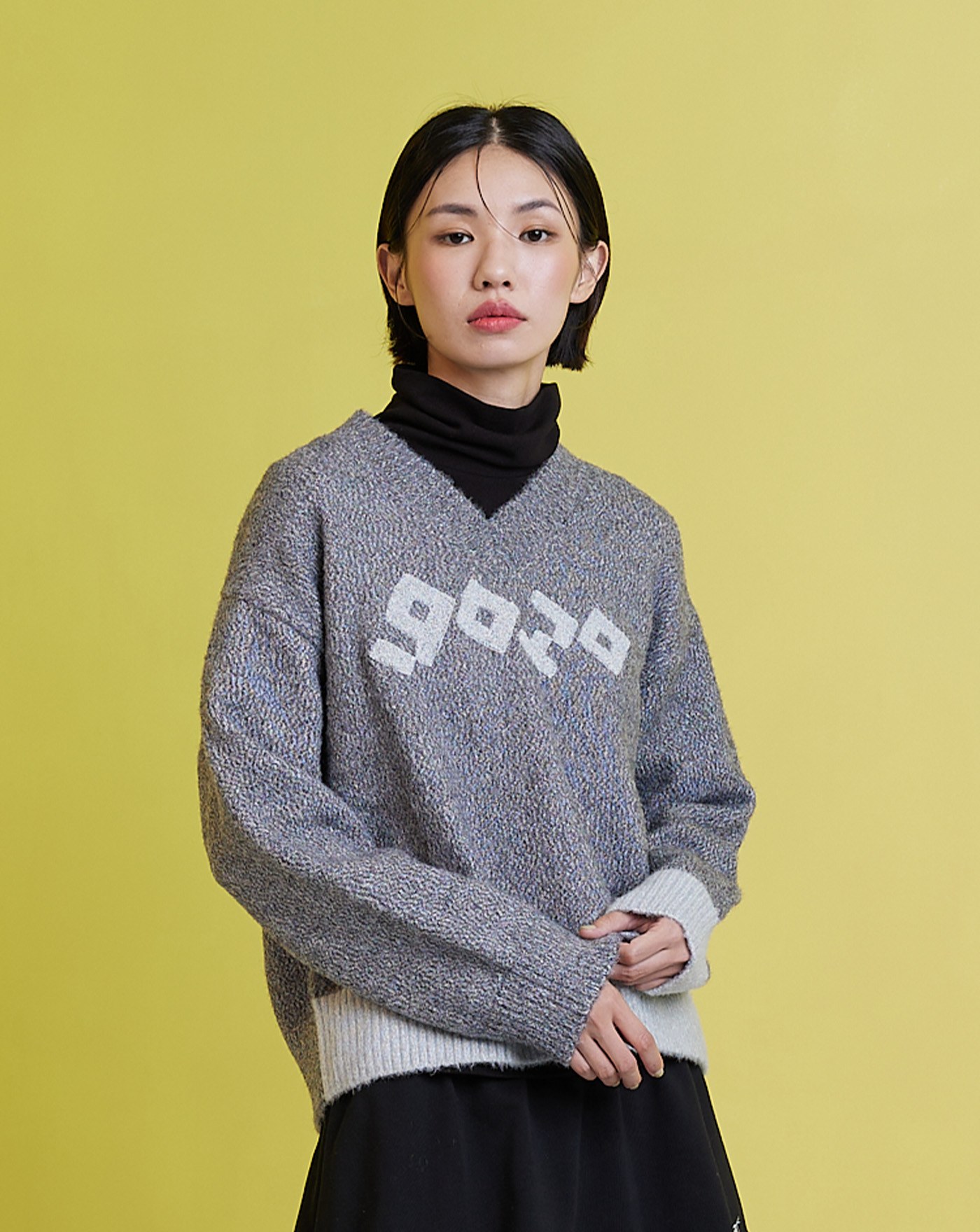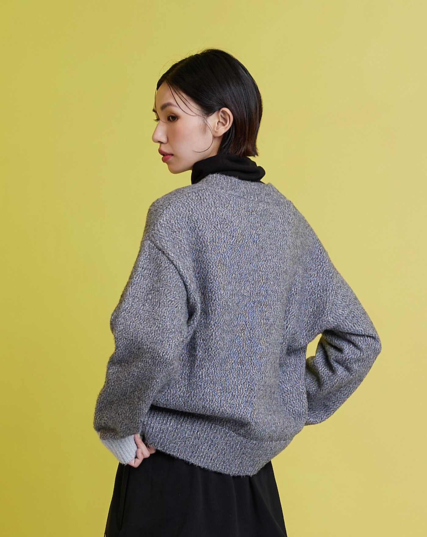仿浣熊毛翻領字母配色毛衣外套(兩色)