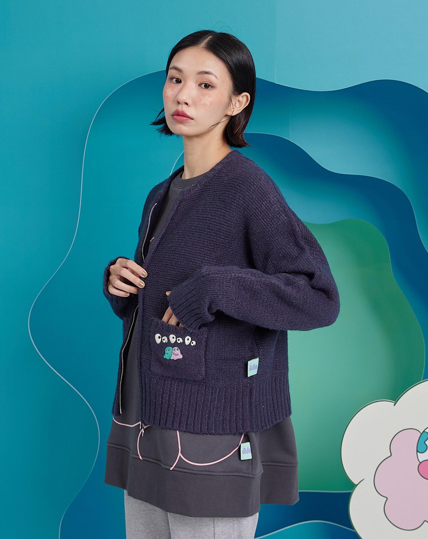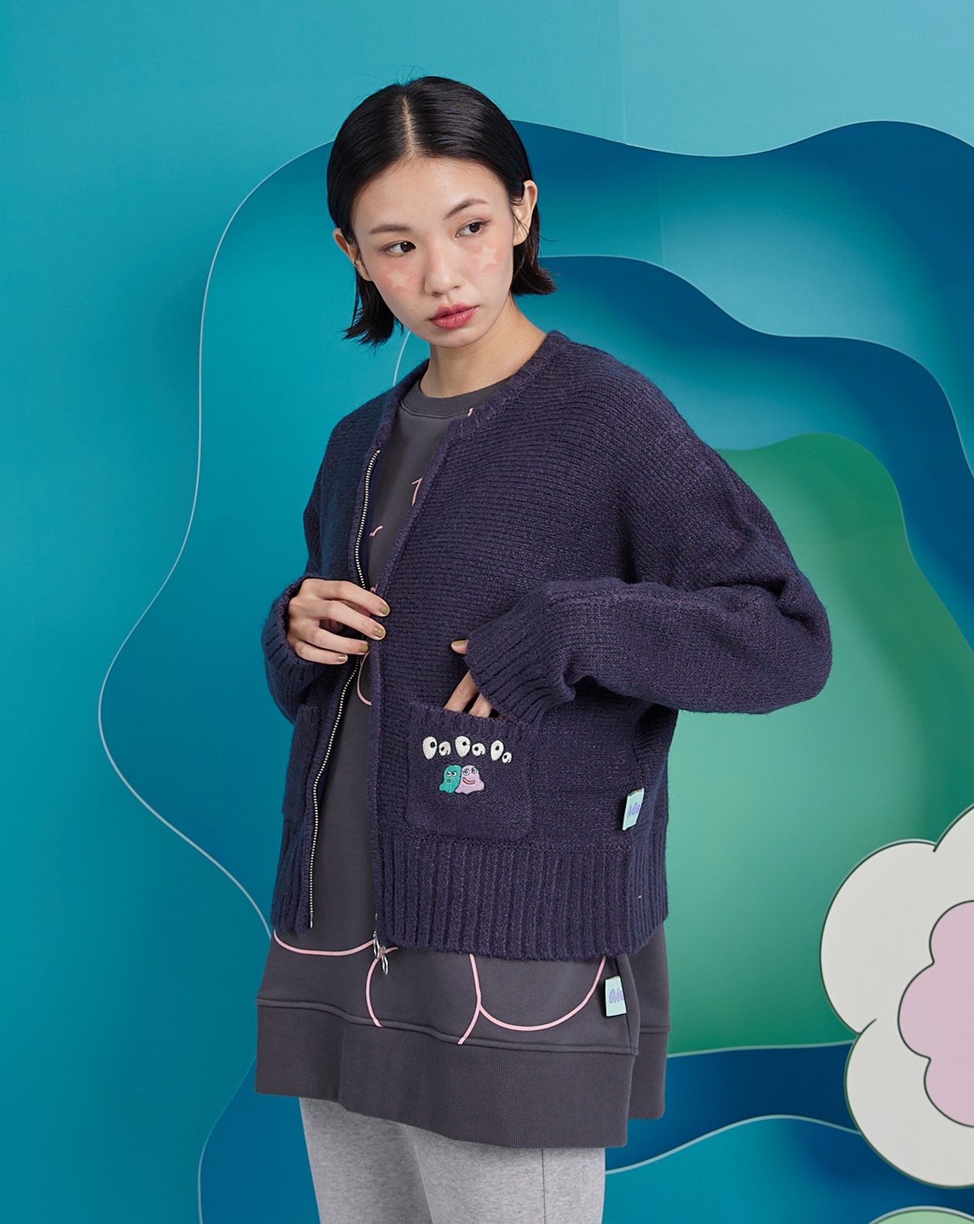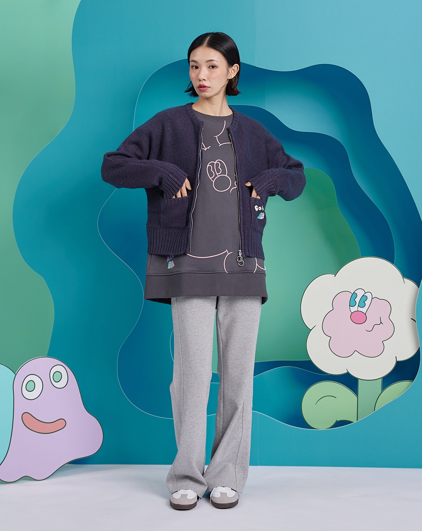 gozoxKINGJUN病毒花氣球V領毛衣背心(兩色)