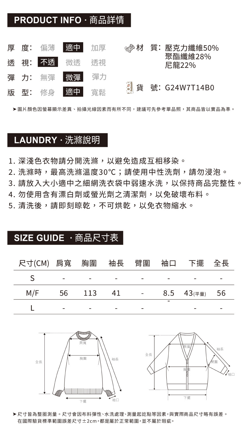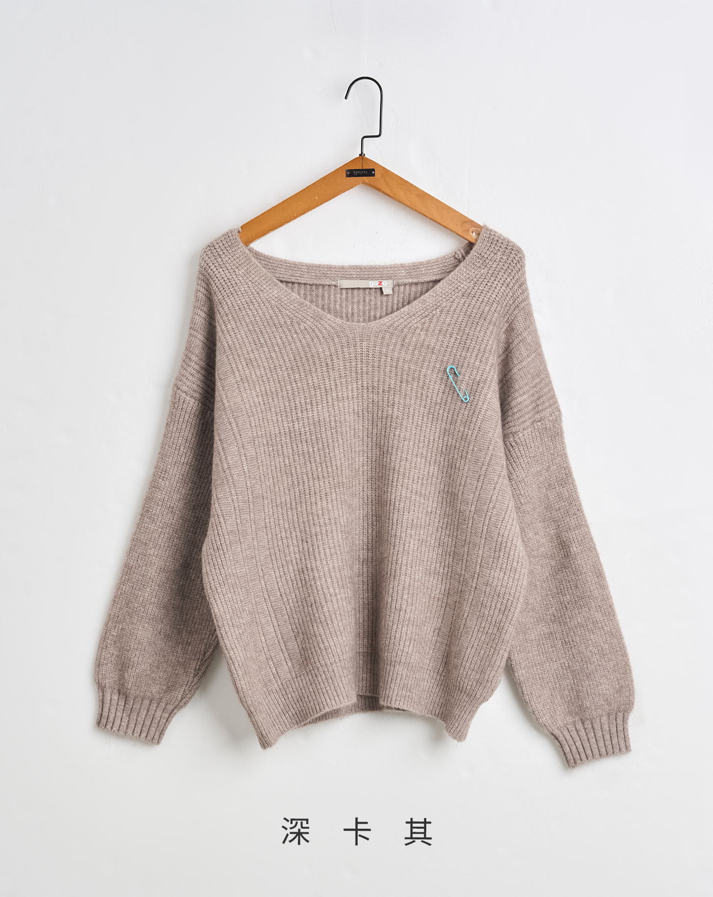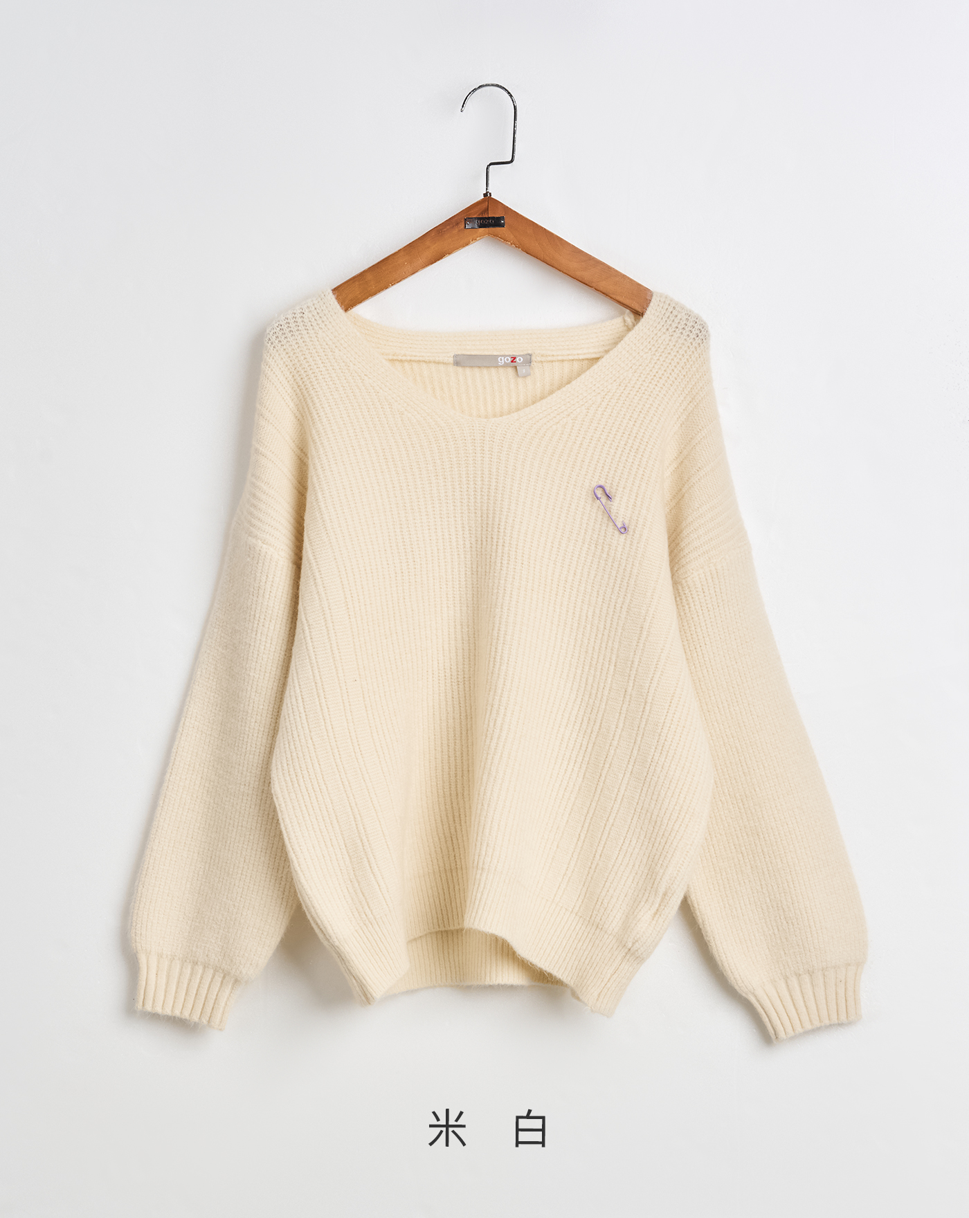 ➤別針造型短版落肩毛衣(兩色)