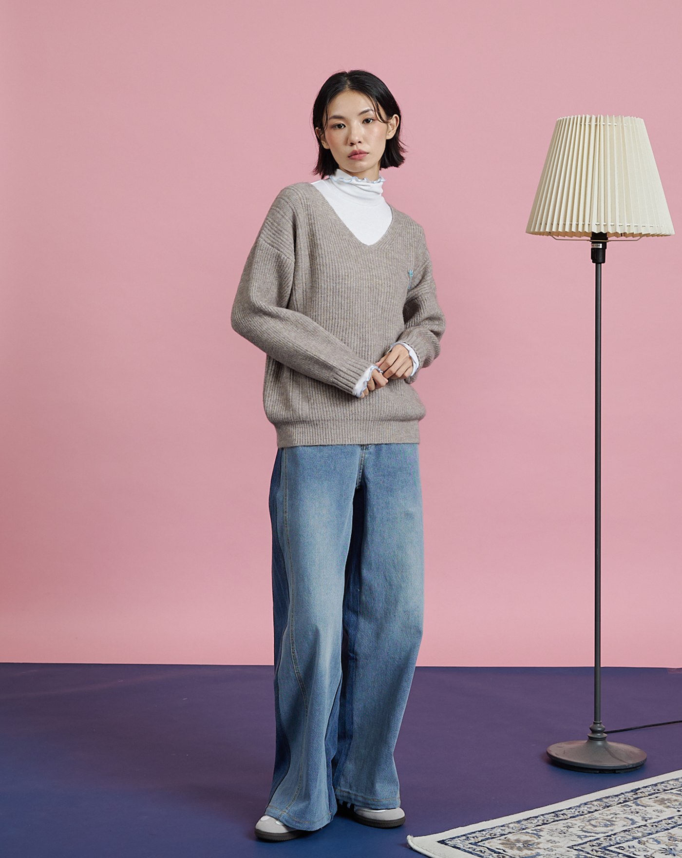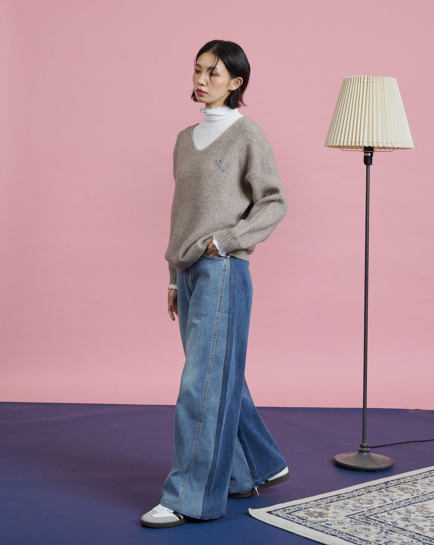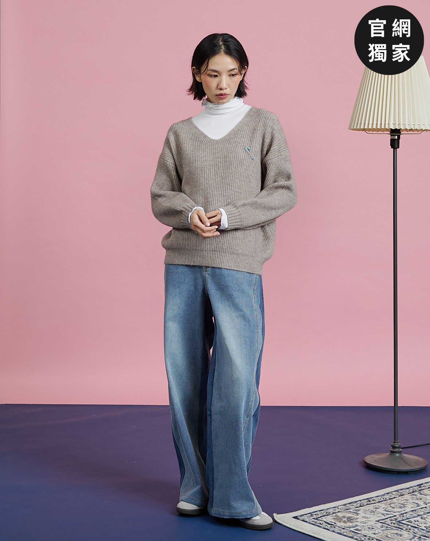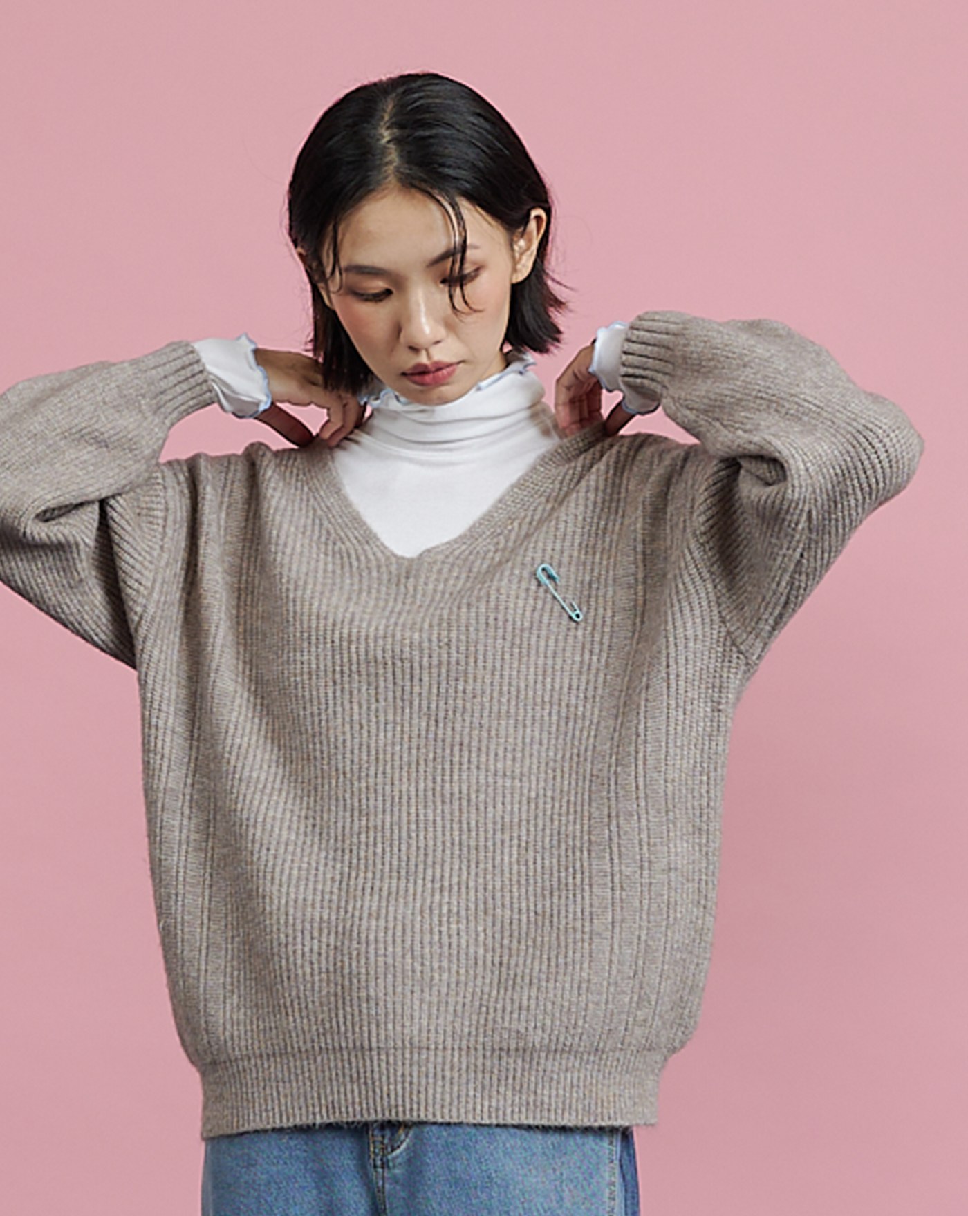 別針造型假兩件羊毛毛衣(兩色)