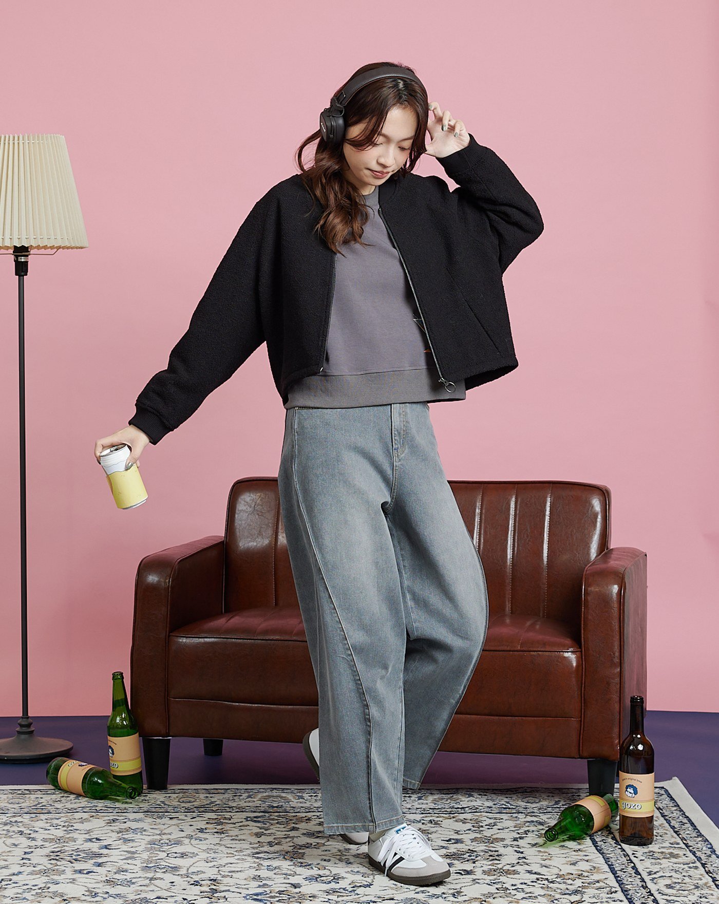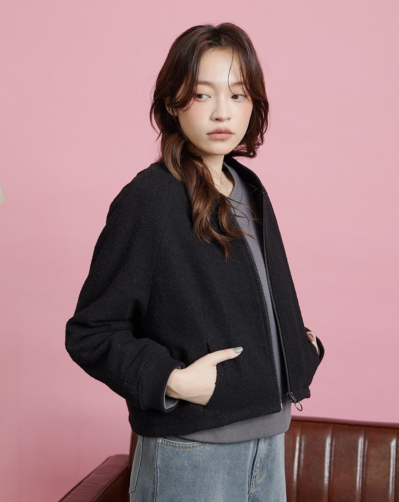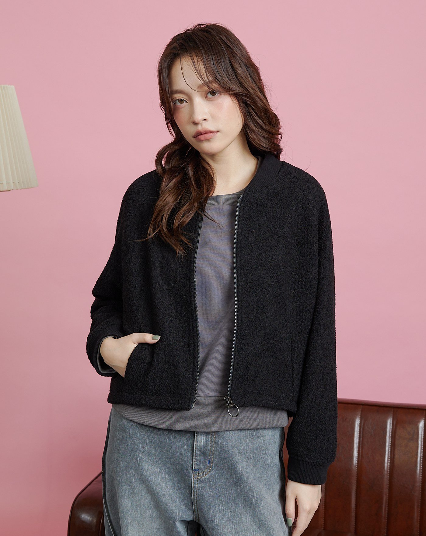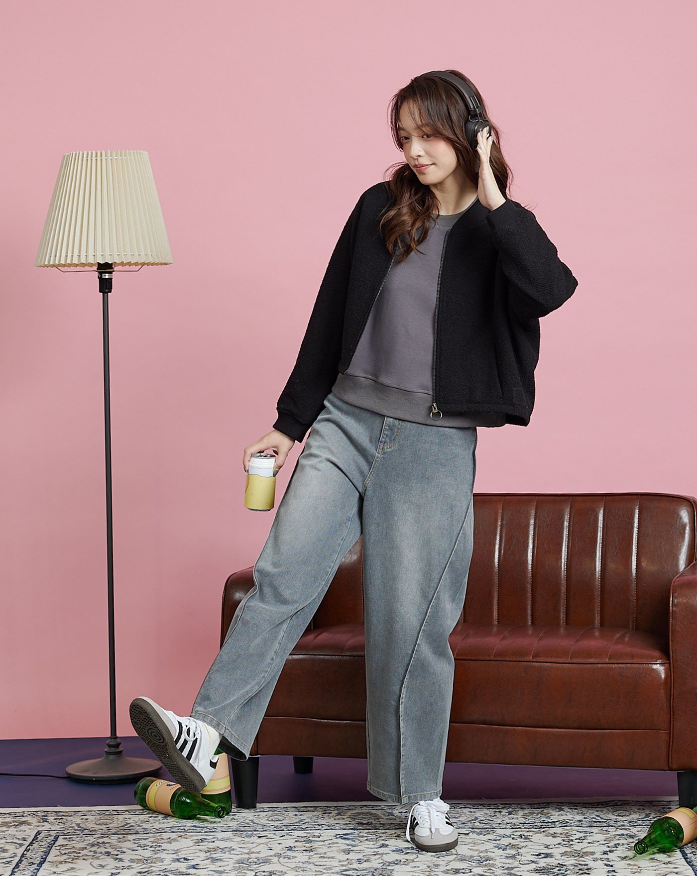 QQ毛拼接配色鋪棉連帽外套(兩色)