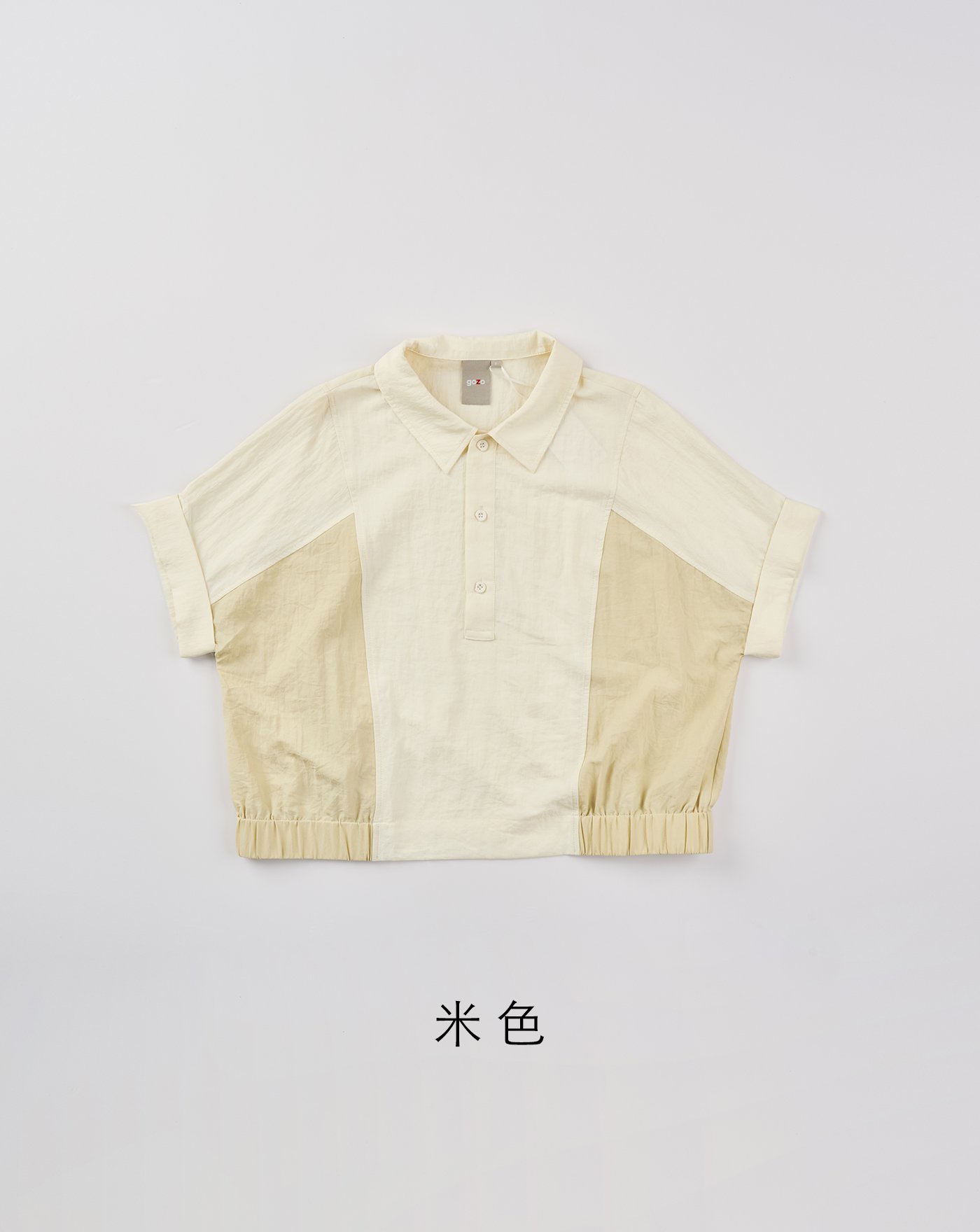 ➤配色鈕扣開襟連袖上衣(兩色)