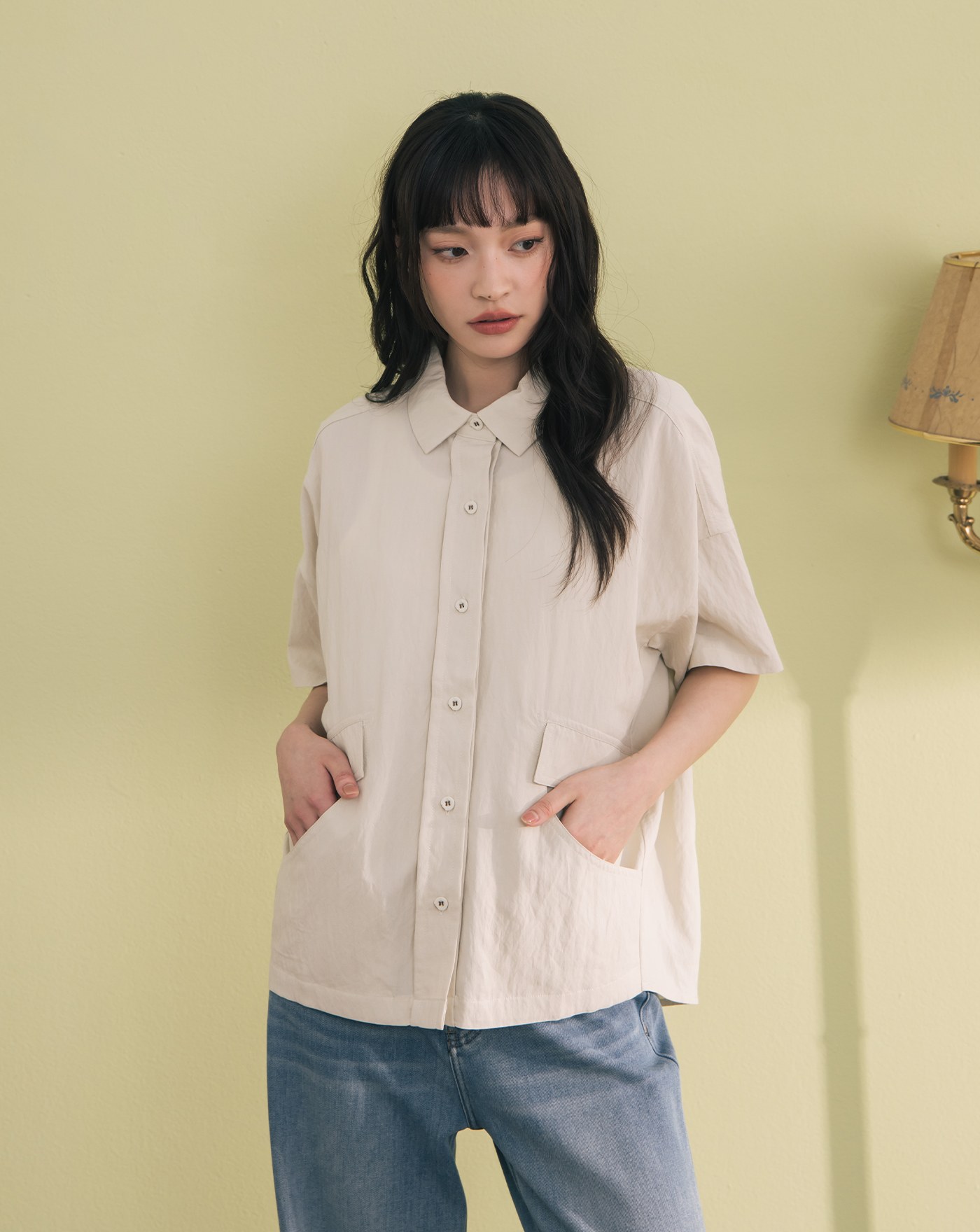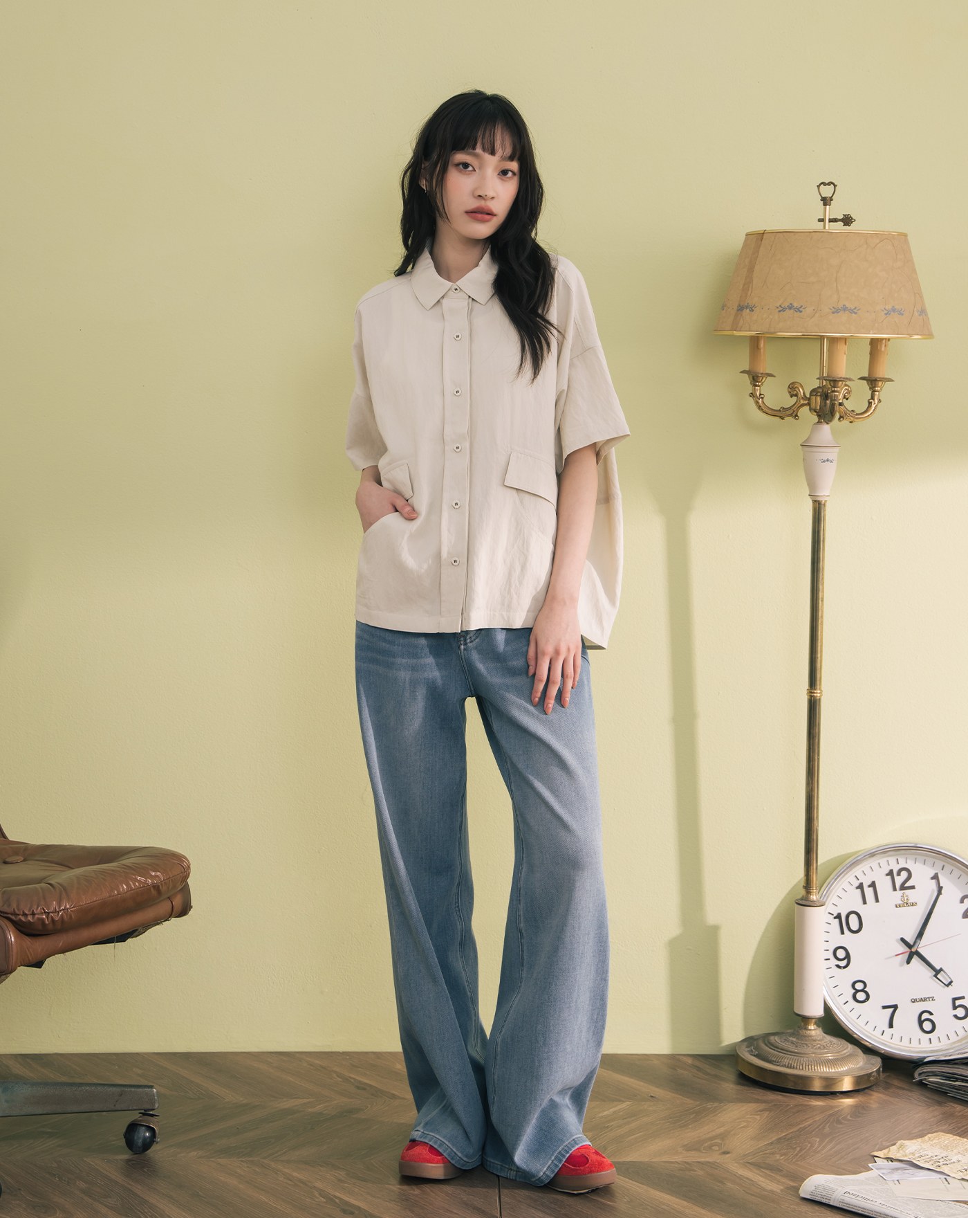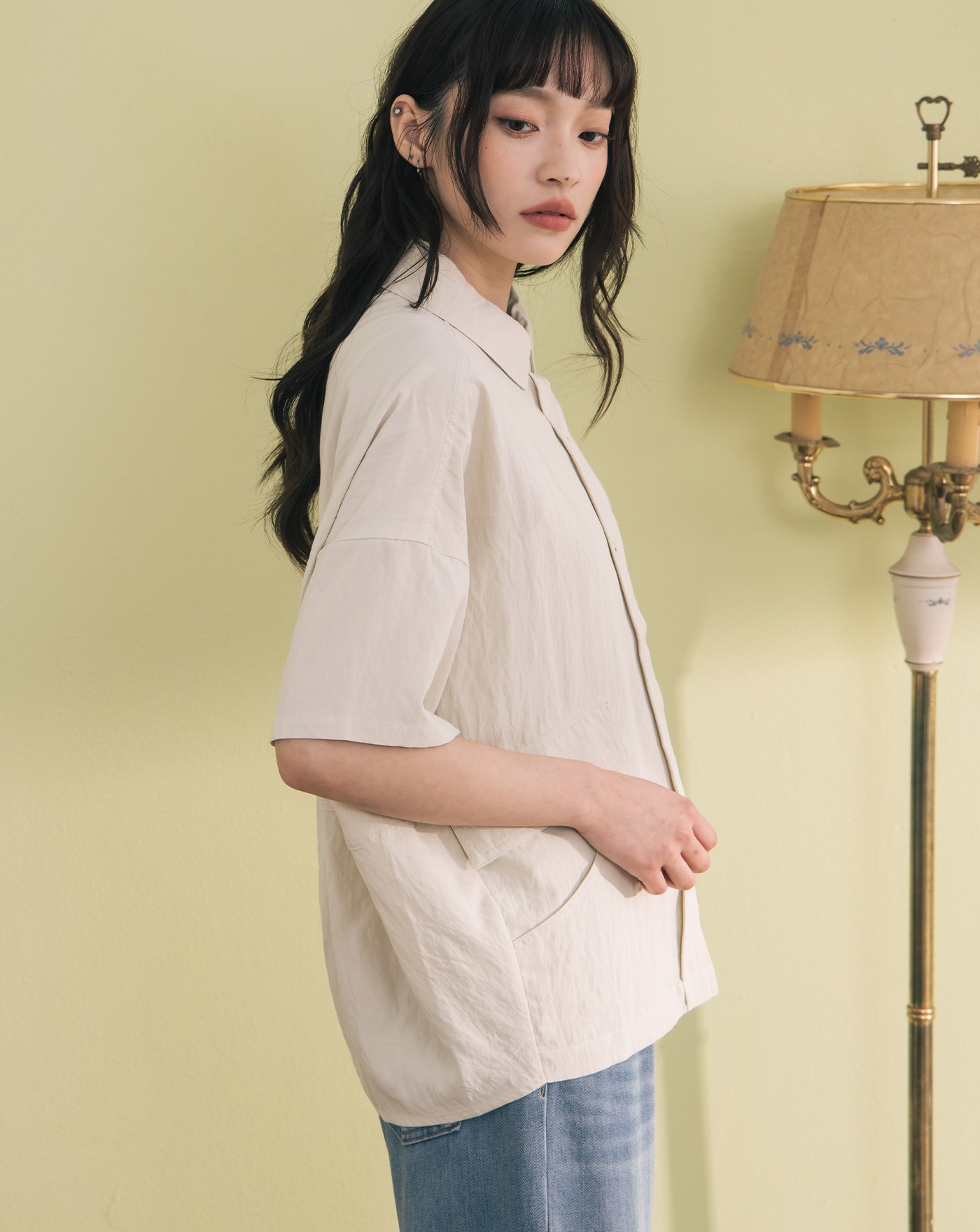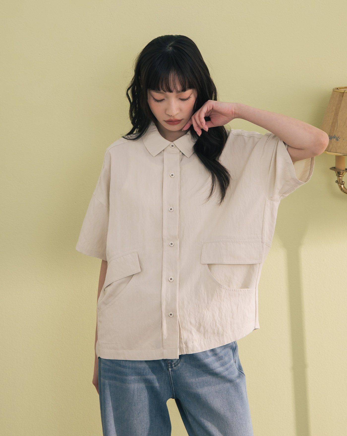 鬆緊拋袖可調節收腰造型襯衫(兩色)