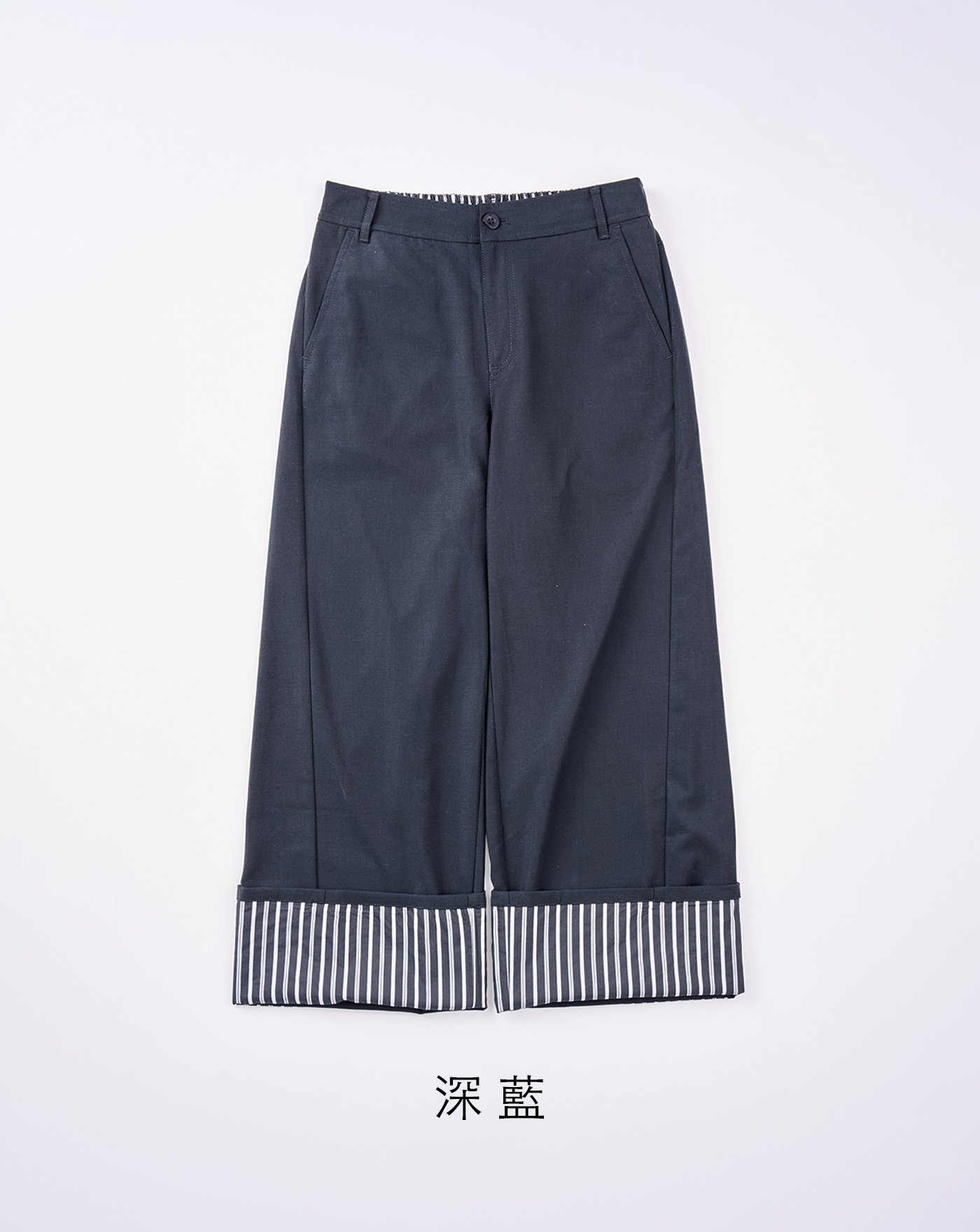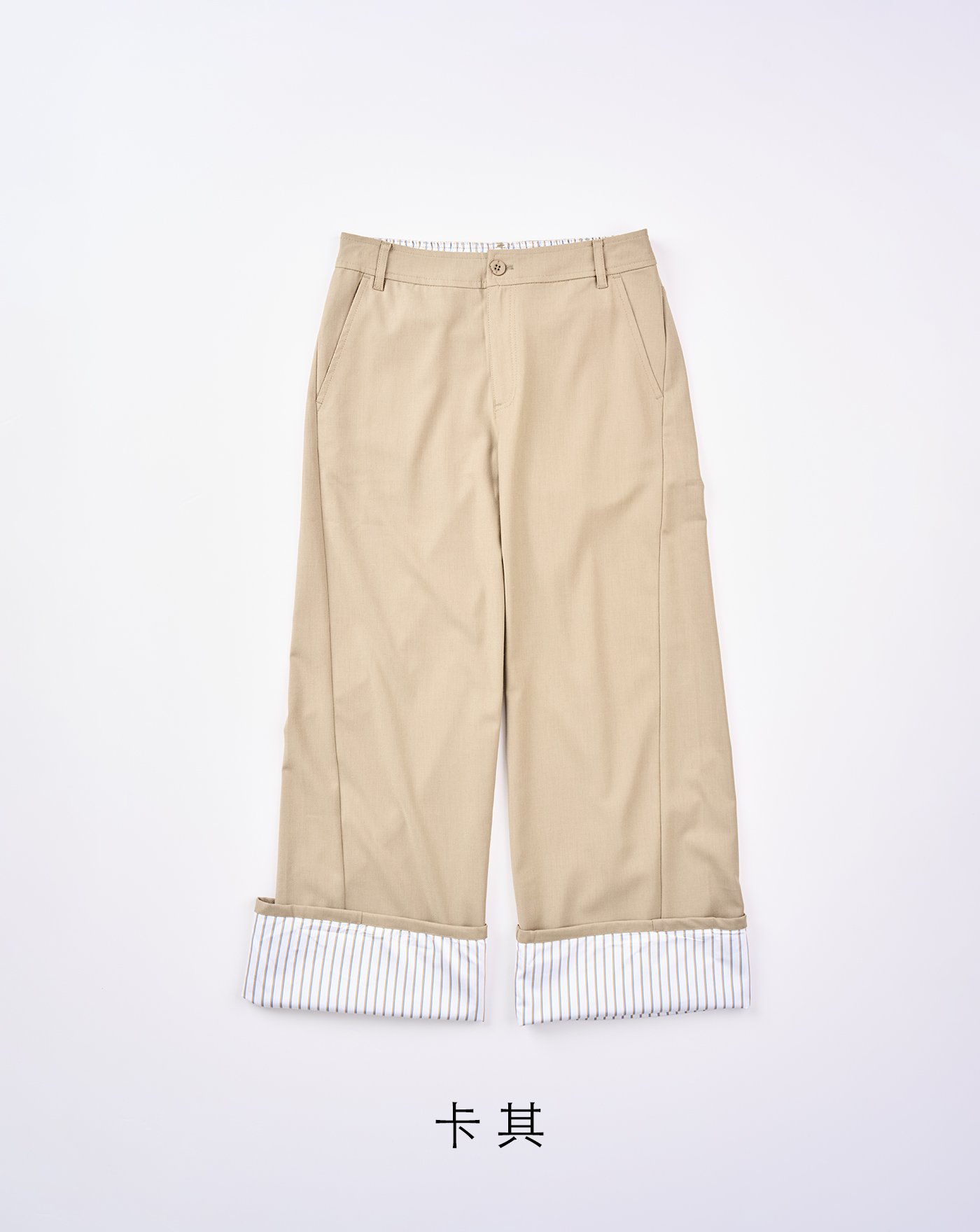 ➤反折袖鬆緊下擺拼色半開襟上衣(兩色)