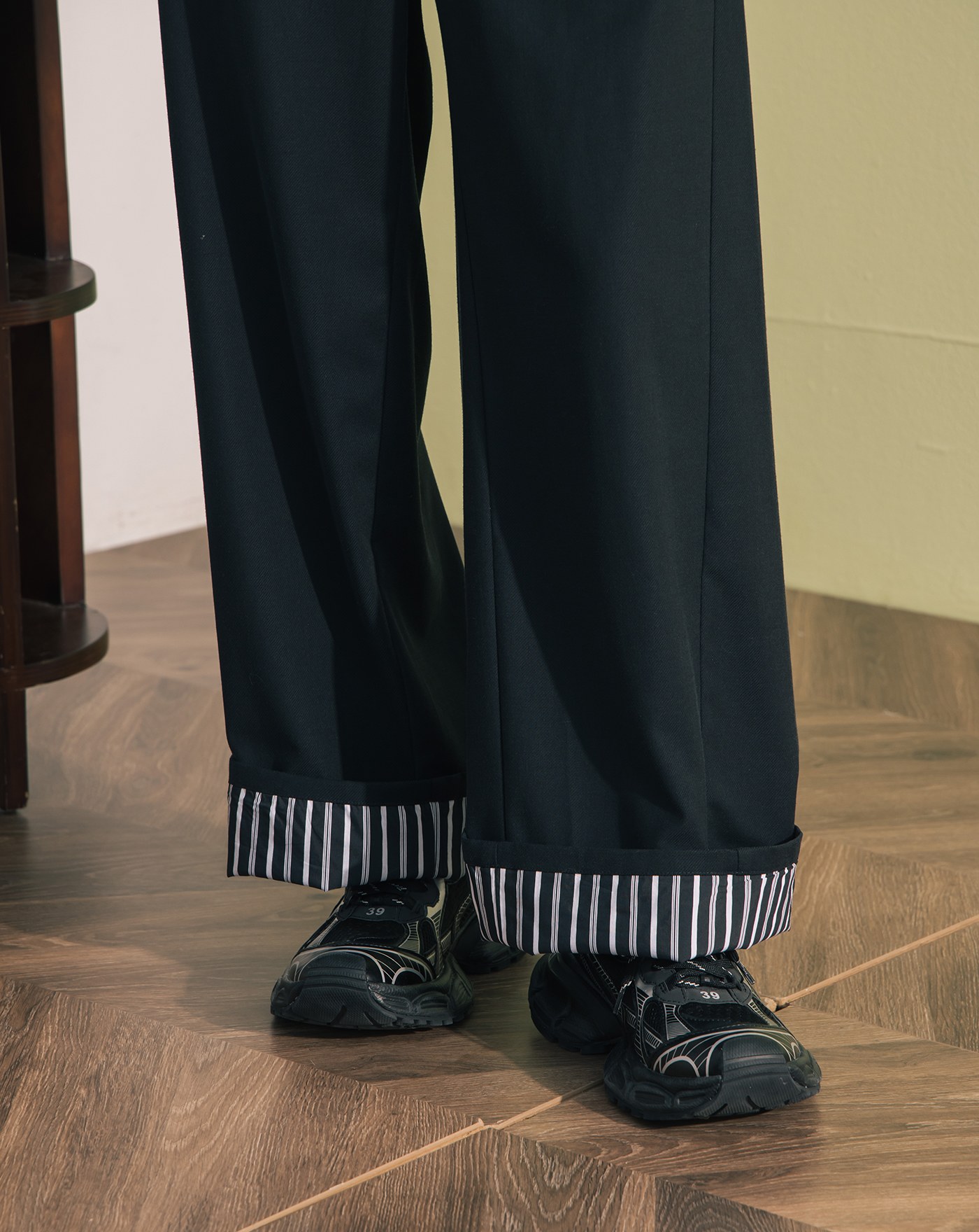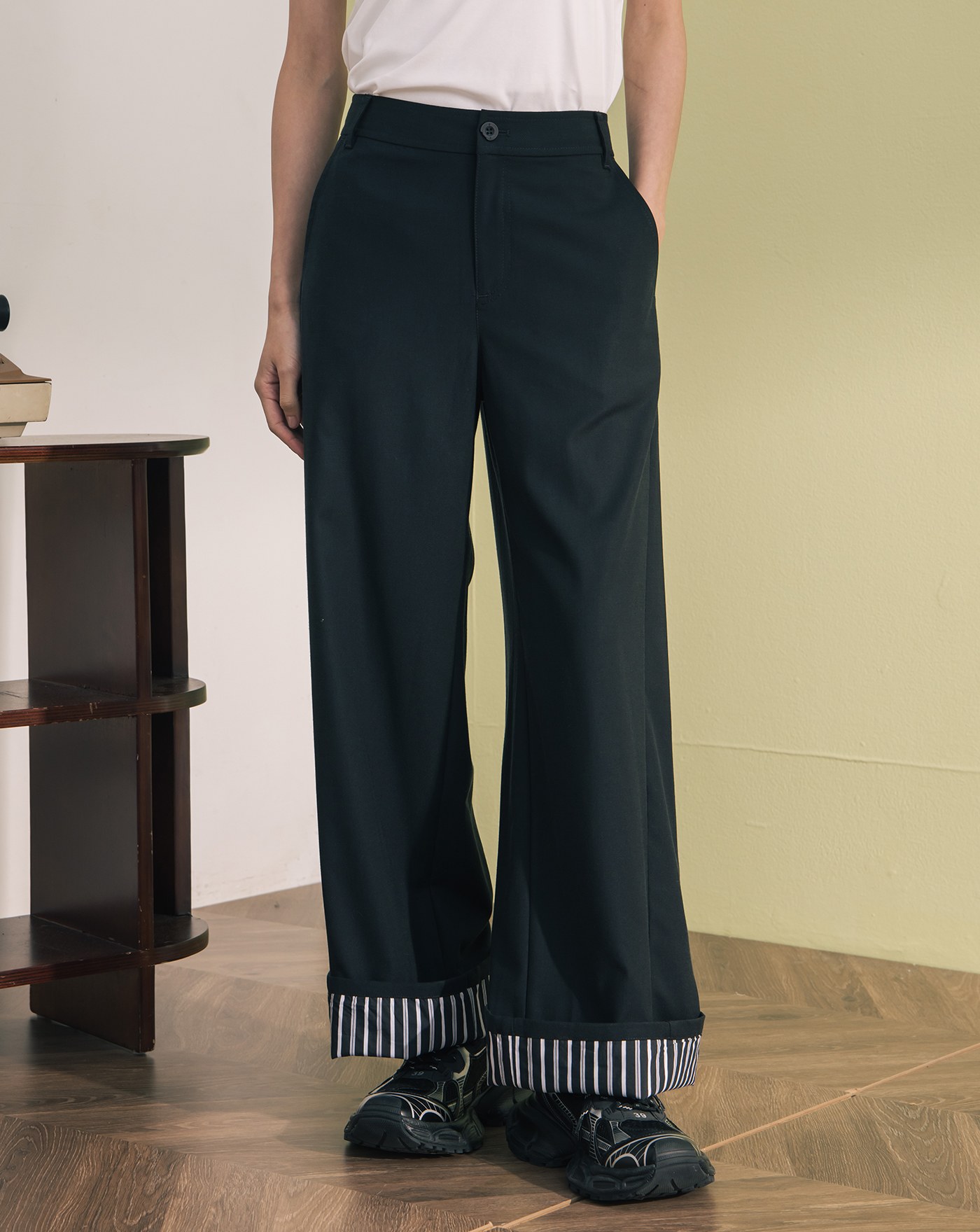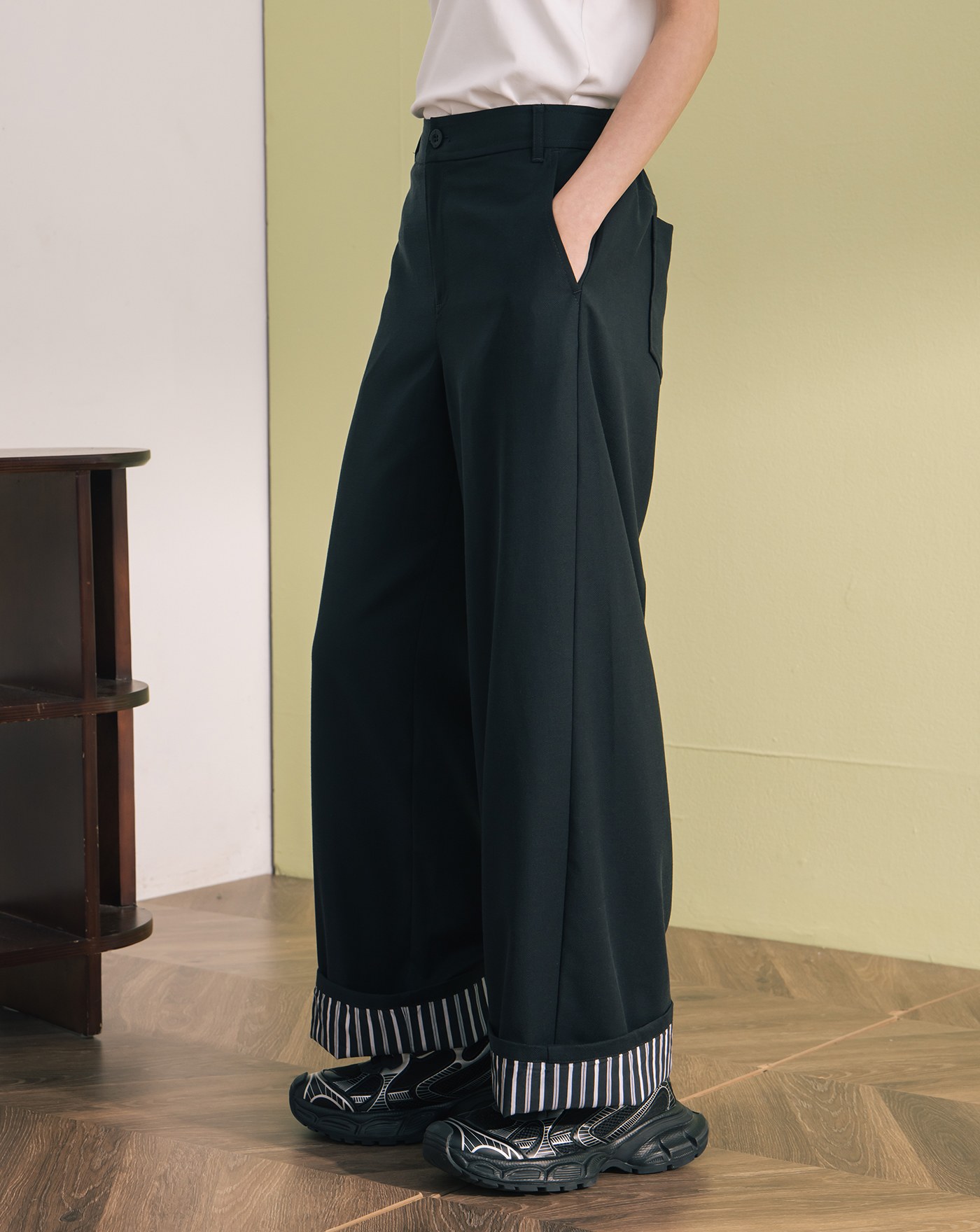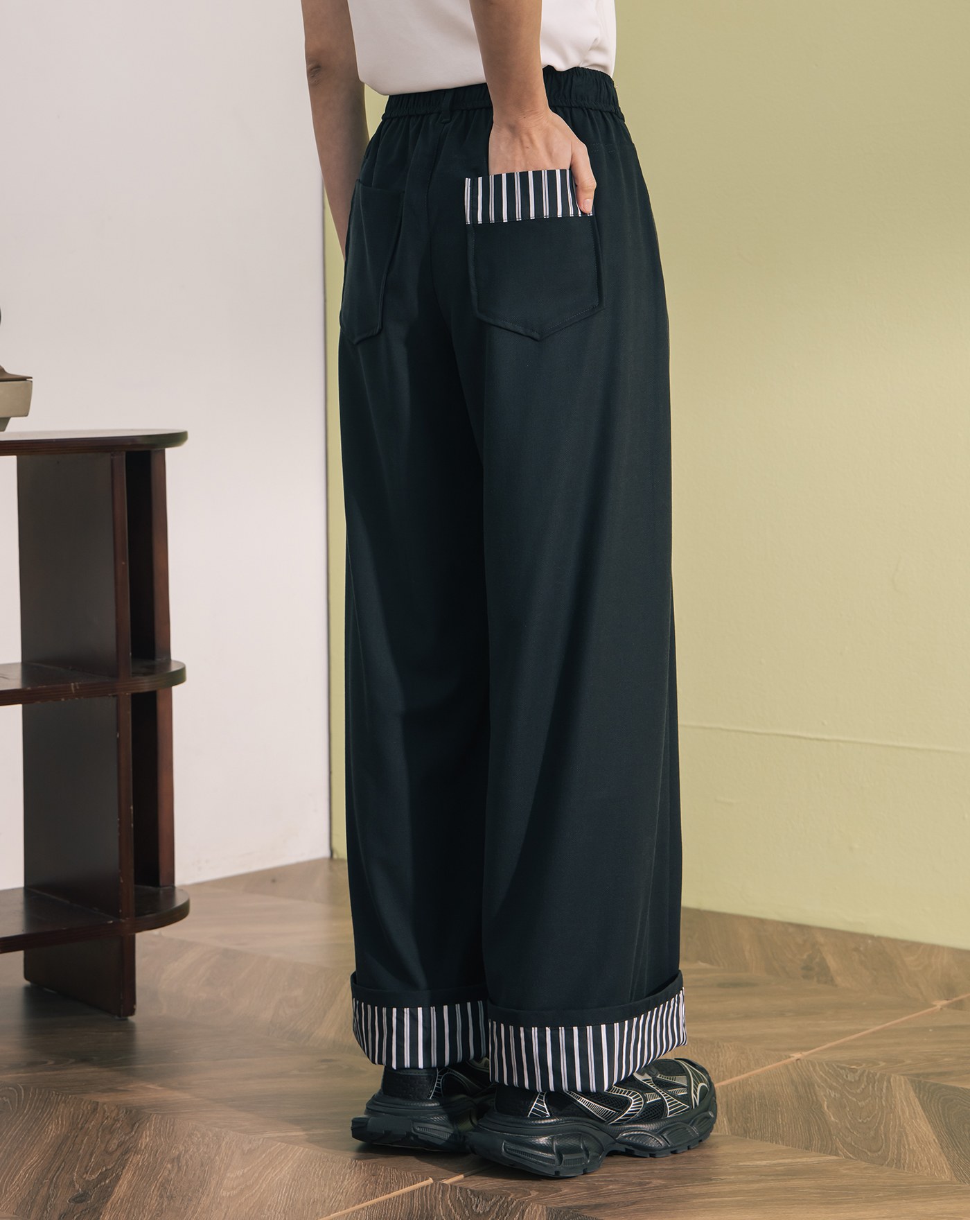 ➤反折袖鬆緊下擺拼色半開襟上衣(兩色)