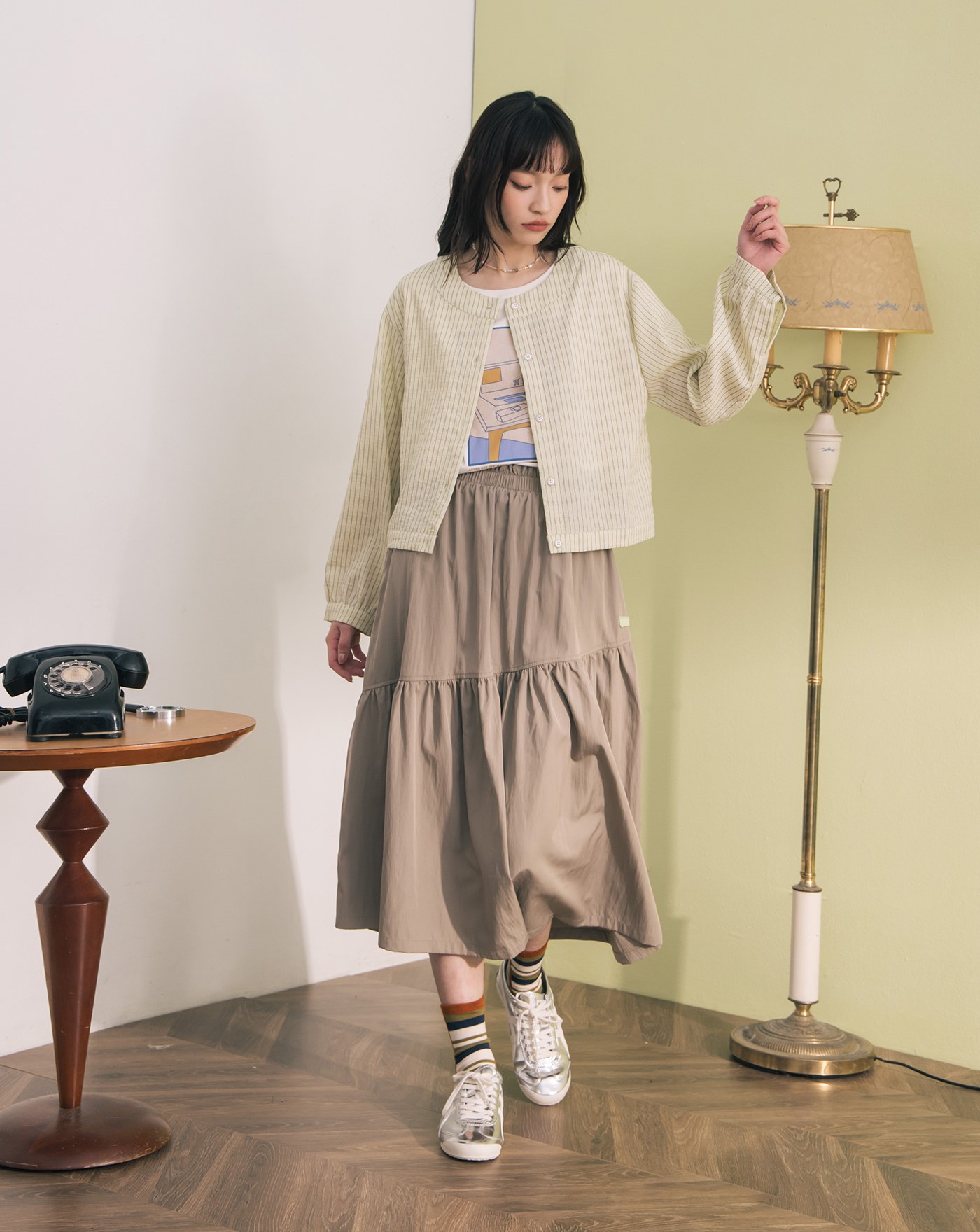 ➤斜邊造型抓褶蛋糕裙(兩色)