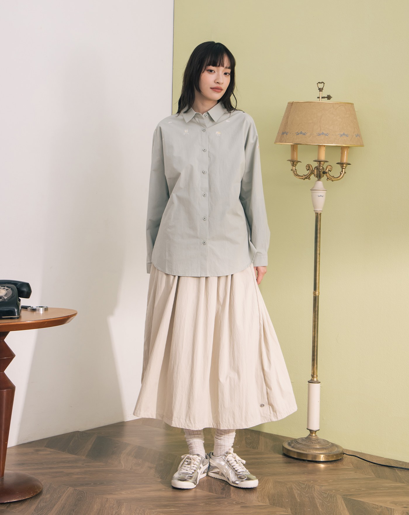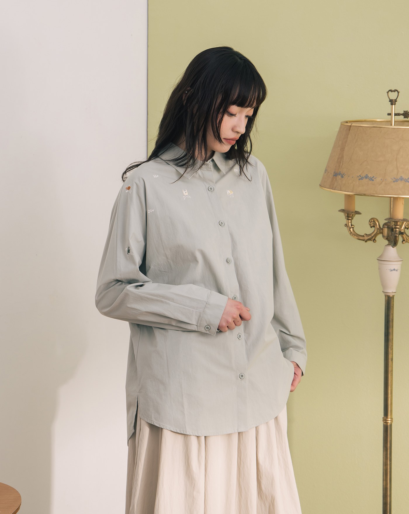 涼感天絲造型調節袖口大口袋襯衫(兩色)