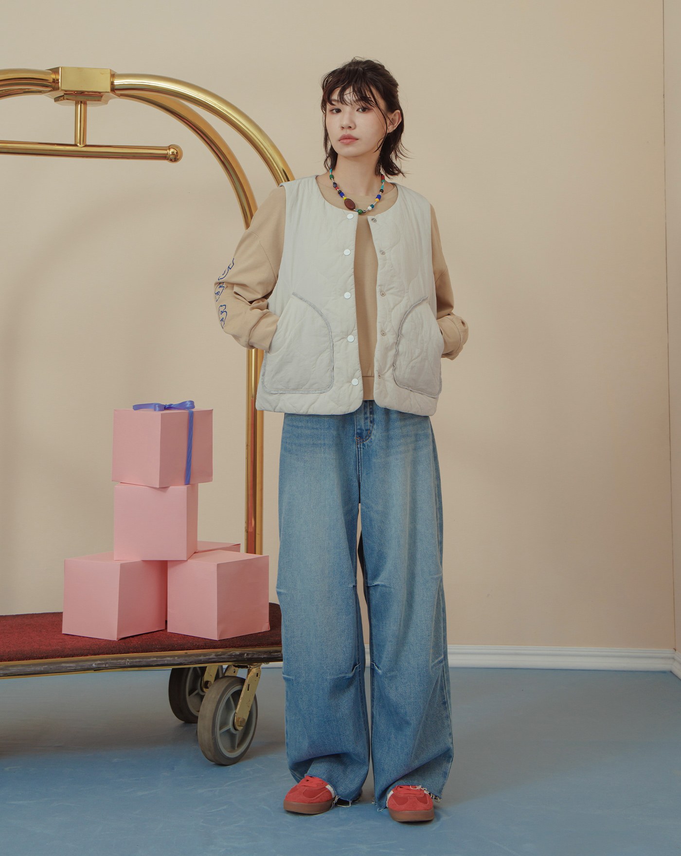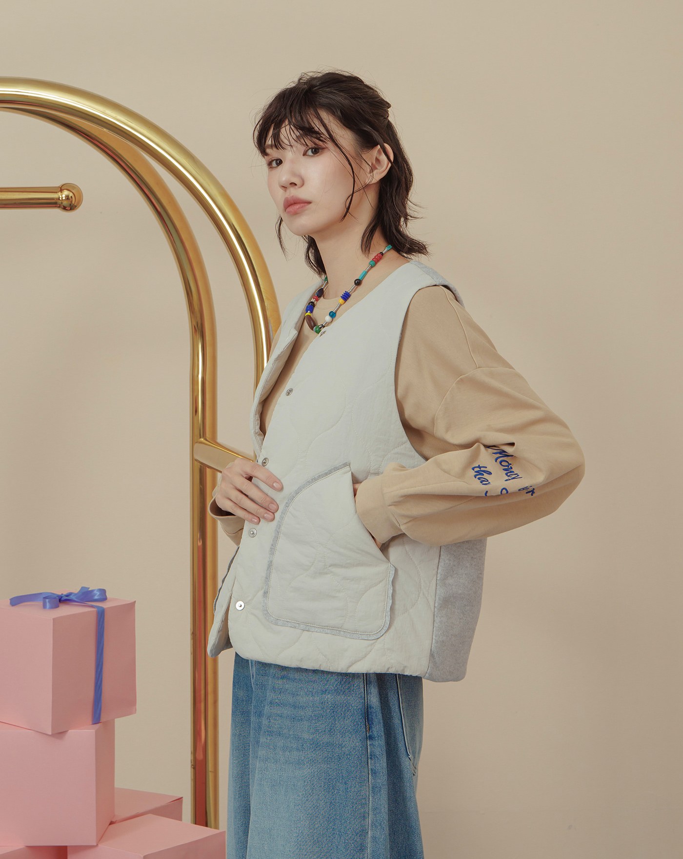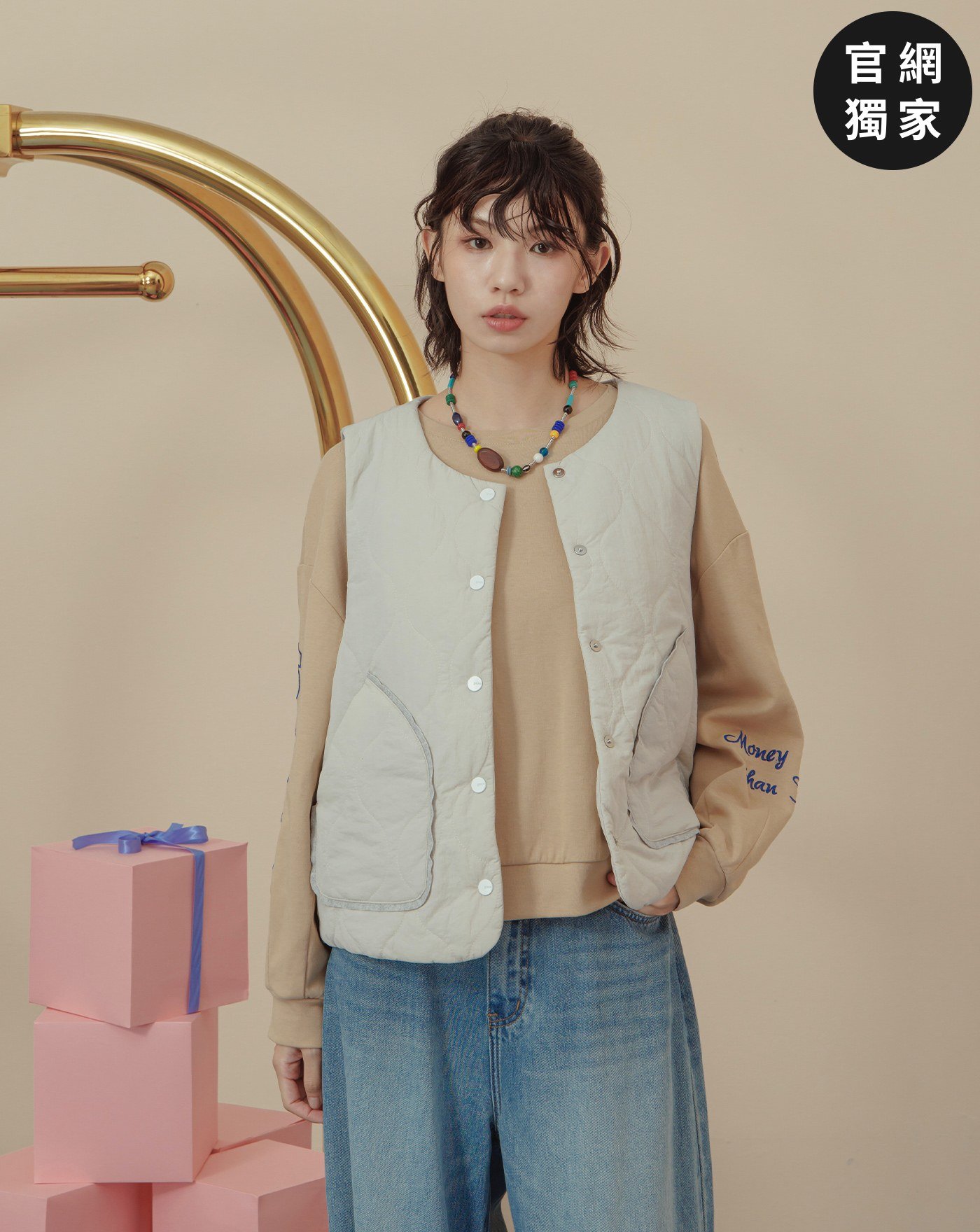 顯瘦遮臀異材質拼接開襟背心(兩色)