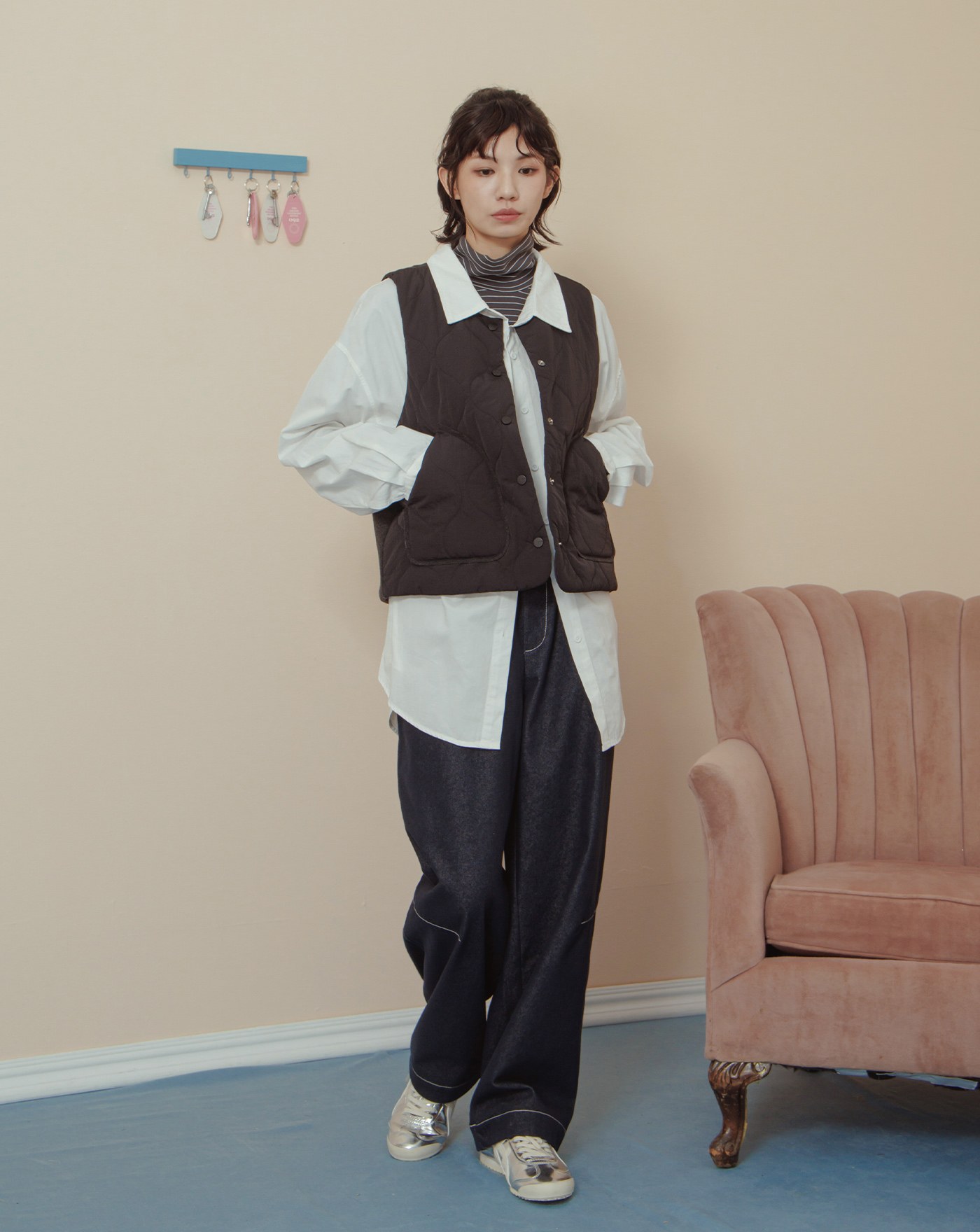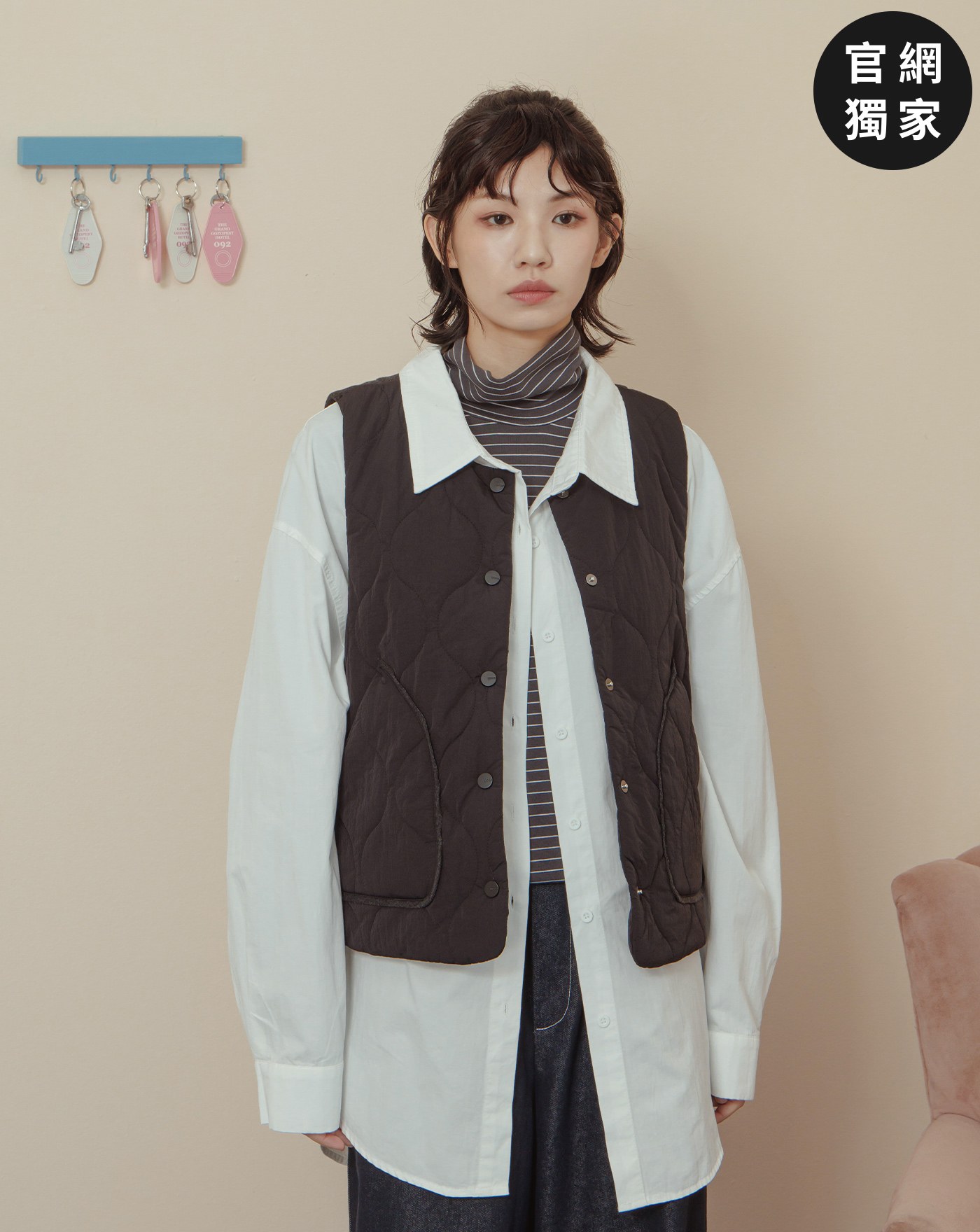 ➤仿羊絨坑條保暖拉鍊背心(兩色)