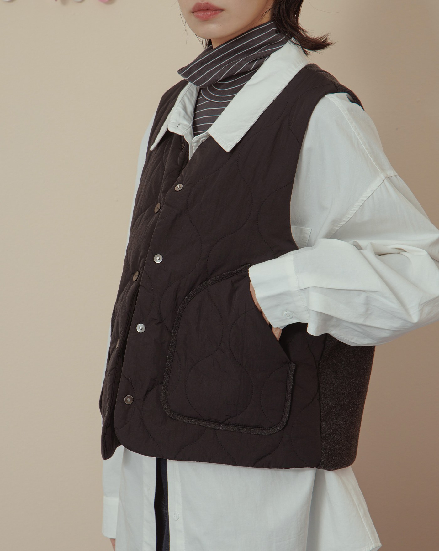 顯瘦遮臀異材質拼接開襟背心(兩色)