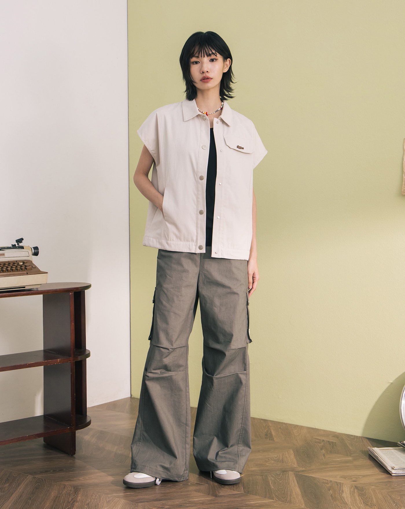 涼感天絲大翻領下擺可調節抽繩背心(兩色)