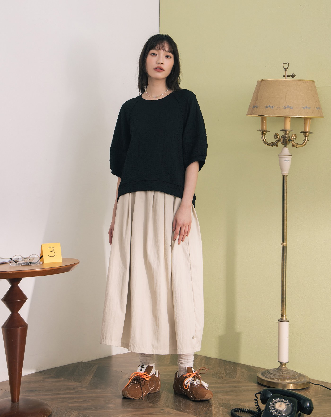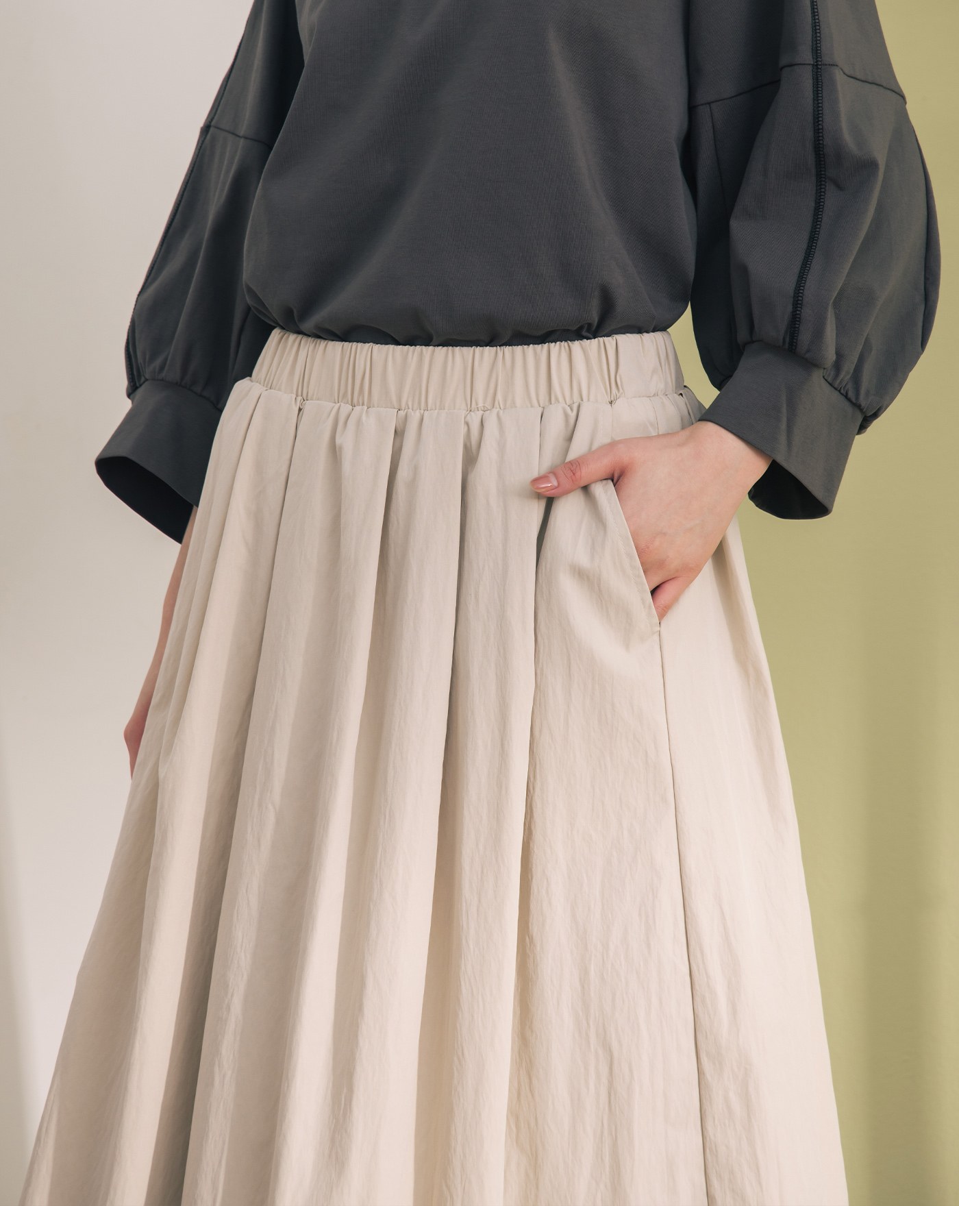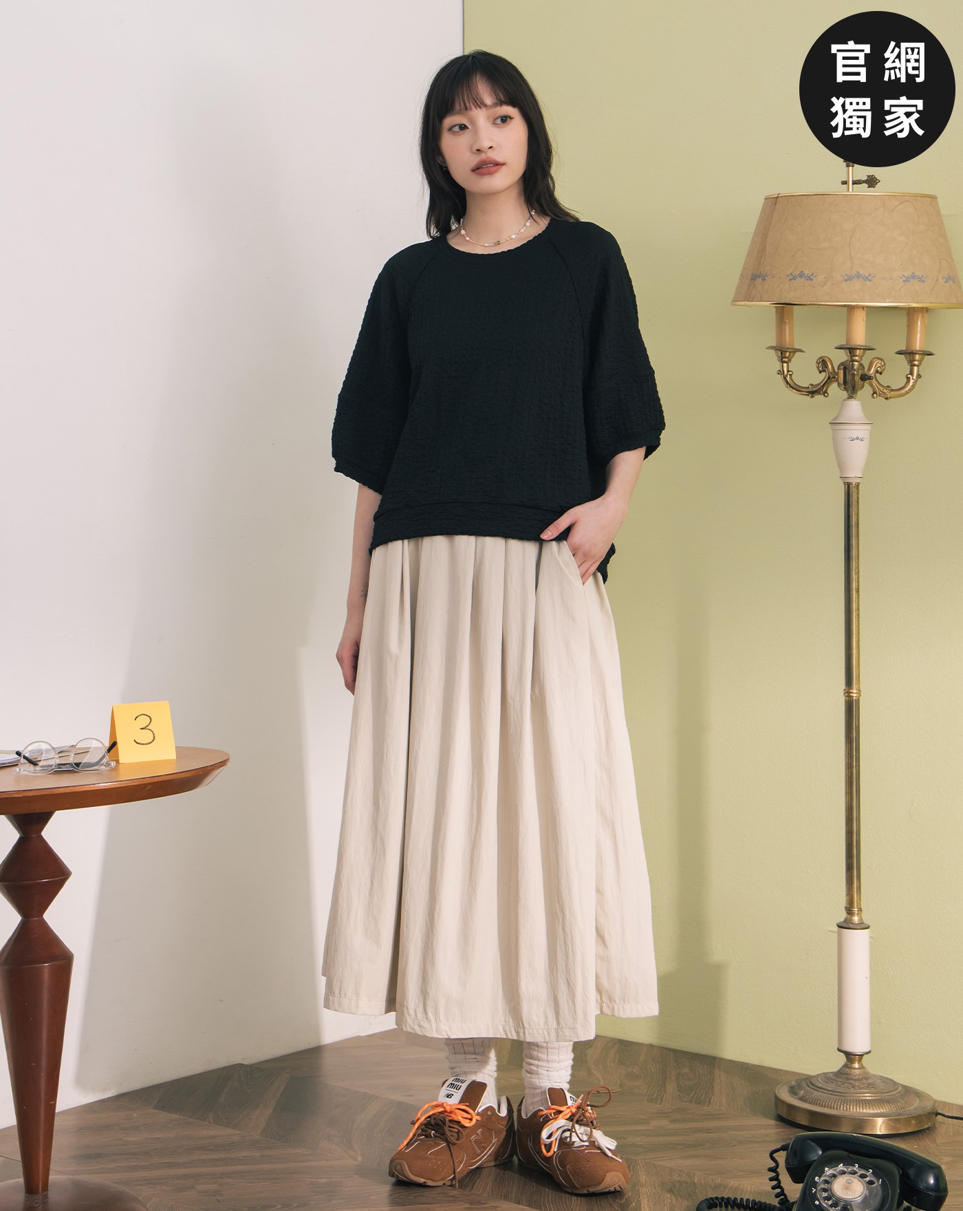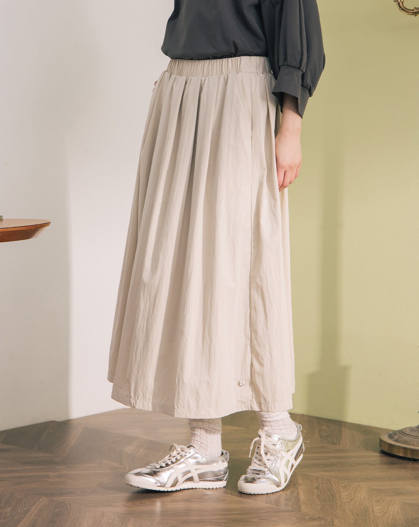➤抗皺釦洞造型口袋打褶傘裙(兩色)