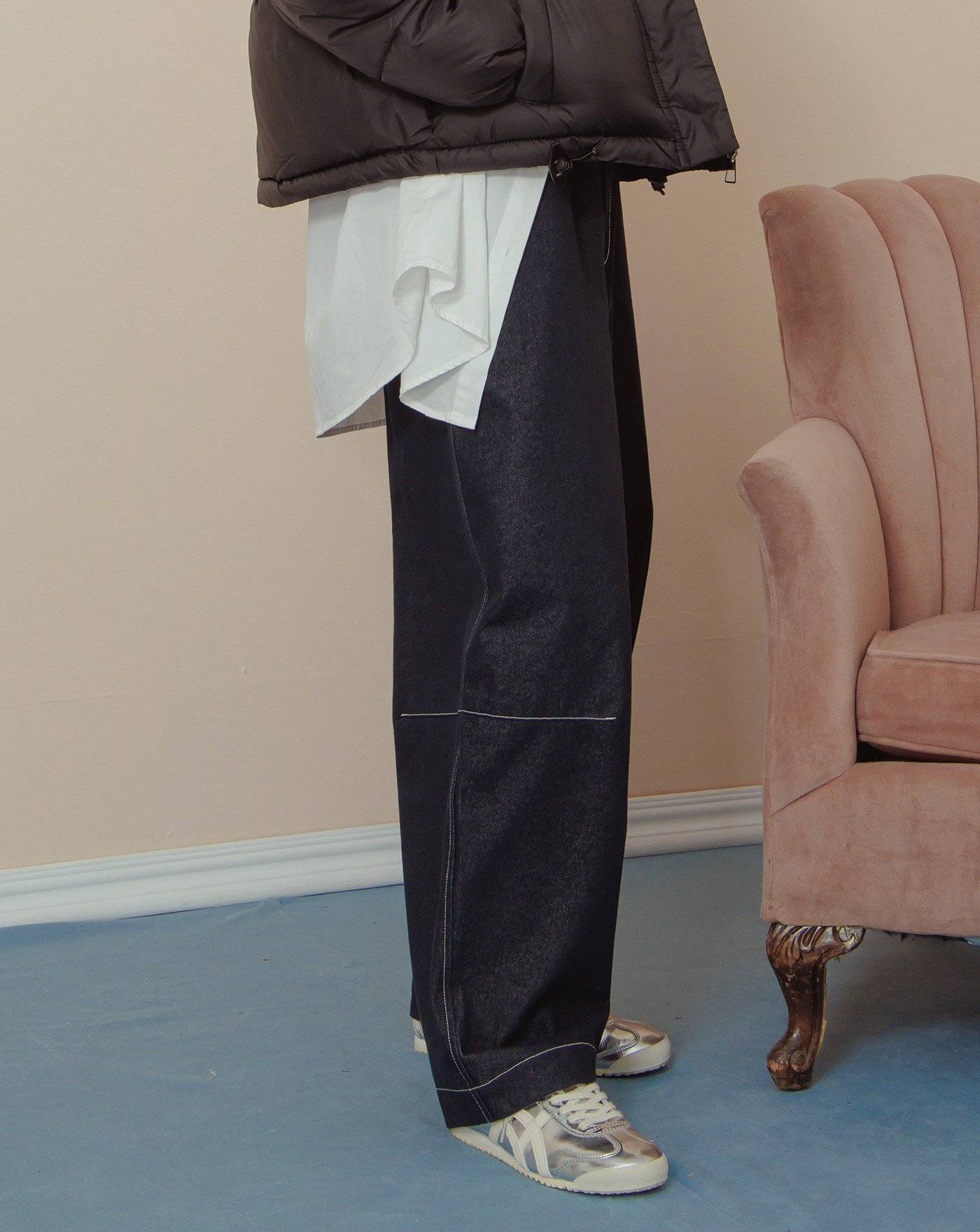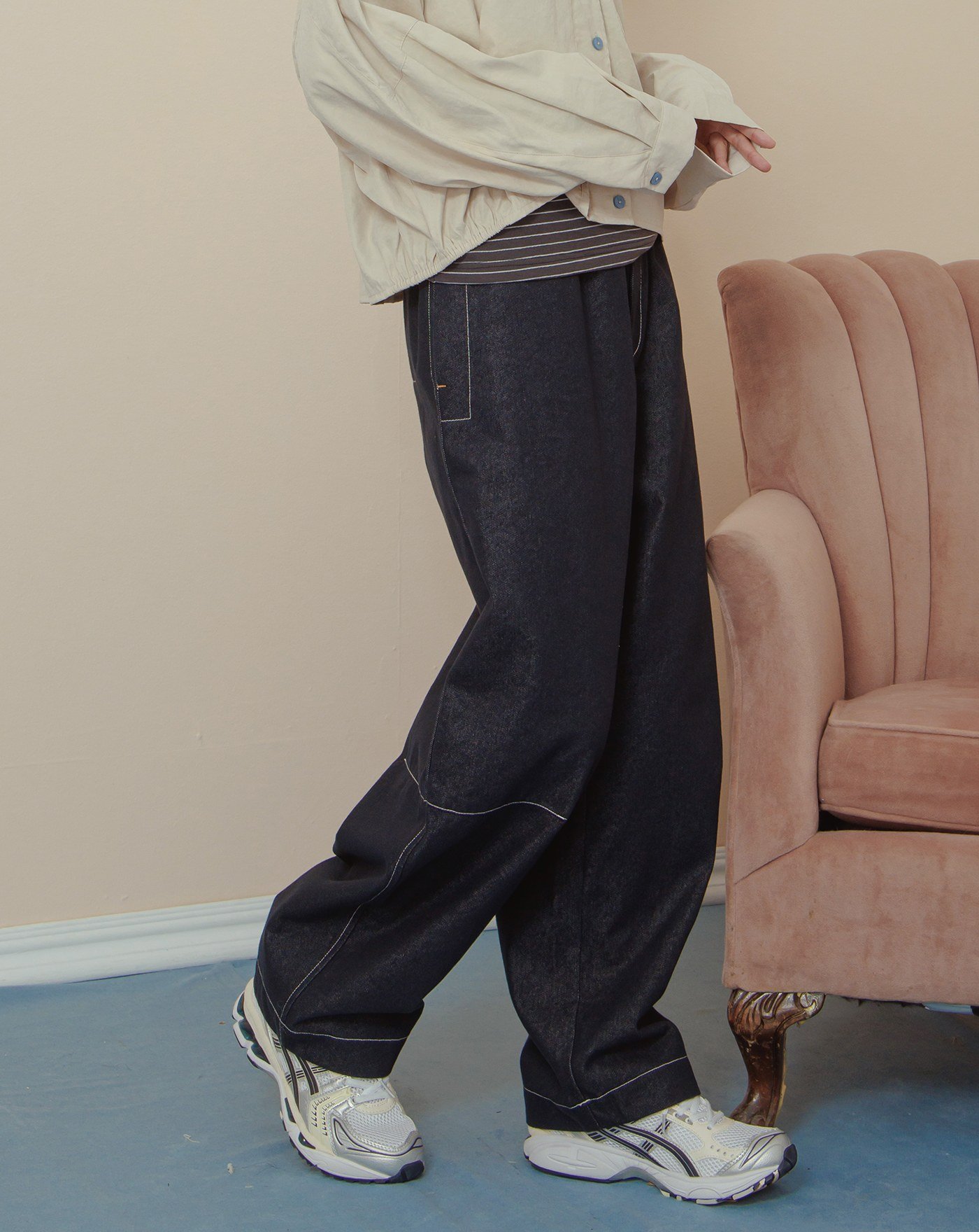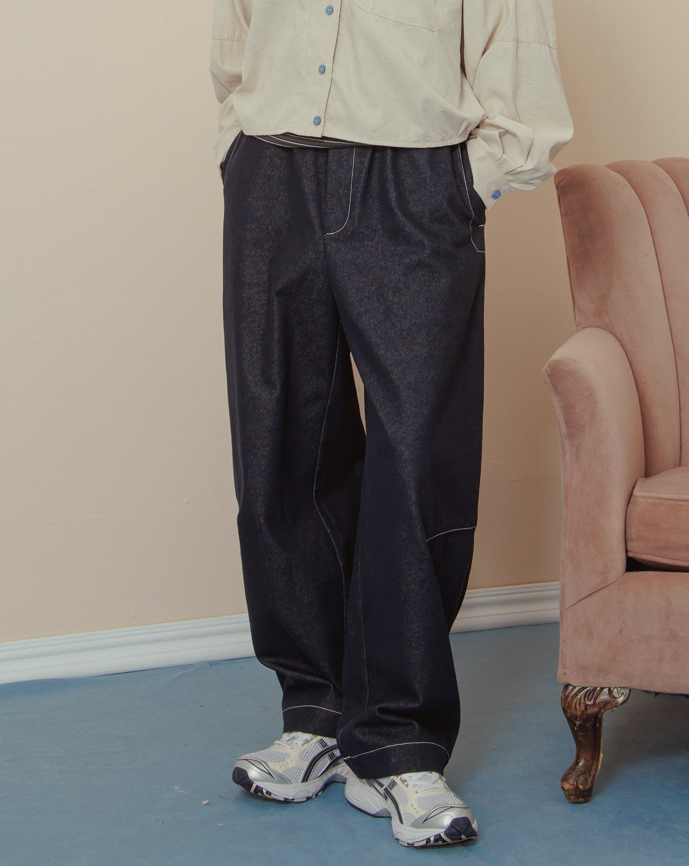 配色造型壓線仿牛仔男友褲(三色)查看原圖尺寸