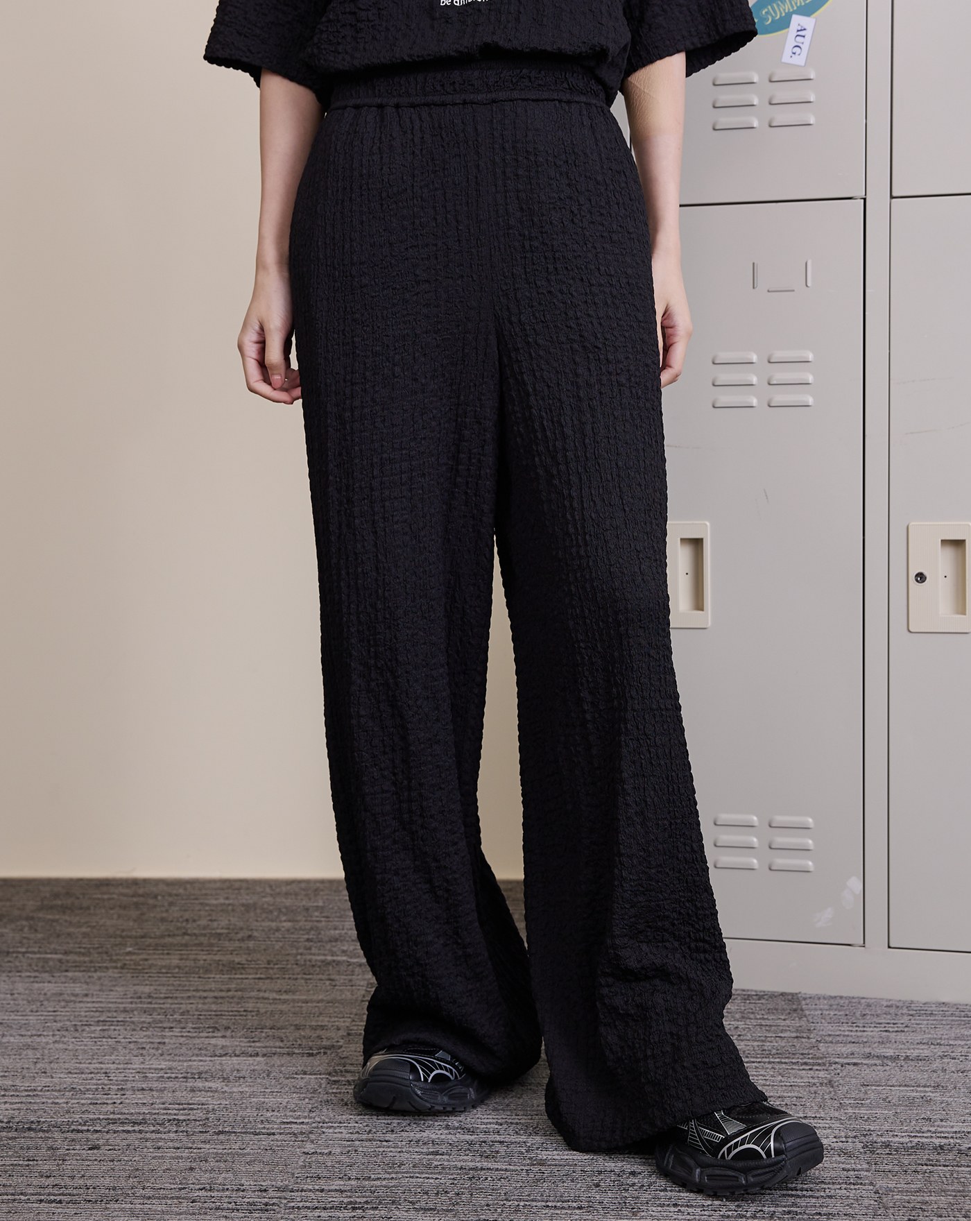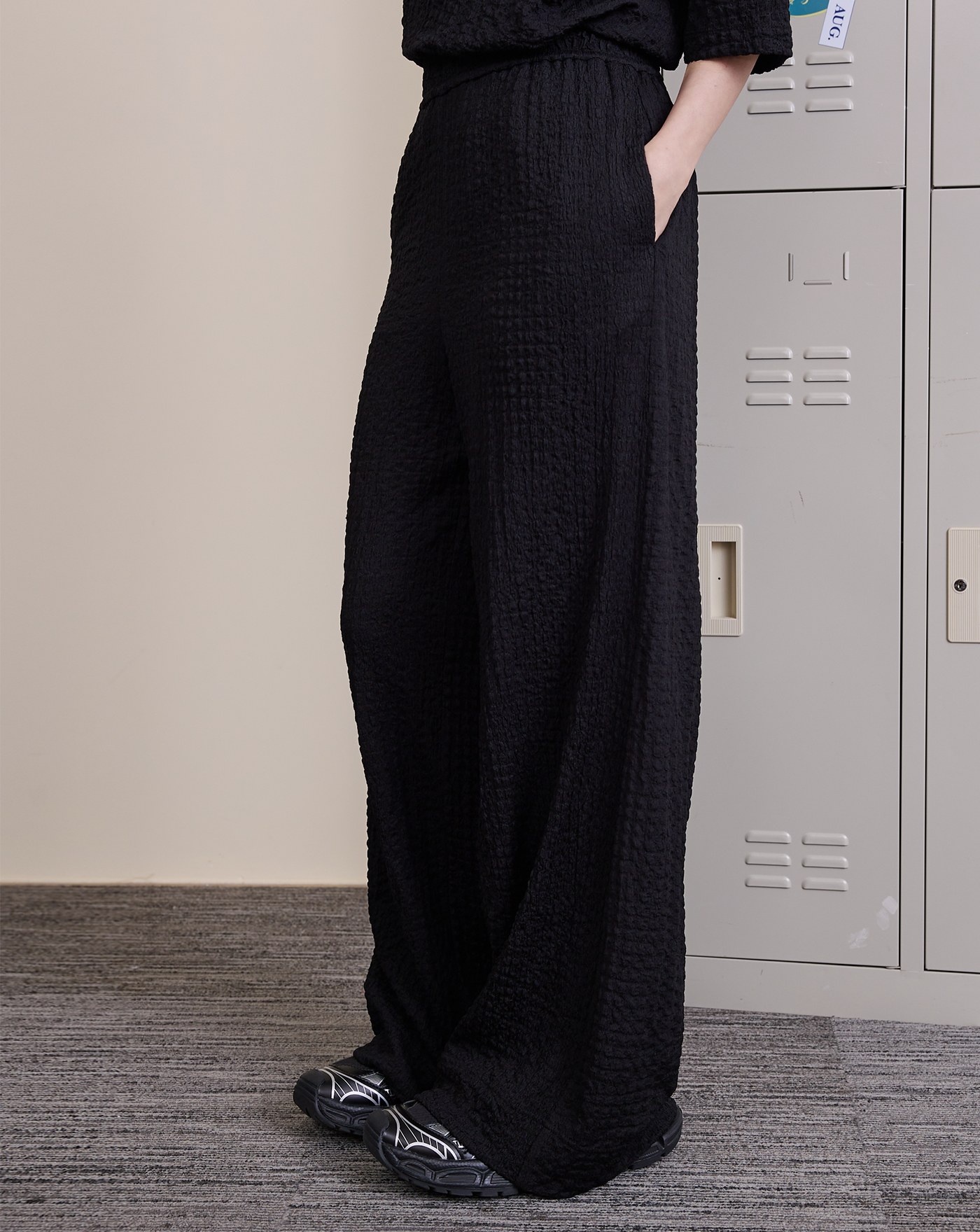 ➤涼感天絲褲腳抽繩口袋造型寬褲(兩色)