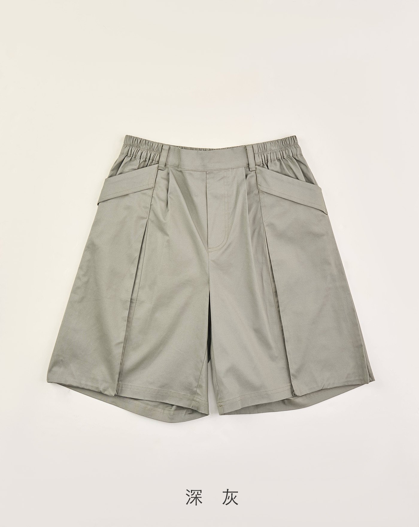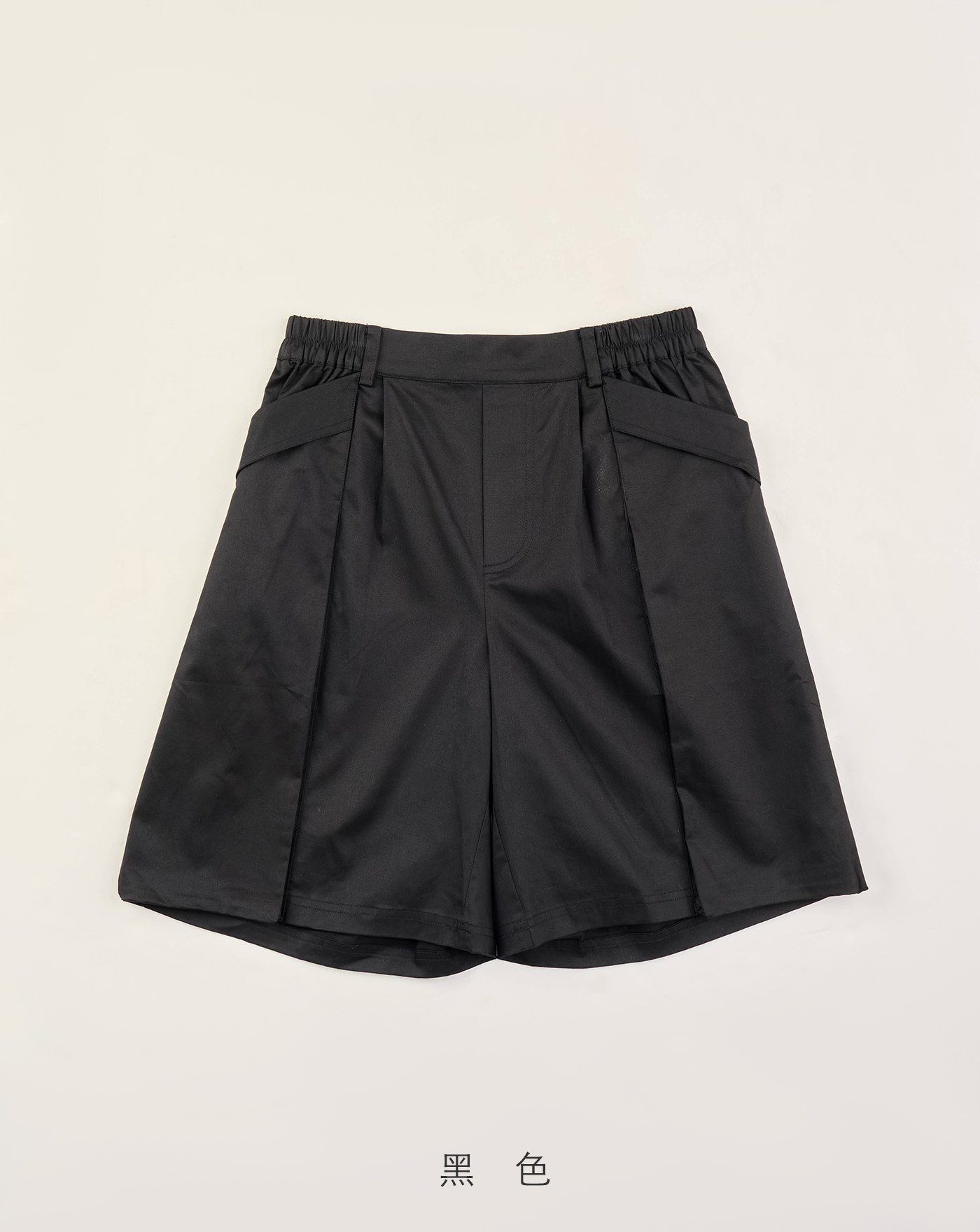 顯瘦異材質假兩層抽繩五分褲(兩色)