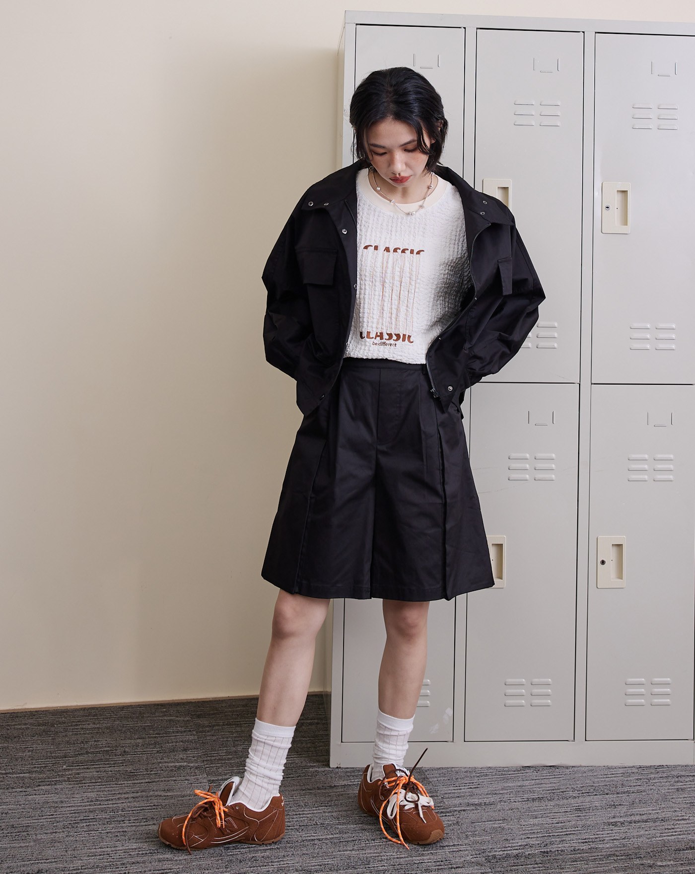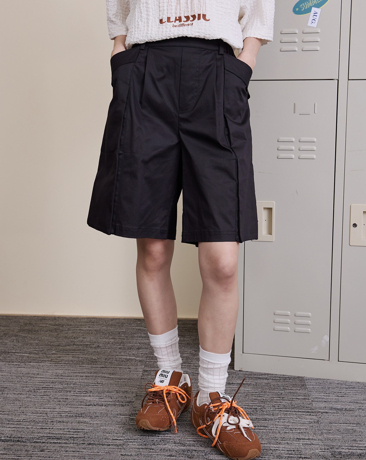 顯瘦異材質假兩層抽繩五分褲(兩色)