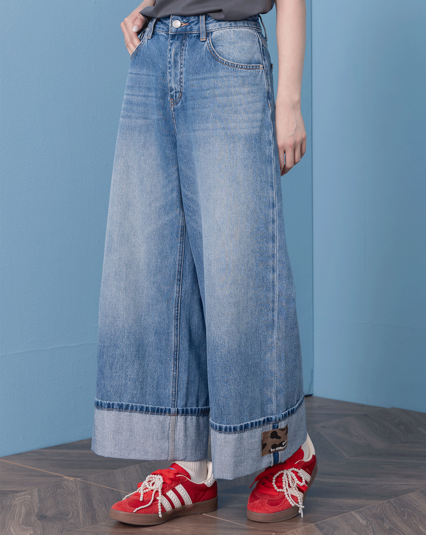 好比例涼感天絲抽繩牛仔寬褲(兩色)