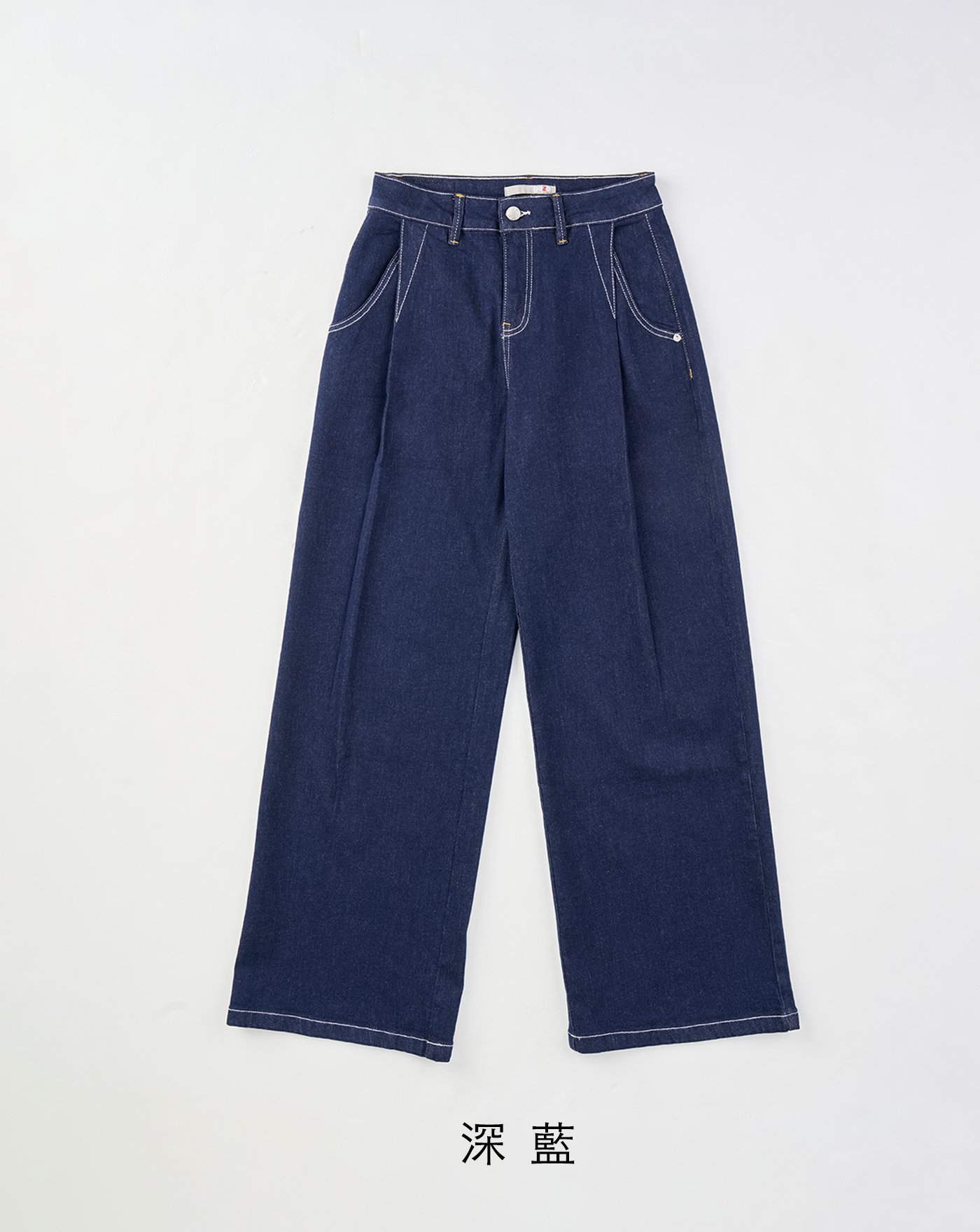 ◢shadow修容雙色拼接牛仔寬褲(兩色)