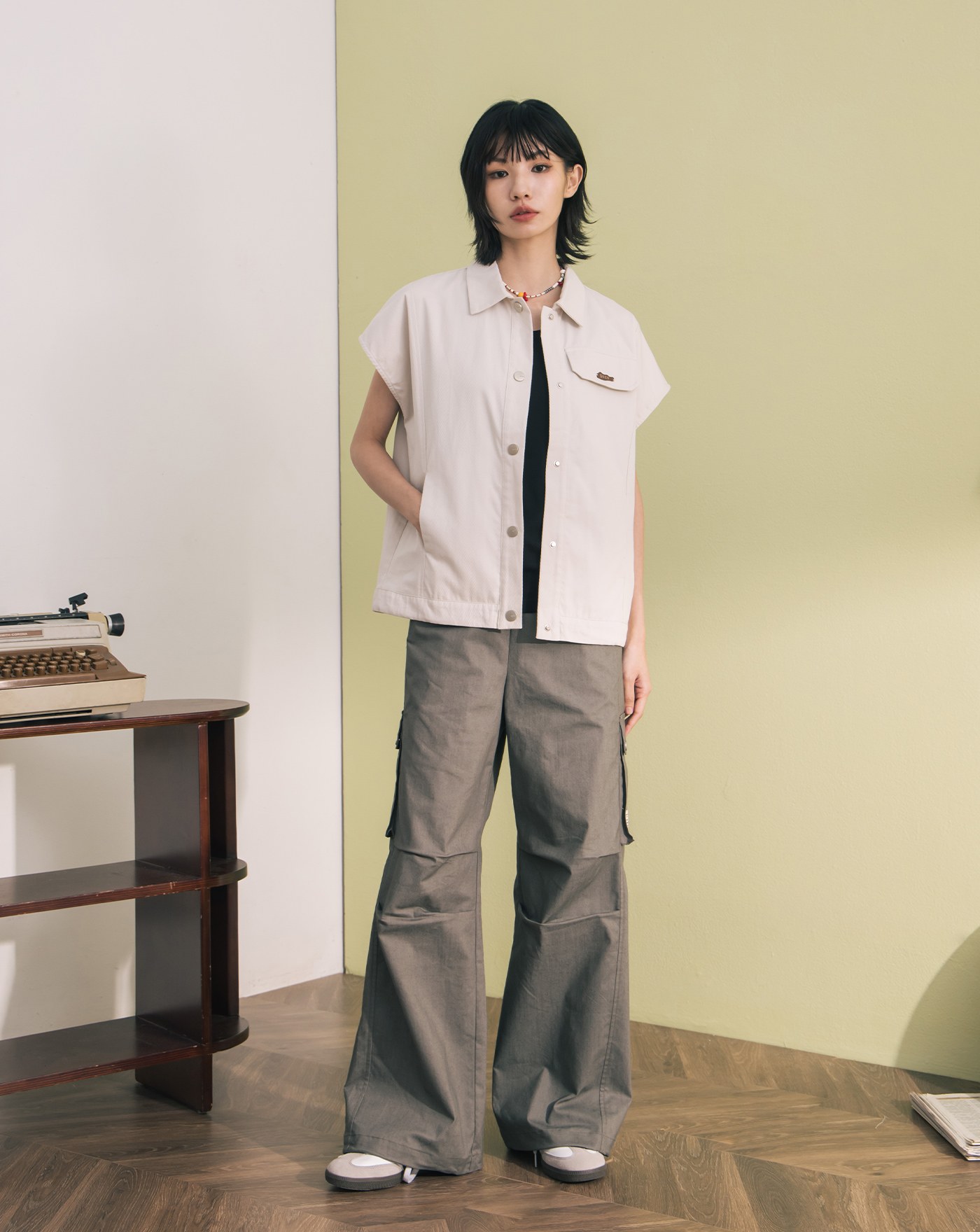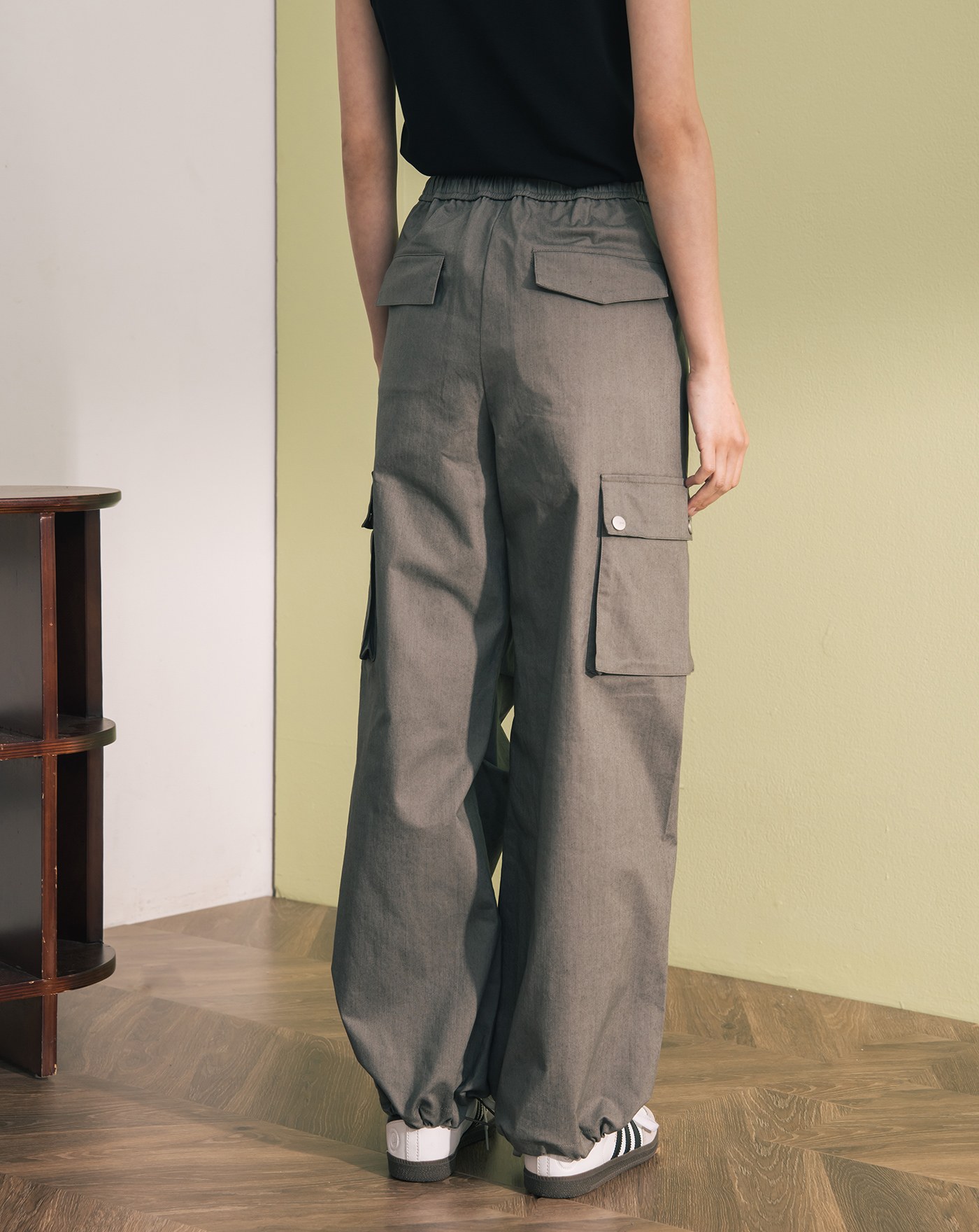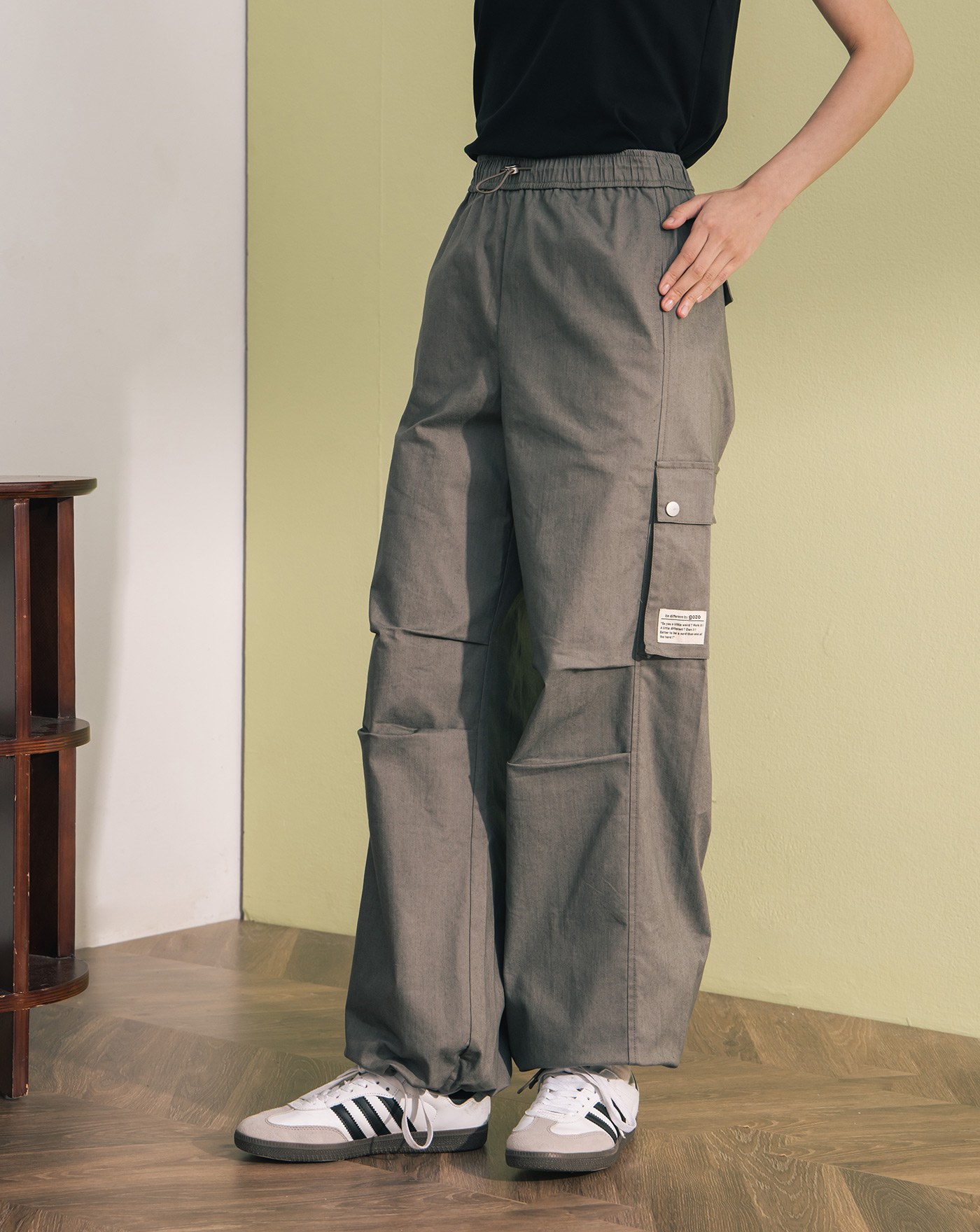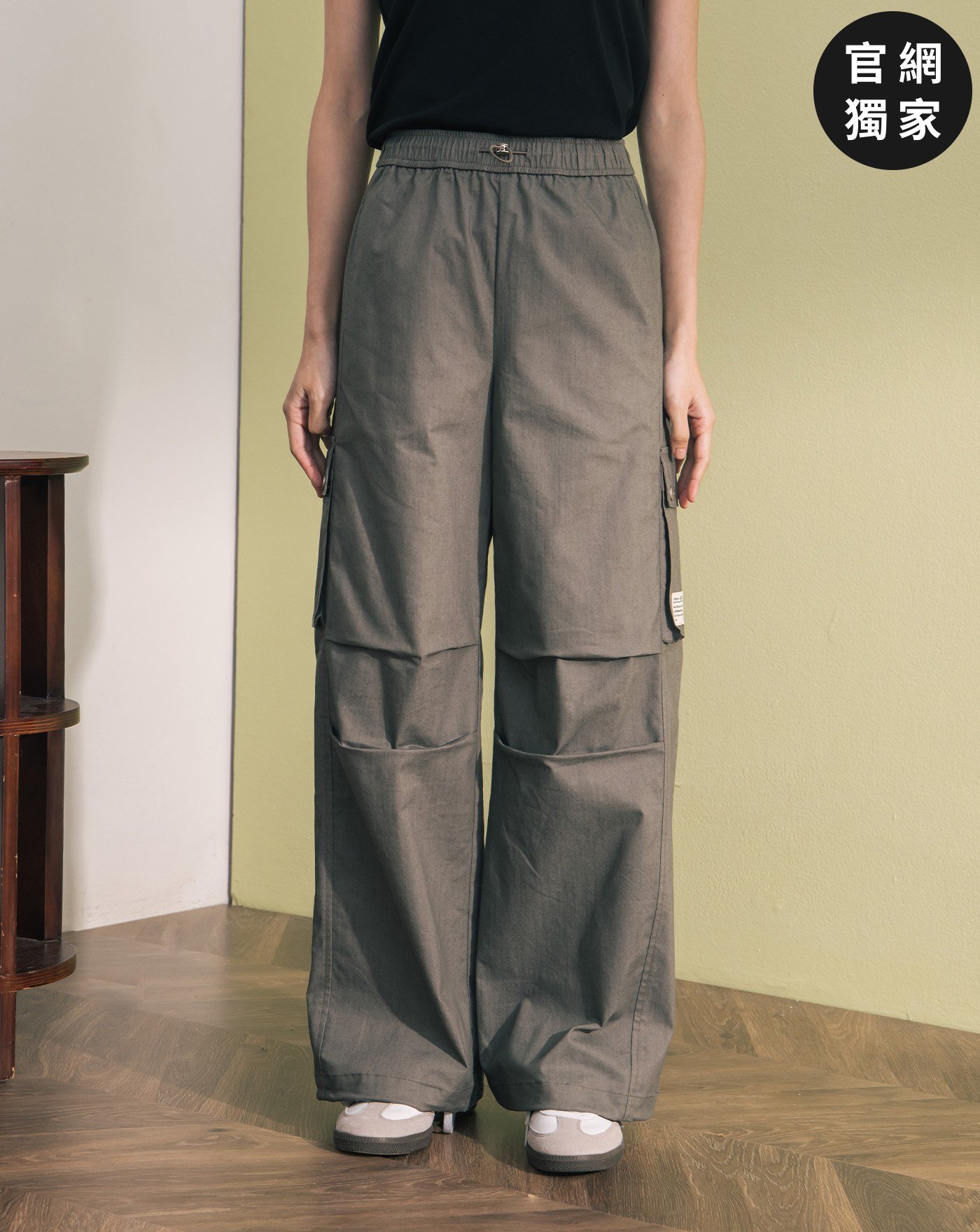 ➤涼感天絲褲腳抽繩口袋造型寬褲(兩色)