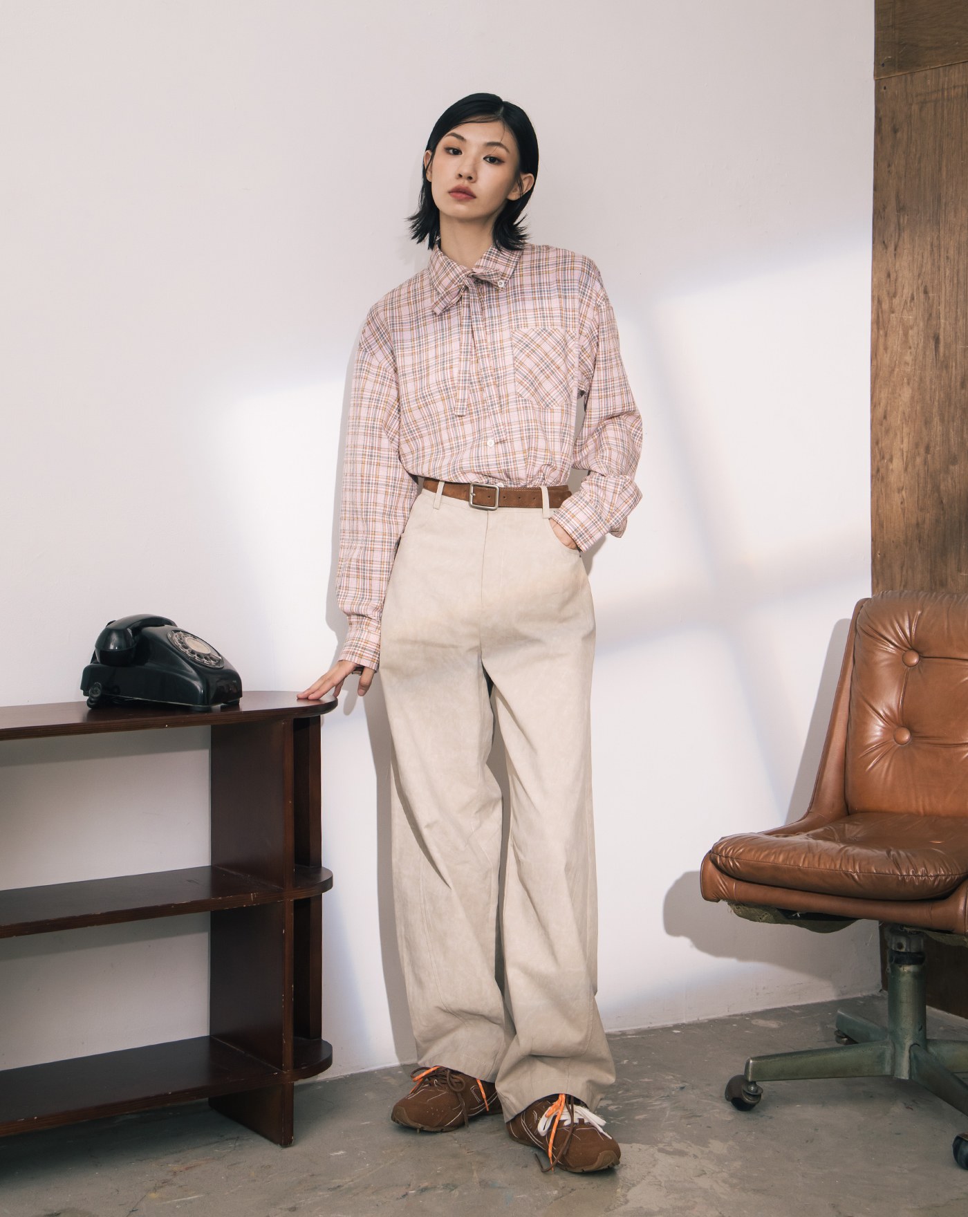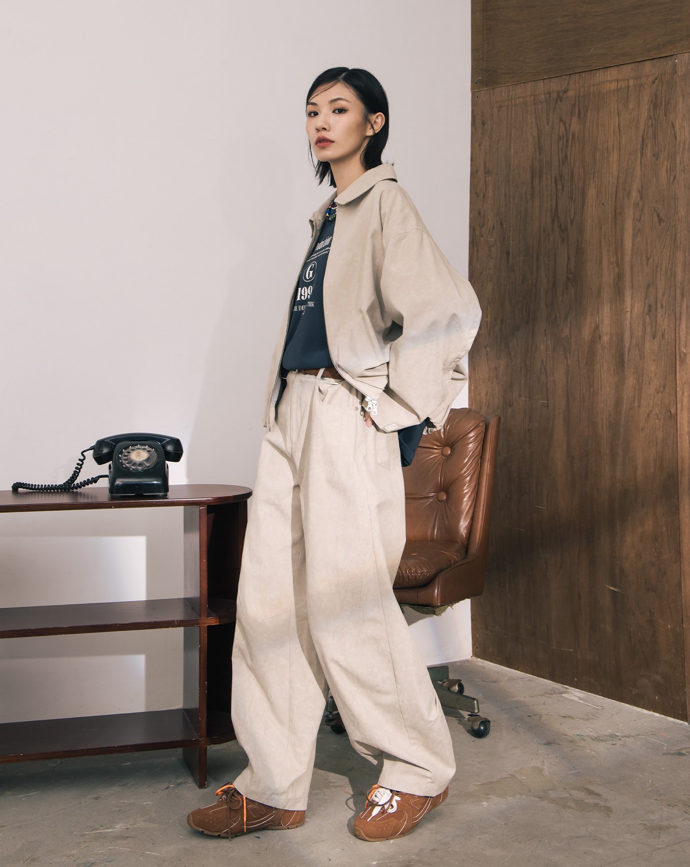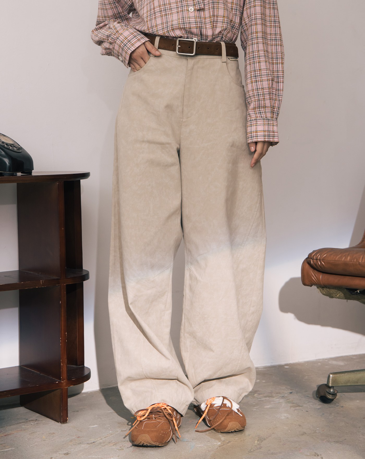 帥氣斑駁感寬鬆彎刀褲(兩色)