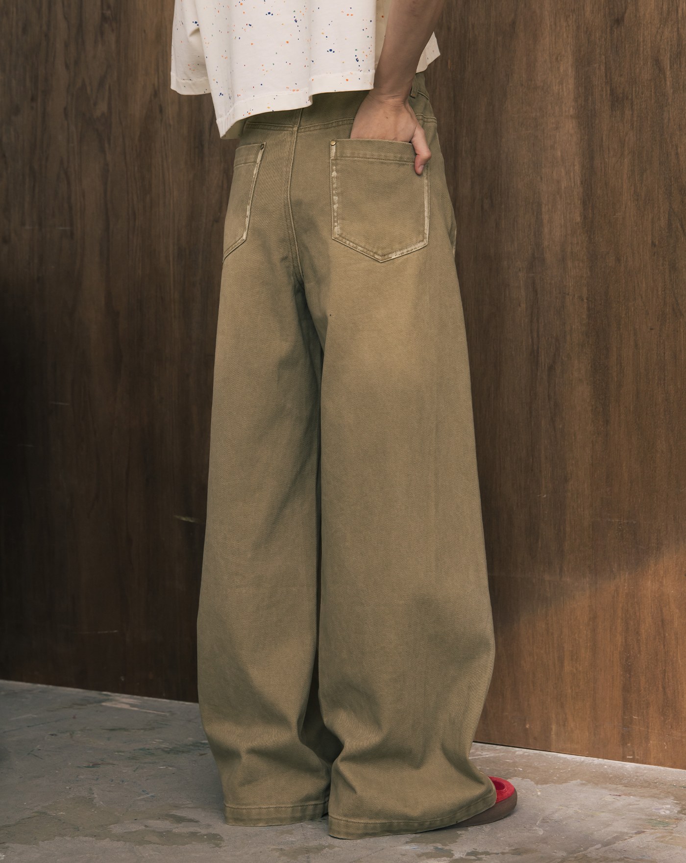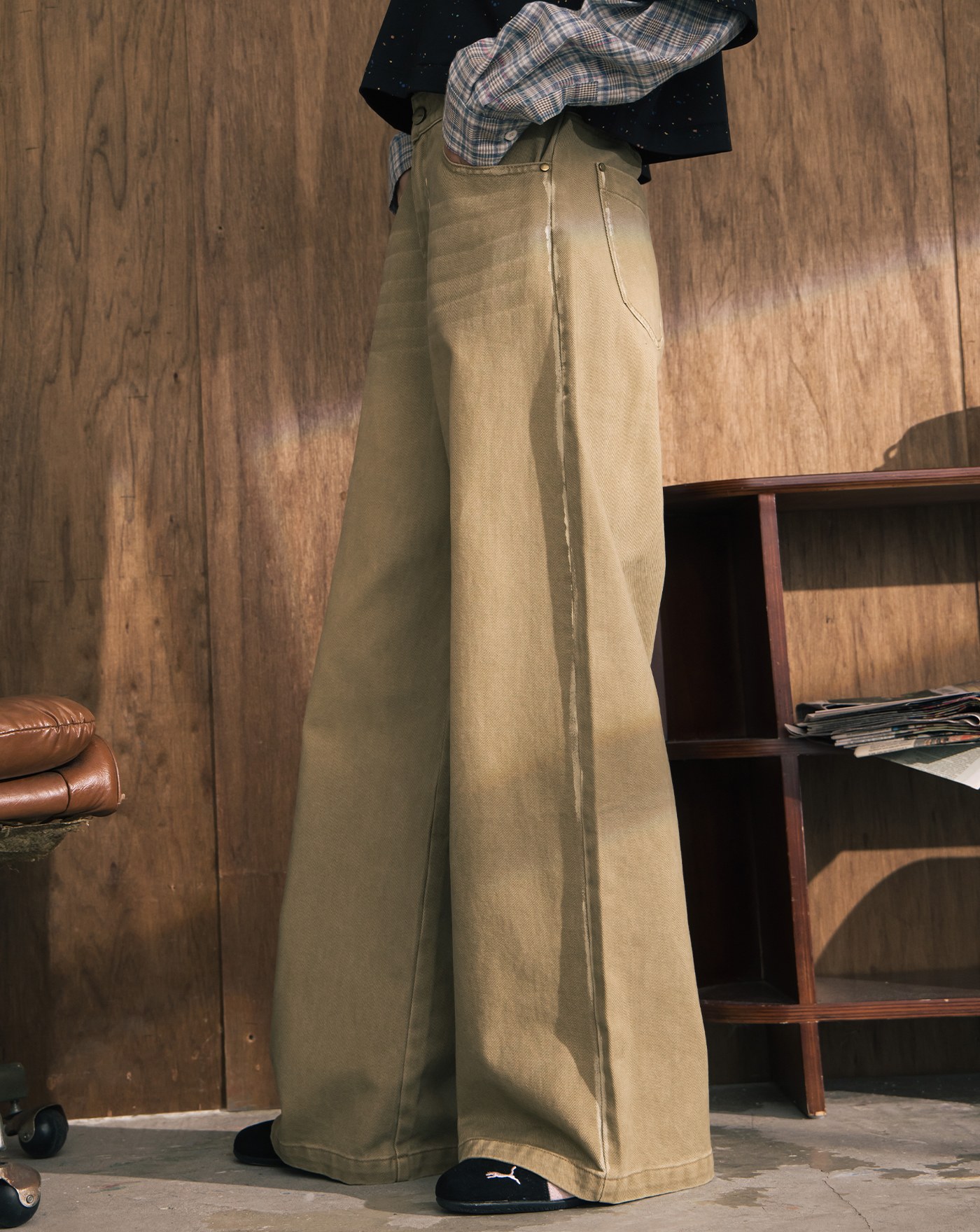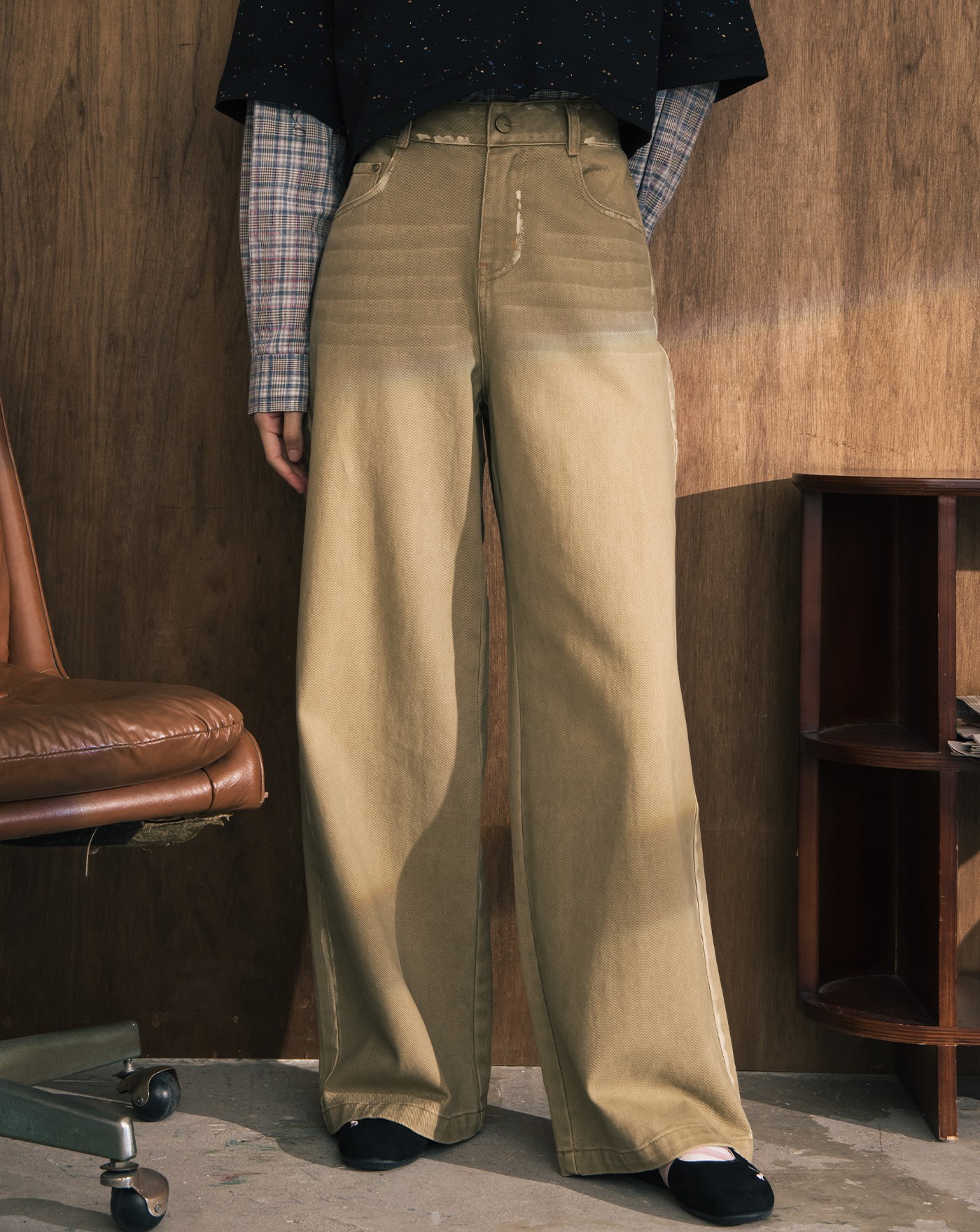 A|復古風線條刷色水洗牛仔寬褲(兩色)查看原圖尺寸