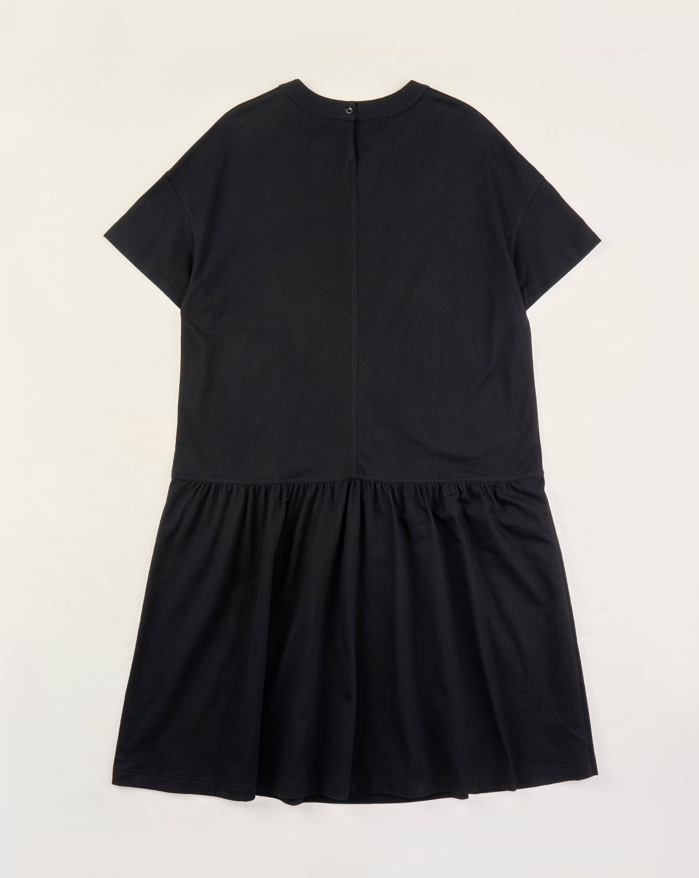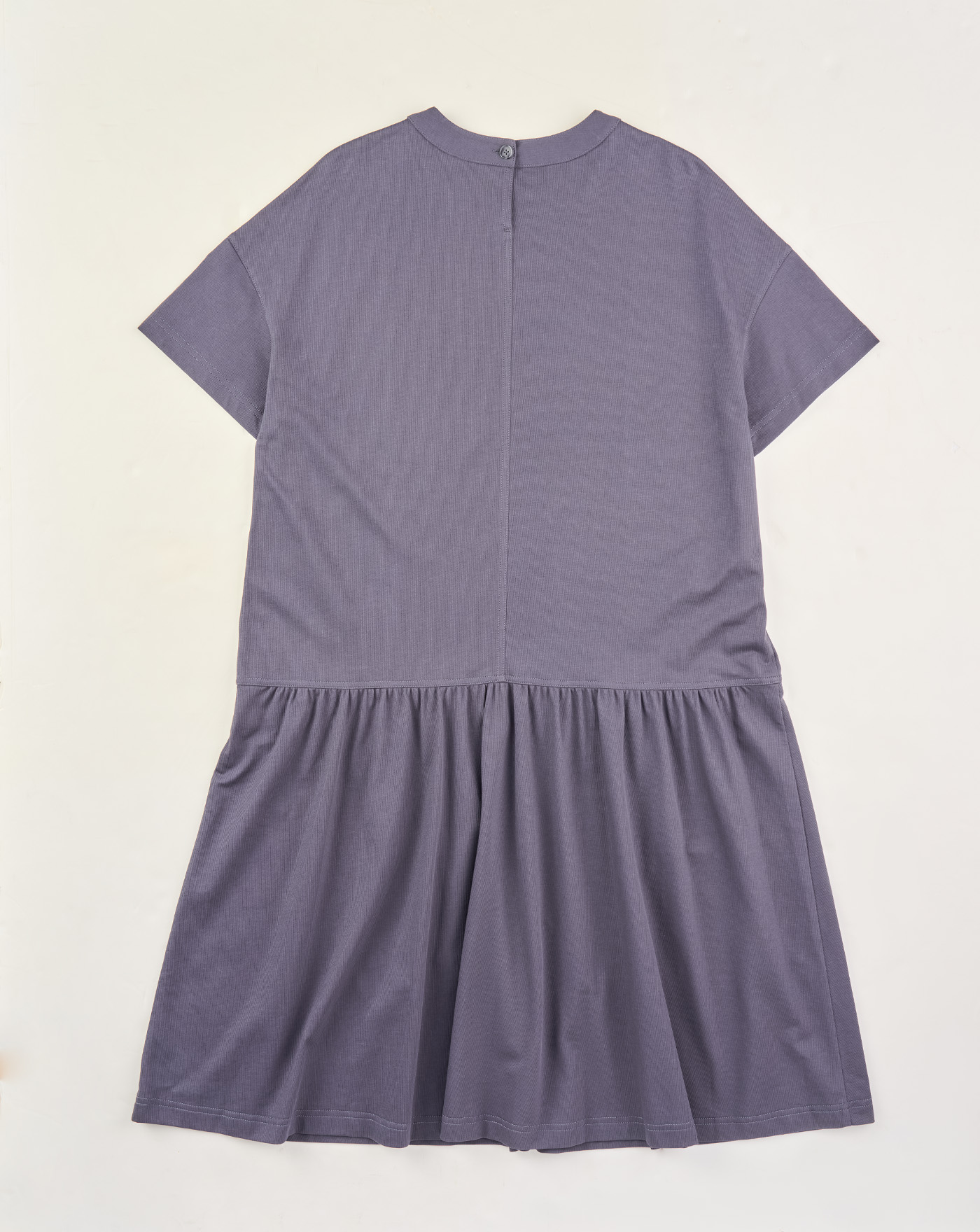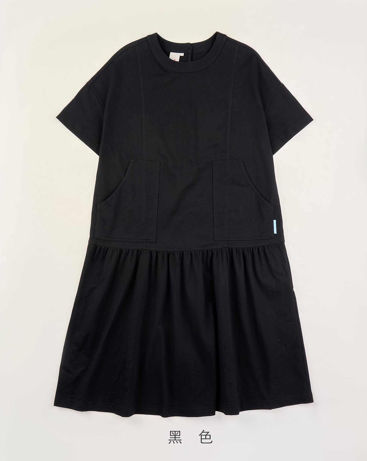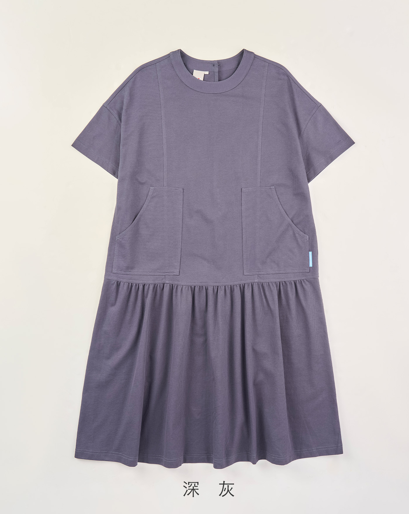 ➤顯瘦抓褶收腰圓領短袖洋裝(兩色)