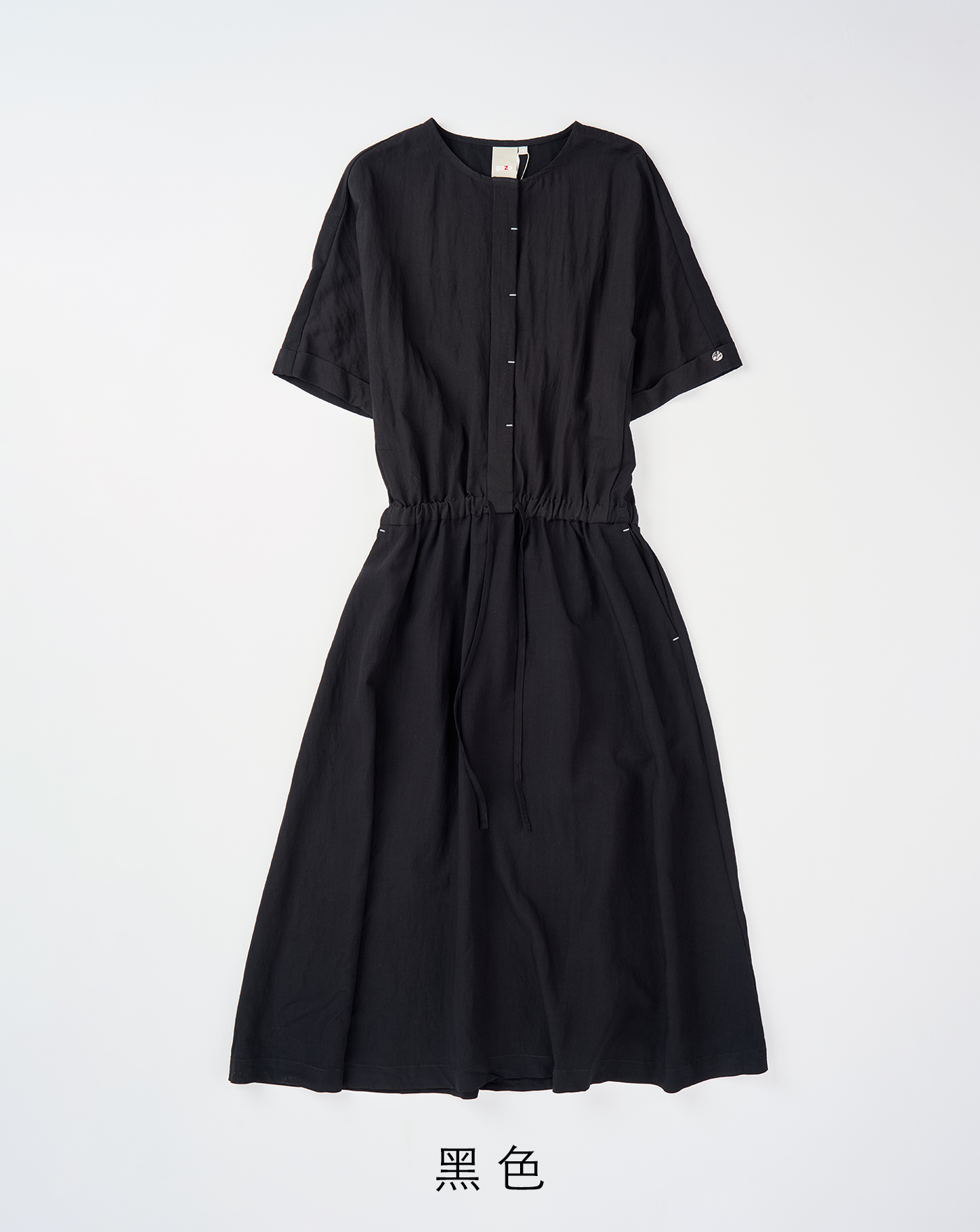 異材質拼接下擺抽繩短袖洋裝(兩色)