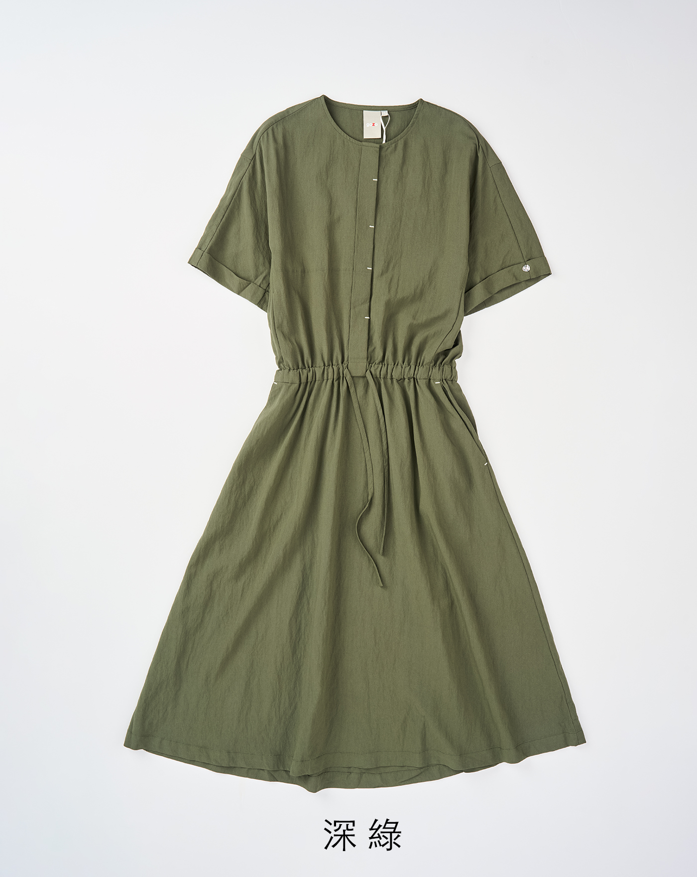 ➤配色壓線工裝風綁帶短袖洋裝(兩色)