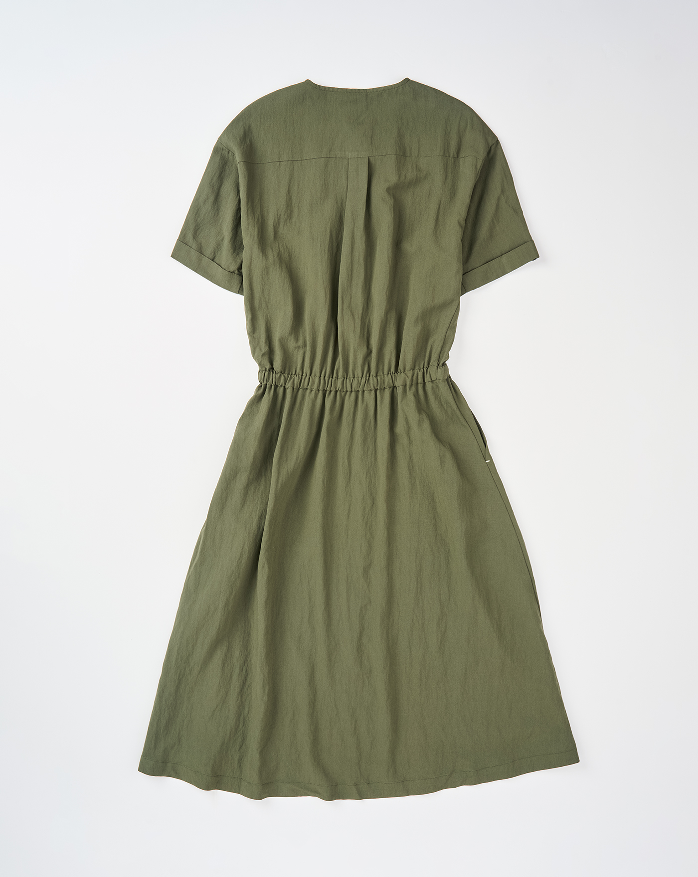 ➤顯瘦抓褶半開襟短袖洋裝(兩色)